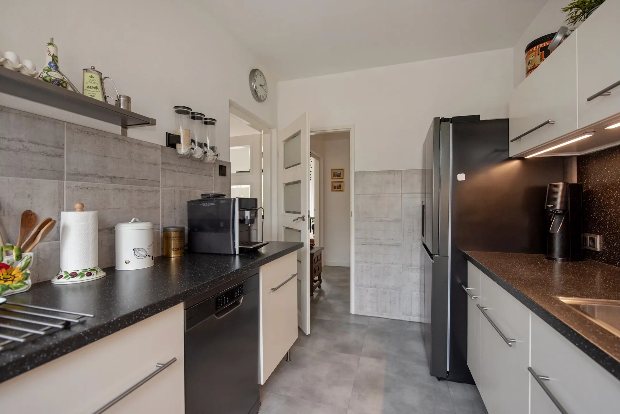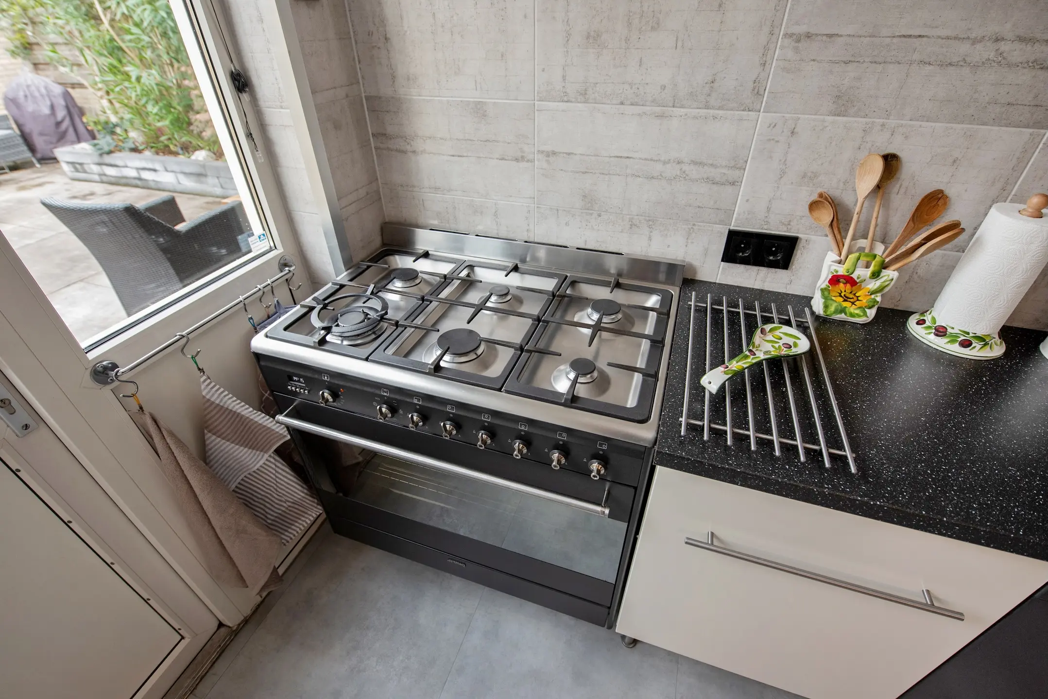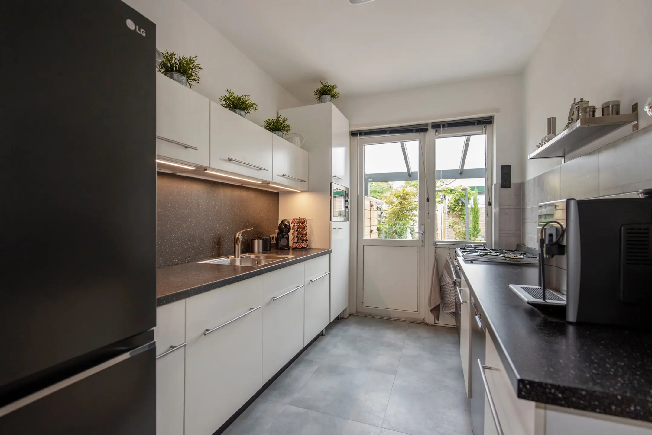 Nieuw gestuukte wanden (2025) in neutrale kleurstelling. Vanaf de woonkamer en de hal is de royale keuken toegankelijk, aan weerszijden veel werkruimte! Ook de keuken is neutraal uitgevoerd en heeft een luxueus fornuis (Smeg) met 6 branders en een extra brede hete lucht oven. Ingebouwde combi magnetron, warmwater middels 15 liter elektrische boiler. De vaatwasser blijft.