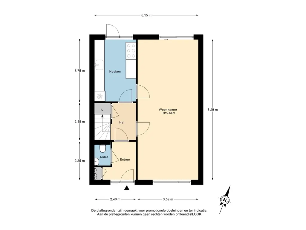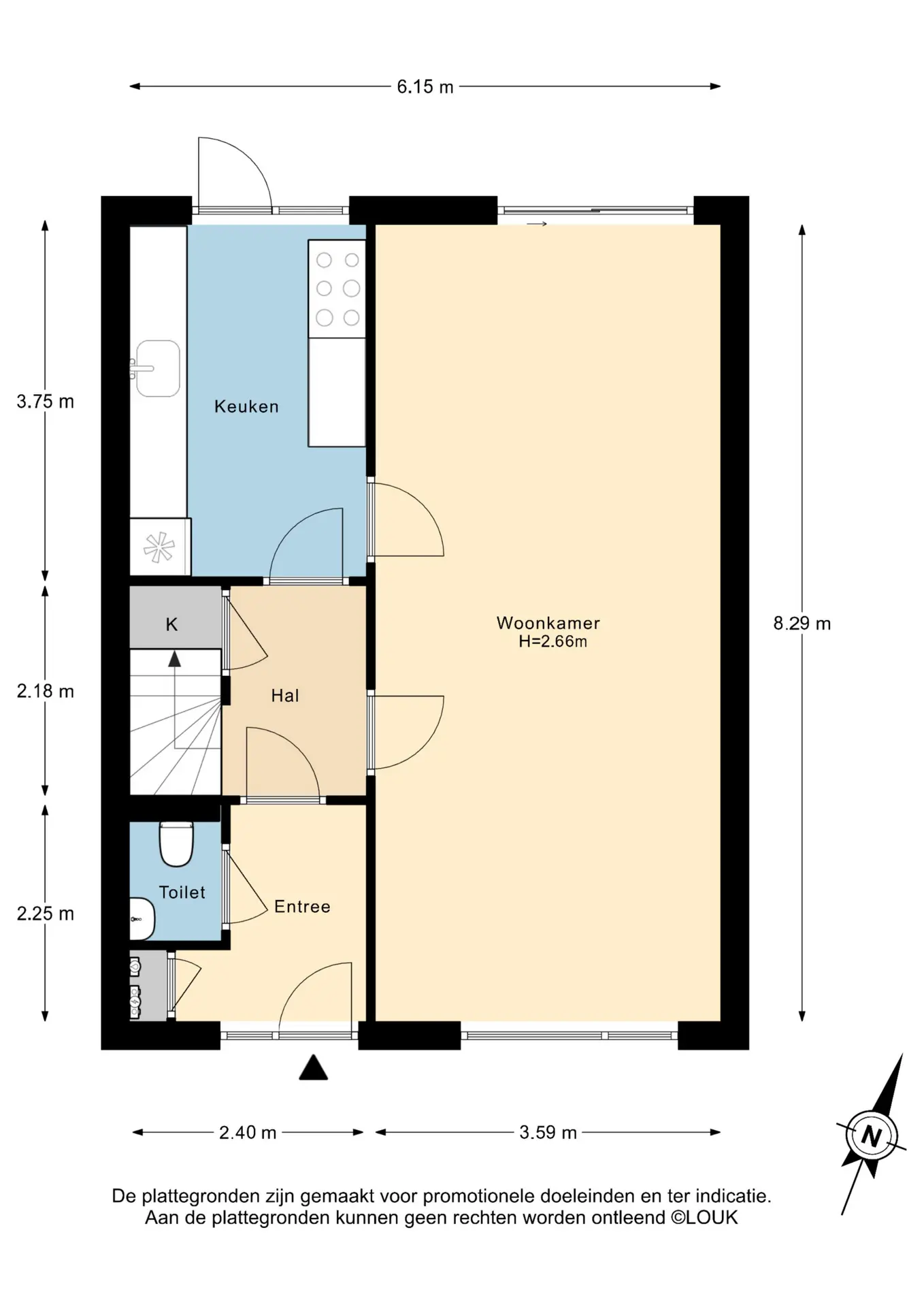Bovenstaande informatie is door ons met de hoogst nodige zorgvuldigheid samengesteld. Door ons wordt echter geen enkele aansprakelijkheid aanvaard voor enige onvolledigheid, onjuistheid of anderszins, dan wel de gevolgen daarvan. Alle opgegeven maten en oppervlakten zijn indicatief. De woning is gemeten met gebruikmaking van de Meetinstructie, die is gebaseerd op de normen zoals vastgelegd in NEN 2580. De Meetinstructie is bedoeld om een meer eenduidige manier van meten toe te passen voor het geven van een indicatie van gebruiksoppervlakte. De Meetinstructie sluit verschillen in meetuitkomsten niet volledig uit, door bijvoorbeeld interpretatieverschillen, afrondingen of beperkingen bij het uitvoeren van de meting. Hoewel wij de woning zorgvuldig hebben opgemeten, wordt noch door ons kantoor, noch door de verkoper enige aansprakelijkheid aanvaard voor afwijkingen in de opgegeven maten. Koper wordt in de gelegenheid gesteld om de opgegeven maten te (laten) controleren.