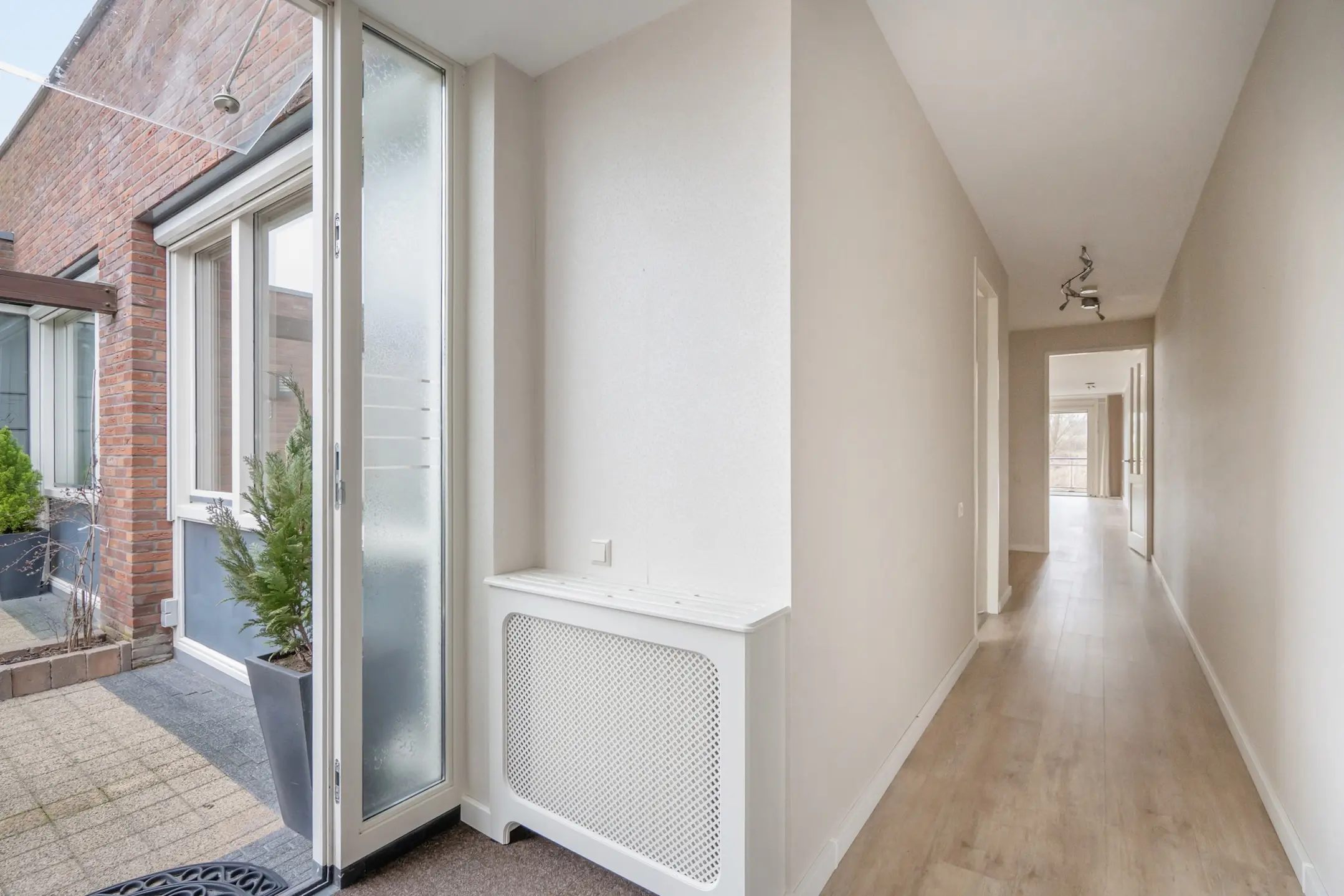 Begane grond: voortuin met toegang tot de woning alsmede toegang tot de (inpandige)berging, ruim woningentree met glazen overkapping, garderoberuimte, binnendeur met toegang tot de berging aan de voorzijde, aansluiting wasmachine en veel kastruimte. Diepe gang met technische ruimte (alwaar de HR combi ketel 2019 en een zonneboiler) alsmede een lichtkleurig betegeld toilet voorzien van een wandcloset en een fonteintje. Deur voorzien van glazen panelen naar de prachtige en zonnig gelegen woon-/eetkamer met twee dakramen (waarvan een te openen), vaste kasten met schuifdeuren en een open keuken in een hoekopstelling.
