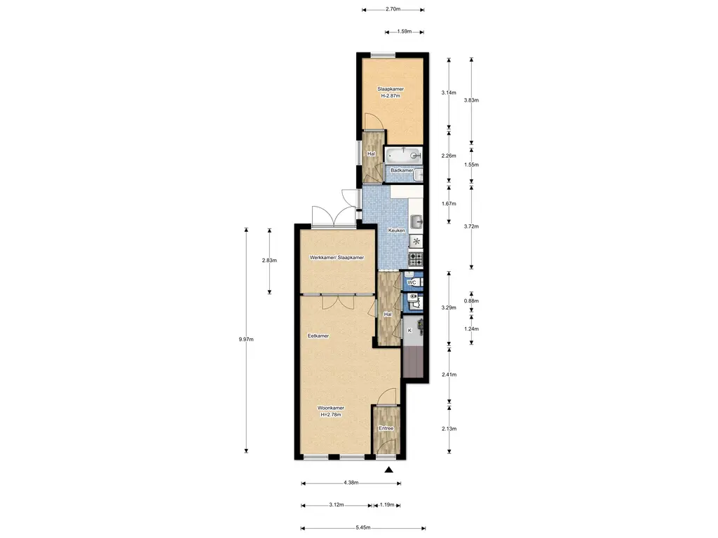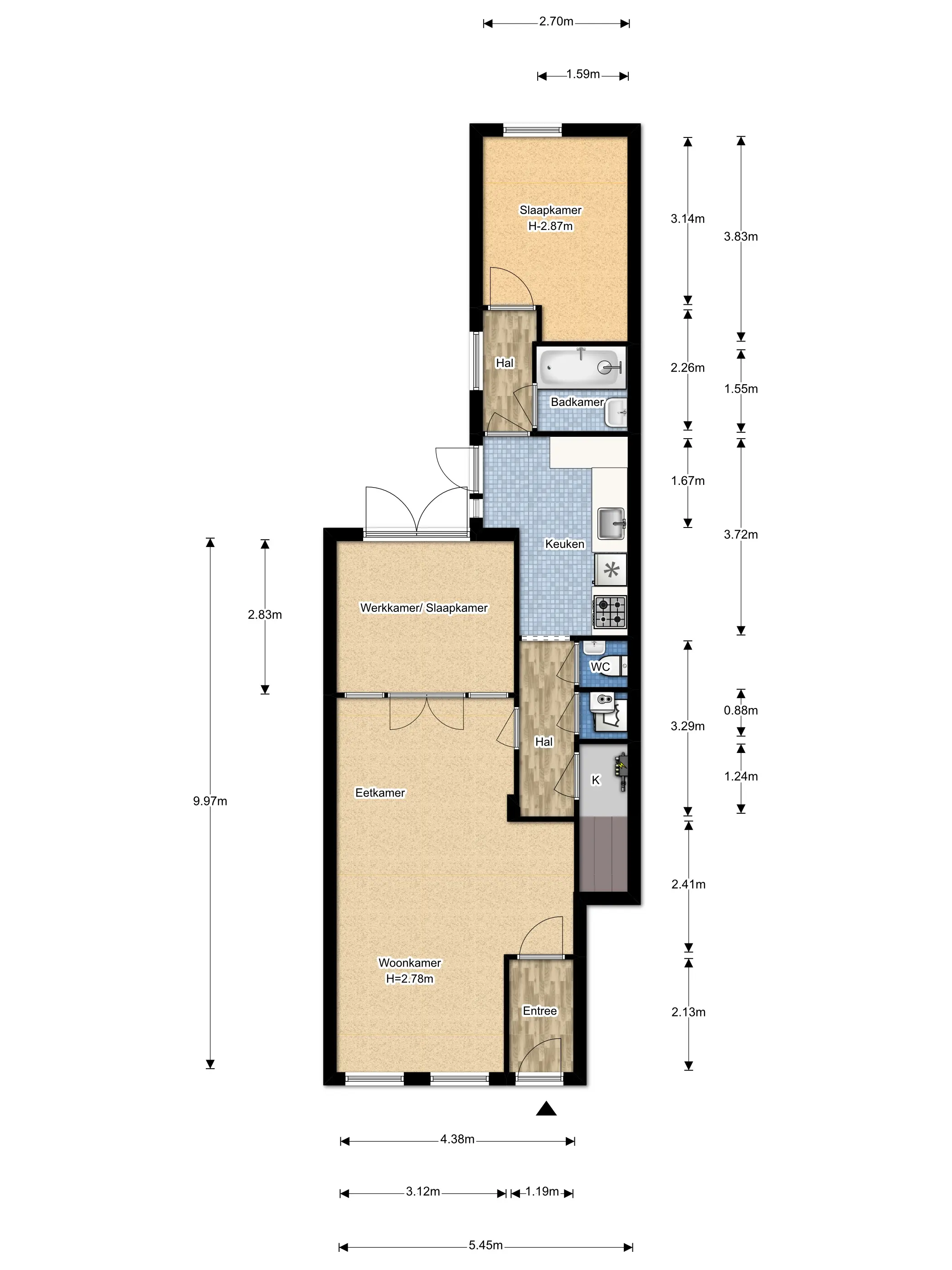 Bovenstaande informatie is door ons met de hoogst nodige zorgvuldigheid samengesteld. Door ons wordt echter geen enkele aansprakelijkheid aanvaard voor enige onvolledigheid, onjuistheid of anderszins, dan wel de gevolgen daarvan. Alle opgegeven maten en oppervlakten zijn indicatief. De woning is gemeten met gebruikmaking van de Meetinstructie, die is gebaseerd op de normen zoals vastgelegd in NEN 2580. De Meetinstructie is bedoeld om een meer eenduidige manier van meten toe te passen voor het geven van een indicatie van gebruiksoppervlakte. De Meetinstructie sluit verschillen in meetuitkomsten niet volledig uit, door bijvoorbeeld interpretatieverschillen, afrondingen of beperkingen bij het uitvoeren van de meting. Hoewel wij de woning zorgvuldig hebben opgemeten, wordt noch door ons kantoor, noch door de verkoper enige aansprakelijkheid aanvaard voor afwijkingen in de opgegeven maten. Koper wordt in de gelegenheid gesteld om de opgegeven maten te (laten) controleren.