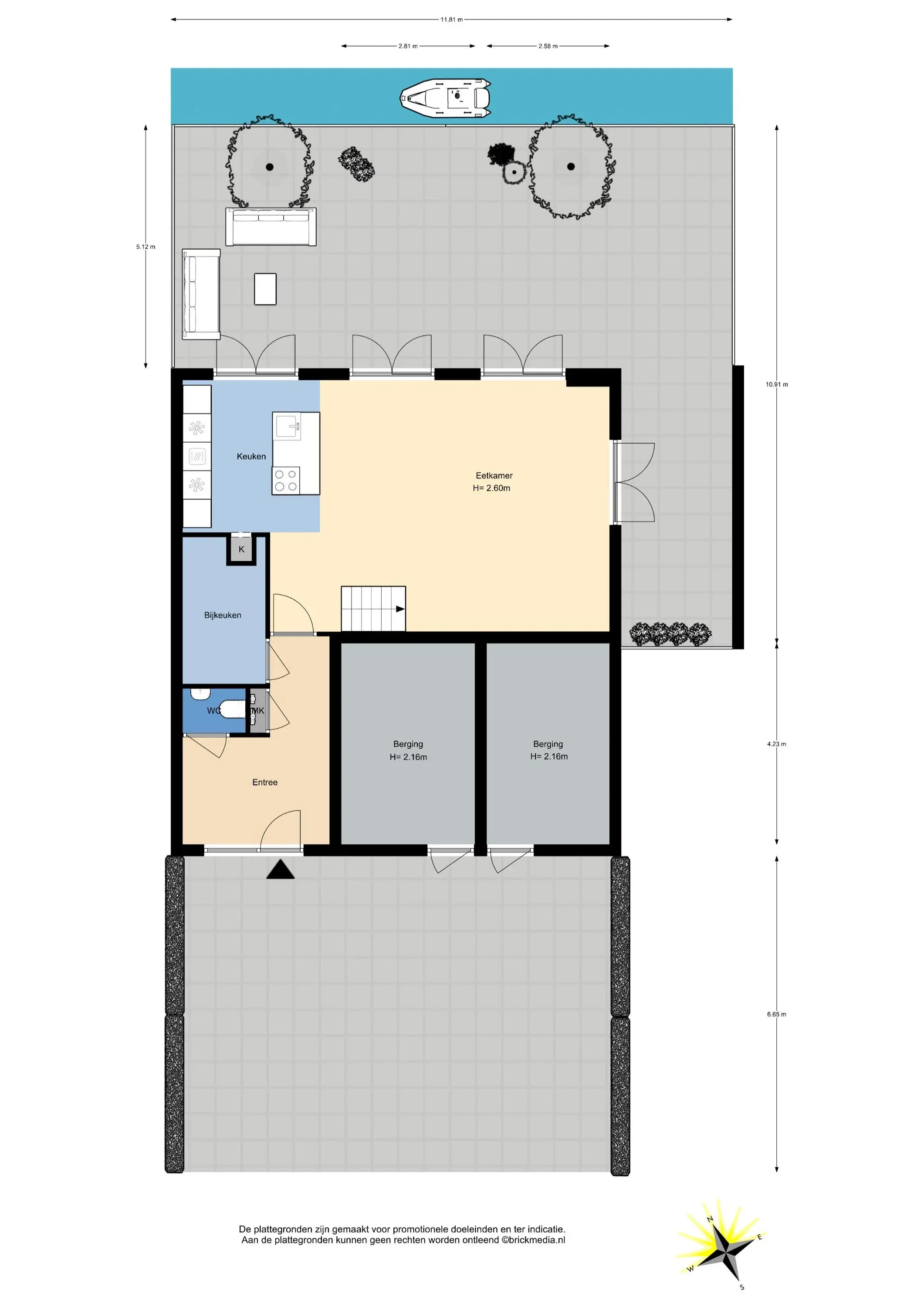 Indeling: parkeerplaatsen met ruimte voor twee auto’s op eigen terrein aan de voorzijde van de woning, entree woning, ruime hal met garderobe, nieuw modern vrij hangend toilet met fontein, meterkast (incl. glasvezel), grote inpandige berging met opstelplaats voor wasmachine en droger, schitterende moderne en royale woonkeuken over de volle breedte van de woning, modern geplaatste keuken met spoeleiland, Quooker, inductie kookplaat met geïntegreerde afzuiging, vaatwasser, combi oven, koelkast en vriezer, middels diverse openslaande deuren heeft men toegang tot de brede zonnige achtertuin welke direct aan het water is gelegen.