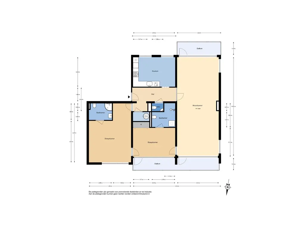 Hoewel wij de woning zorgvuldig hebben opgemeten, wordt noch door ons kantoor, noch door de verkoper enige aansprakelijkheid aanvaard voor afwijkingen in de opgegeven maten. Koper wordt in de gelegenheid gesteld om de opgegeven maten te (laten) controleren.