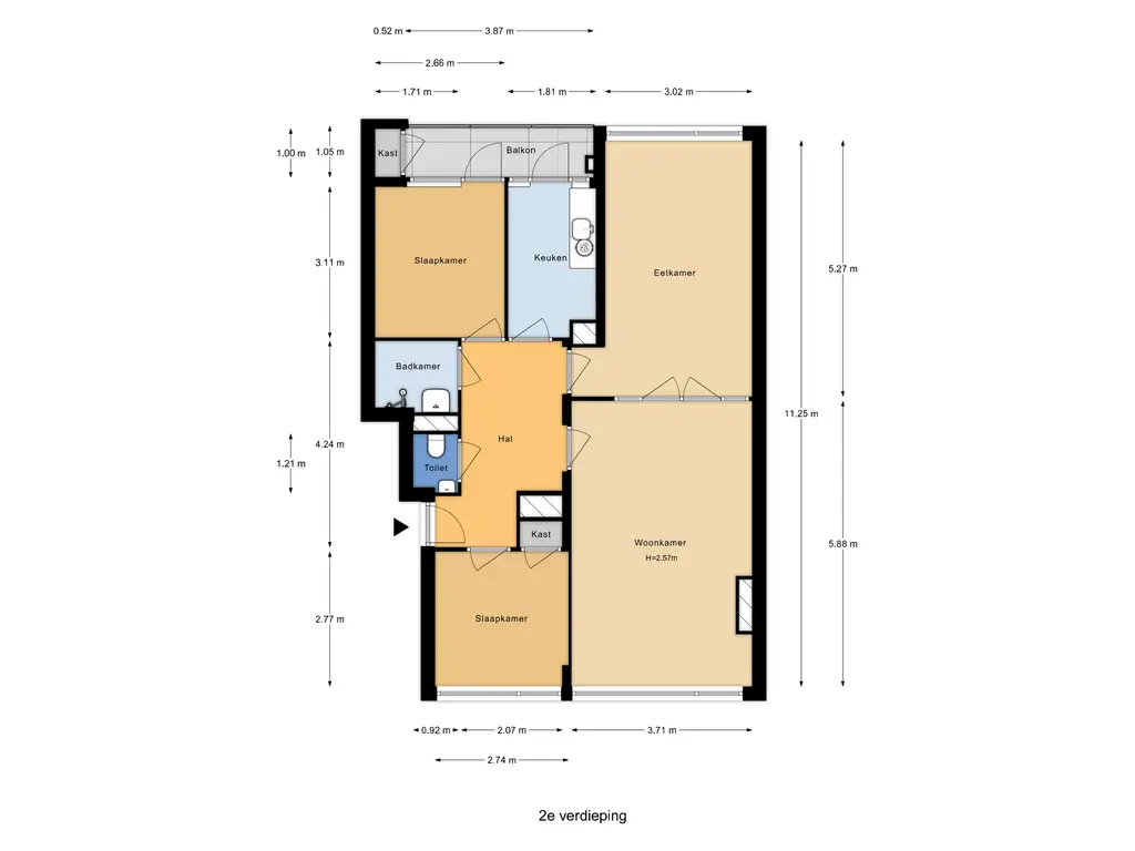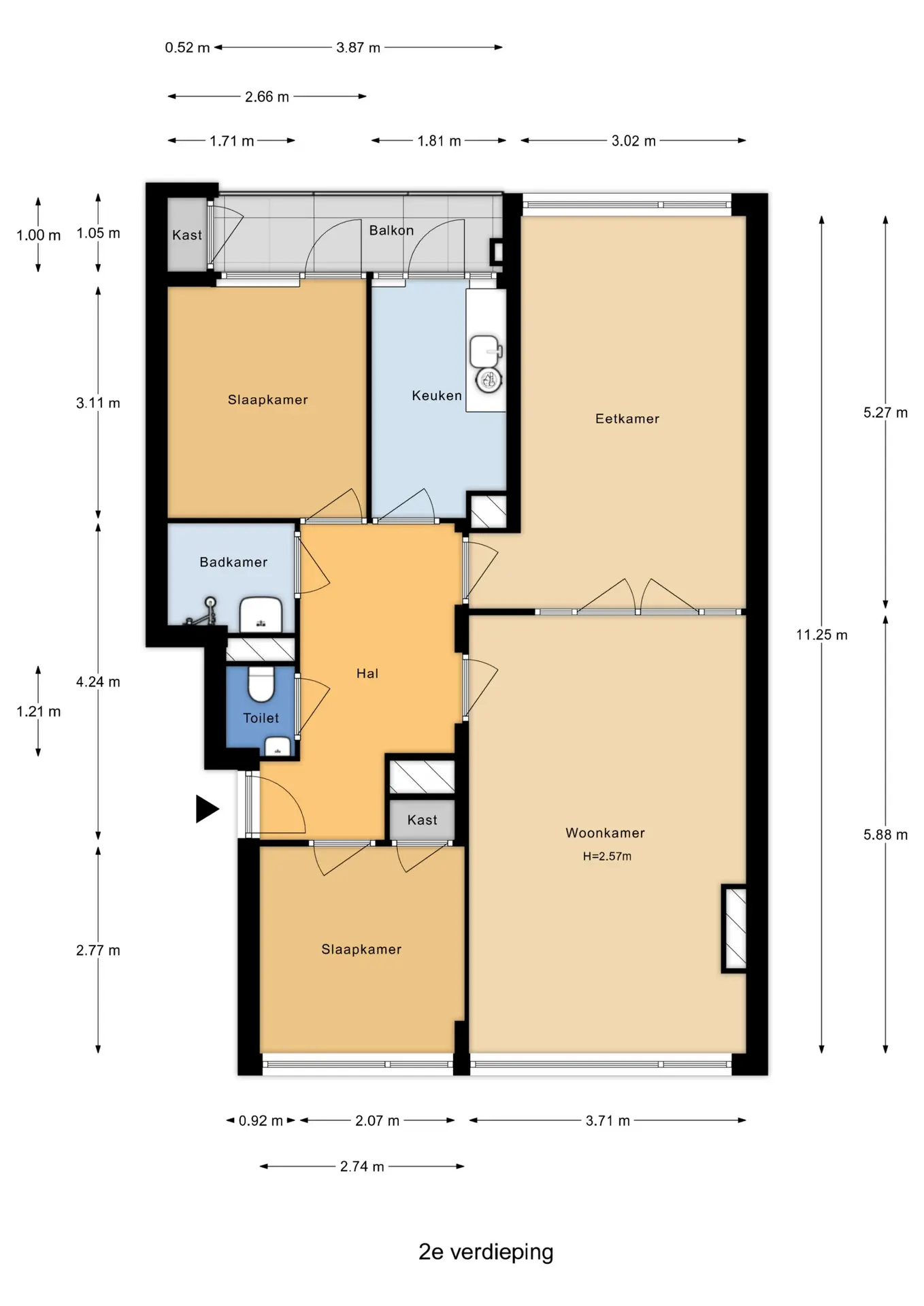 Via de nette centrale entree bereik je met de lift of trap de woning op de tweede etage. De ruime hal vormt het centrale punt van het appartement en biedt toegang tot alle vertrekken. De meterkast is voorzien van twee groepen. Daarnaast is er een separaat toilet met fontein en een aparte douchevoorziening met wastafel.