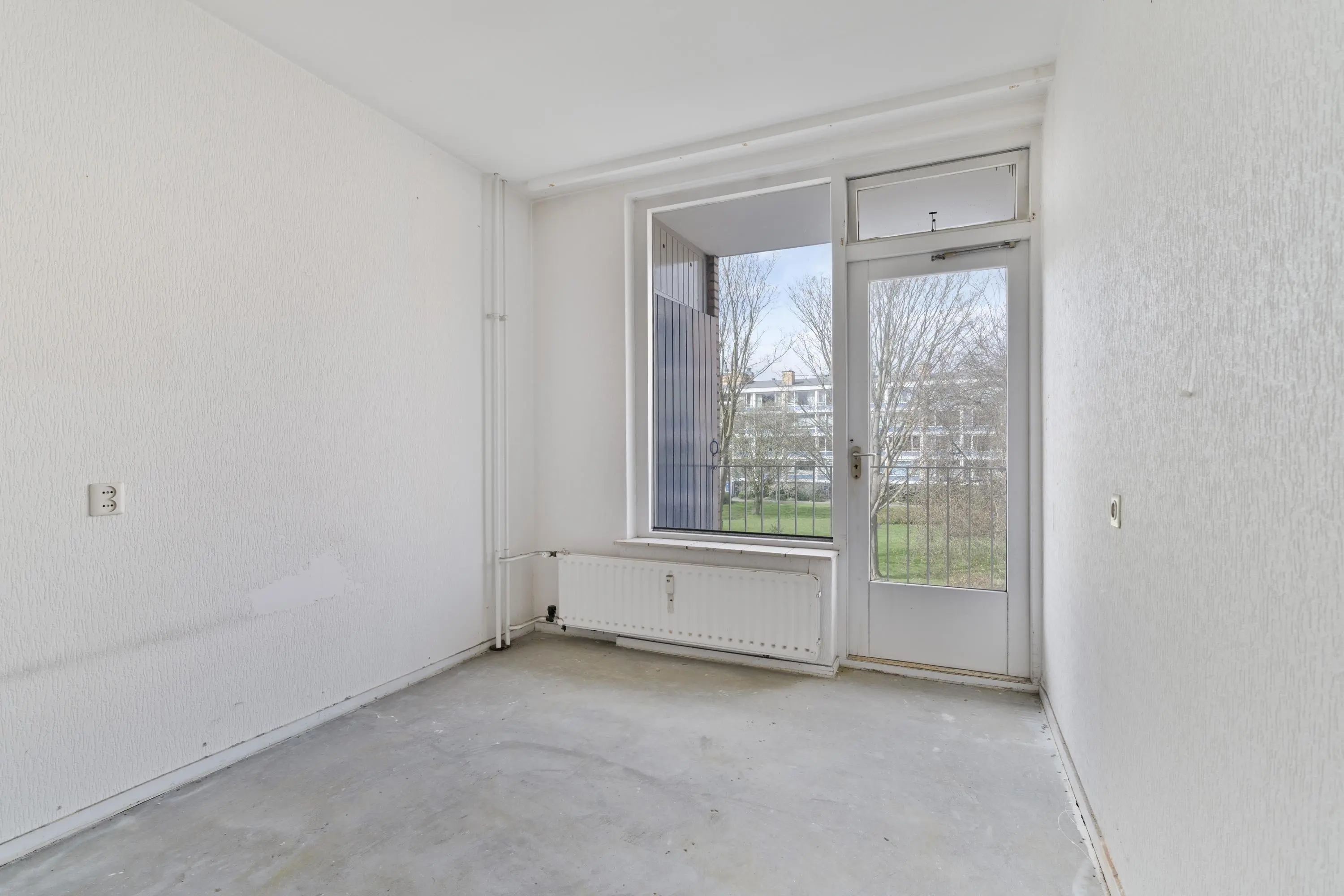 Het balkon is gunstig gelegen aan de achterzijde en biedt een rustige en groene setting.