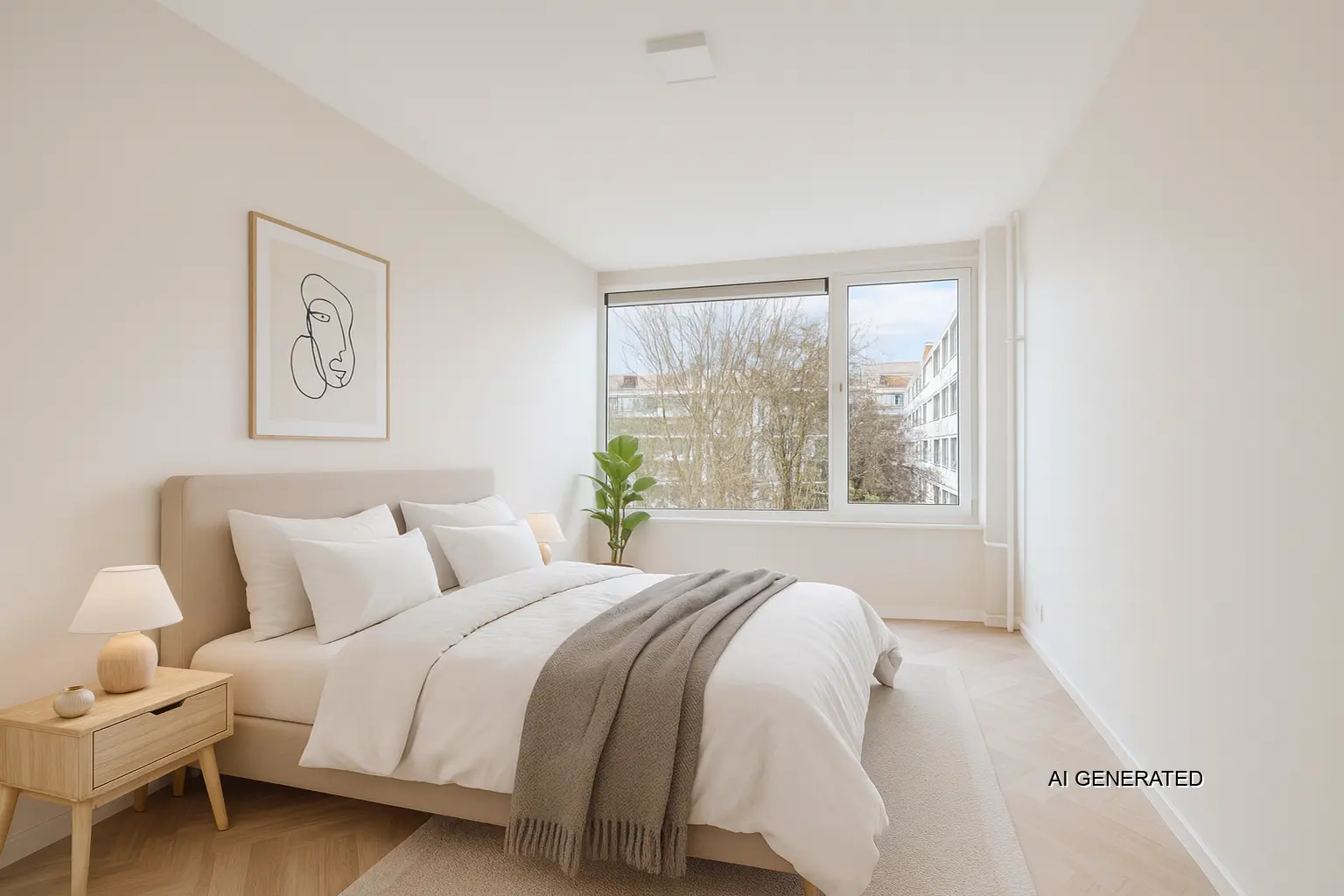 Slaapkamer aan de voorzijde, voorzien van een vaste kast. Tweede slaapkamer aan de achterzijde, eveneens met toegang tot het balkon