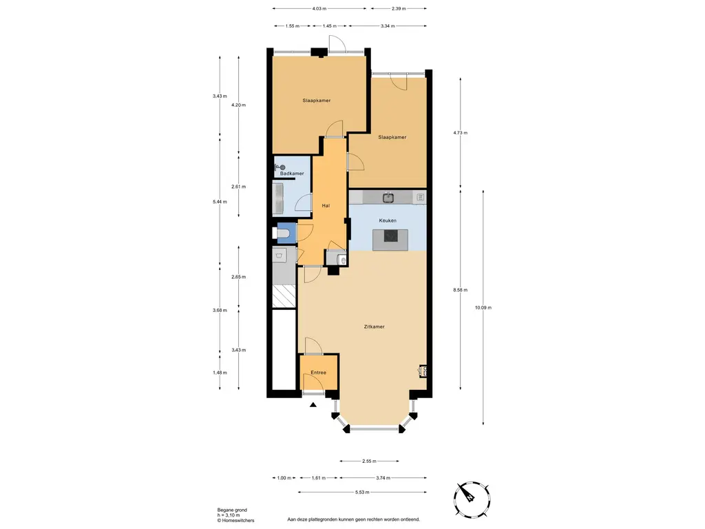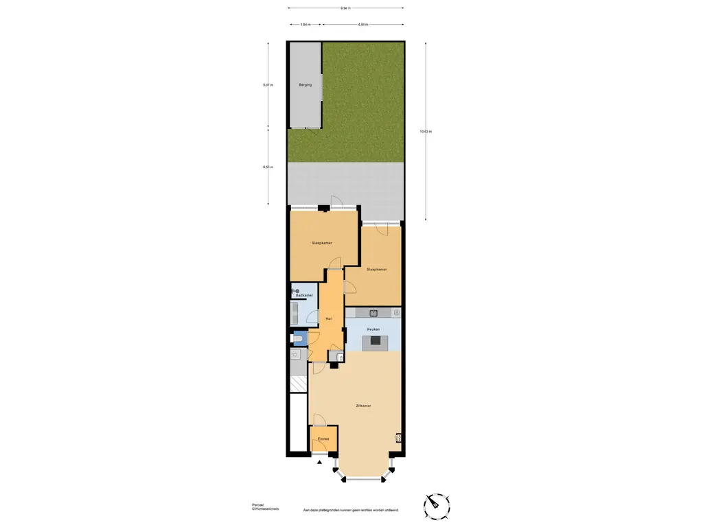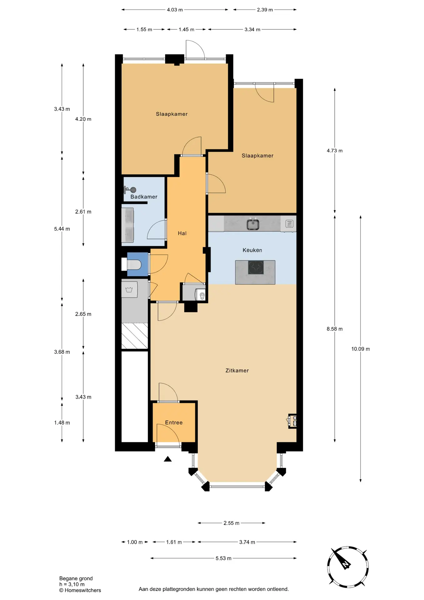 "Bovenstaande informatie is door ons met de hoogst nodige zorgvuldigheid samengesteld. Door ons wordt echter geen enkele aansprakelijkheid aanvaard voor enige onvolledigheid, onjuistheid of anderszins, dan wel de gevolgen daarvan. Alle opgegeven maten en oppervlakten zijn indicatief. De woning is gemeten met gebruikmaking van de Meetinstructie, die is gebaseerd op de normen zoals vastgelegd in NEN 2580. De Meetinstructie is bedoeld om een meer eenduidige manier van meten toe te passen voor het geven van een indicatie van gebruiksoppervlakte. De Meetinstructie sluit verschillen in meetuitkomsten niet volledig uit, door bijvoorbeeld interpretatieverschillen, afrondingen of beperkingen bij het uitvoeren van de meting. Hoewel wij de woning zorgvuldig hebben opgemeten, wordt noch door ons kantoor, noch door de verkoper enige aansprakelijkheid aanvaard voor afwijkingen in de opgegeven maten. Koper wordt in de gelegenheid gesteld om de opgegeven maten te (laten) controleren”.
