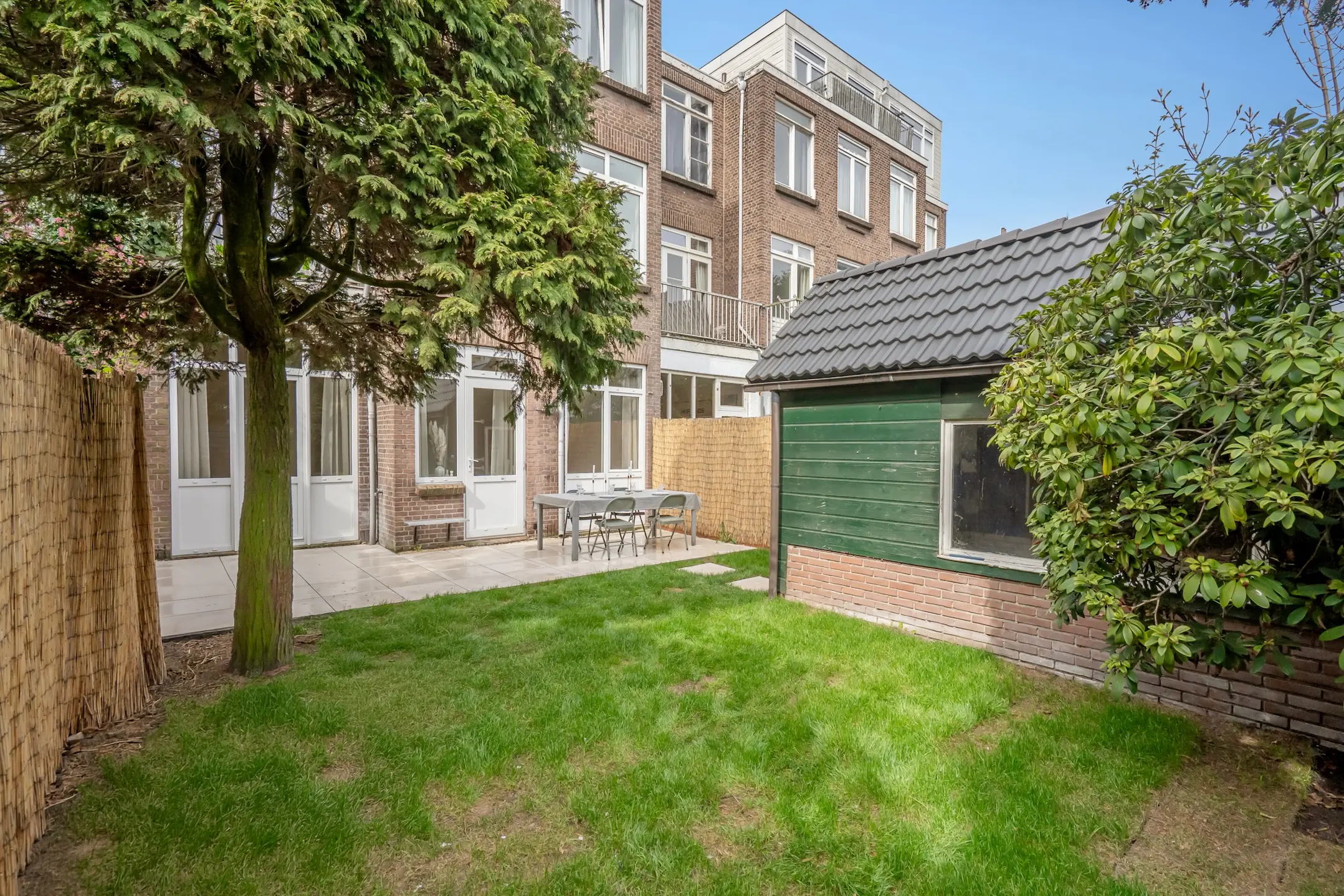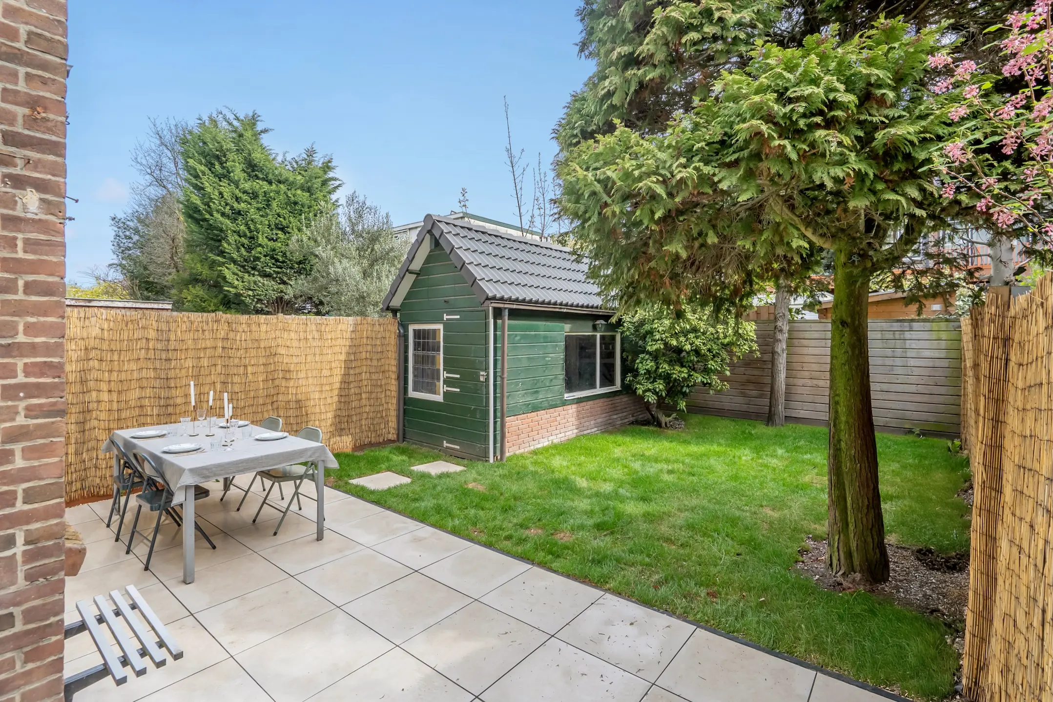 De verzorgde achtertuin, gelegen op het noordoosten, is ca. 11 meter diep en biedt volop ruimte om te ontspannen, tuinieren of gezellig buiten te zitten. Achterin de tuin bevindt zich een praktische houten schuur voor extra bergruimte.