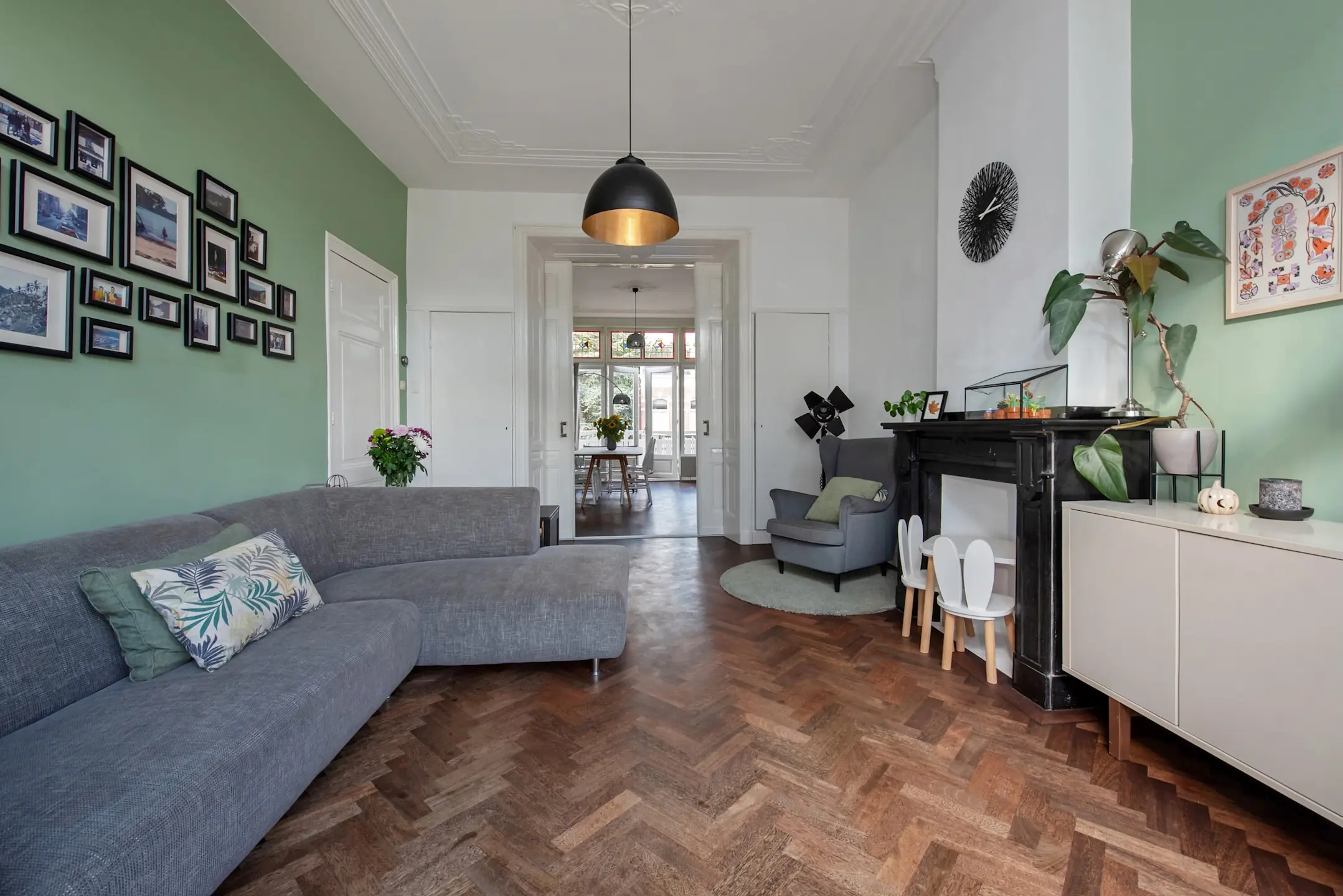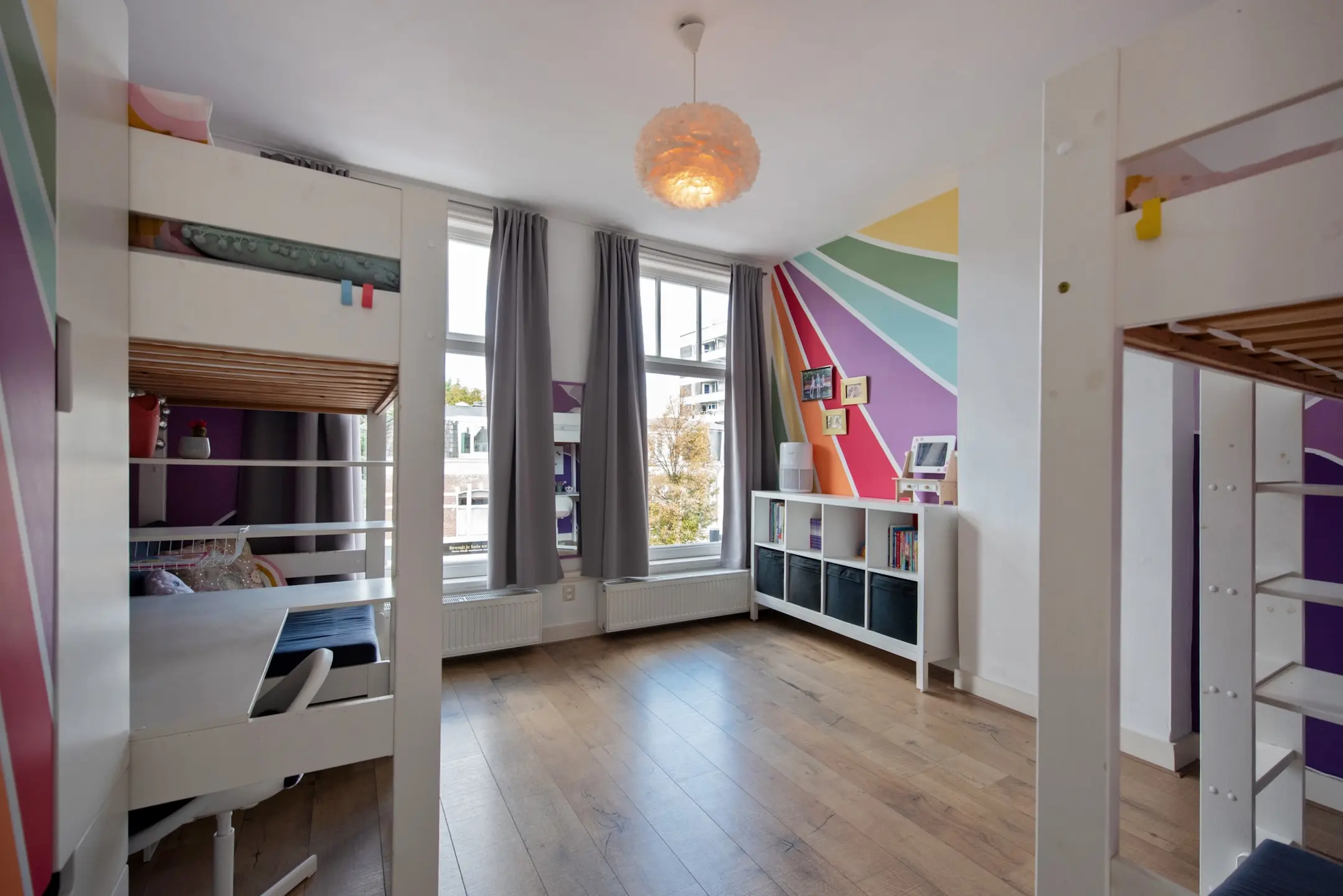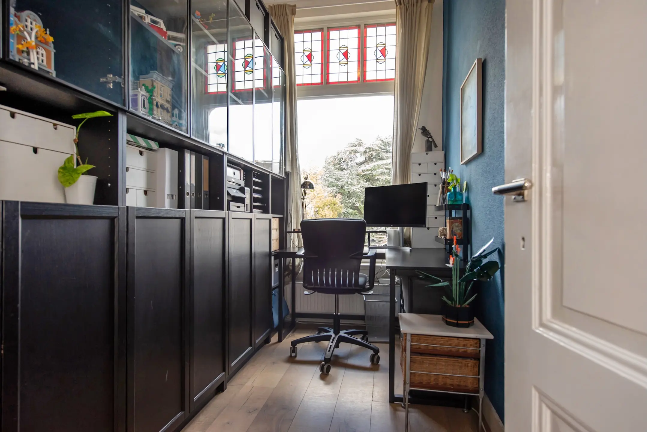 Deze verdieping is zeer ruimtelijk vanwege de hoge plafonds en hoge ramen en bezorgen je het wow-effect!