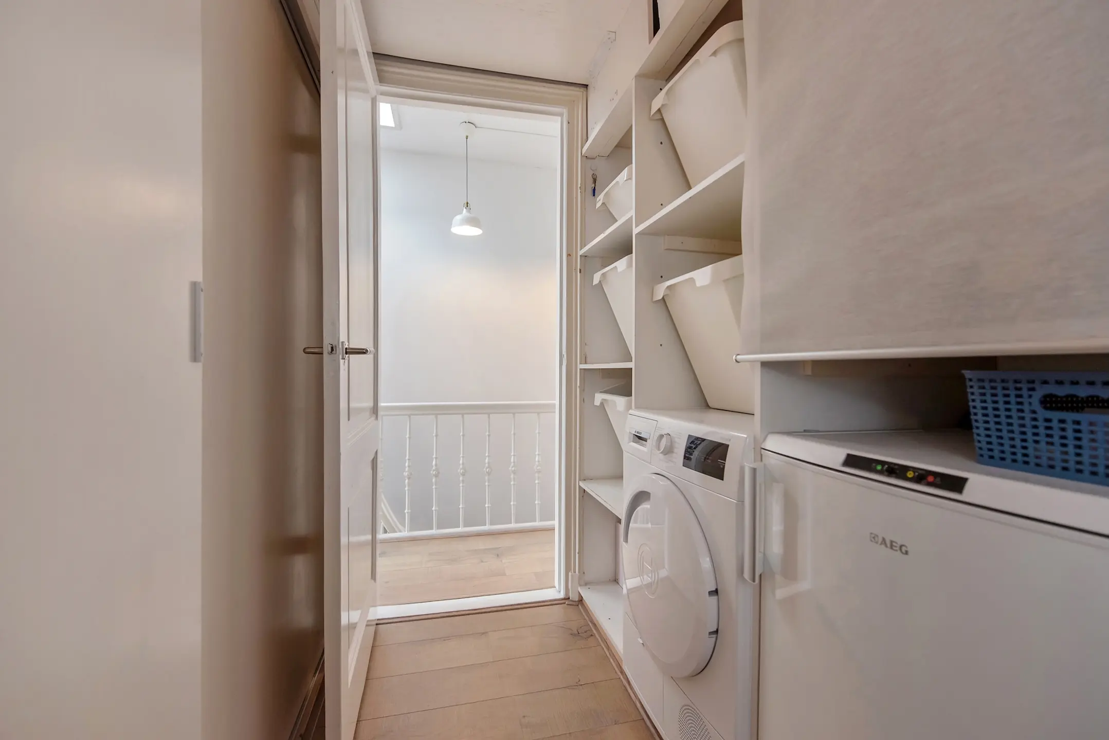 Tussengelegen kastenkamer met onder meer de opstelplaats van de wasdroger en ruimte voor een extra vriezer.