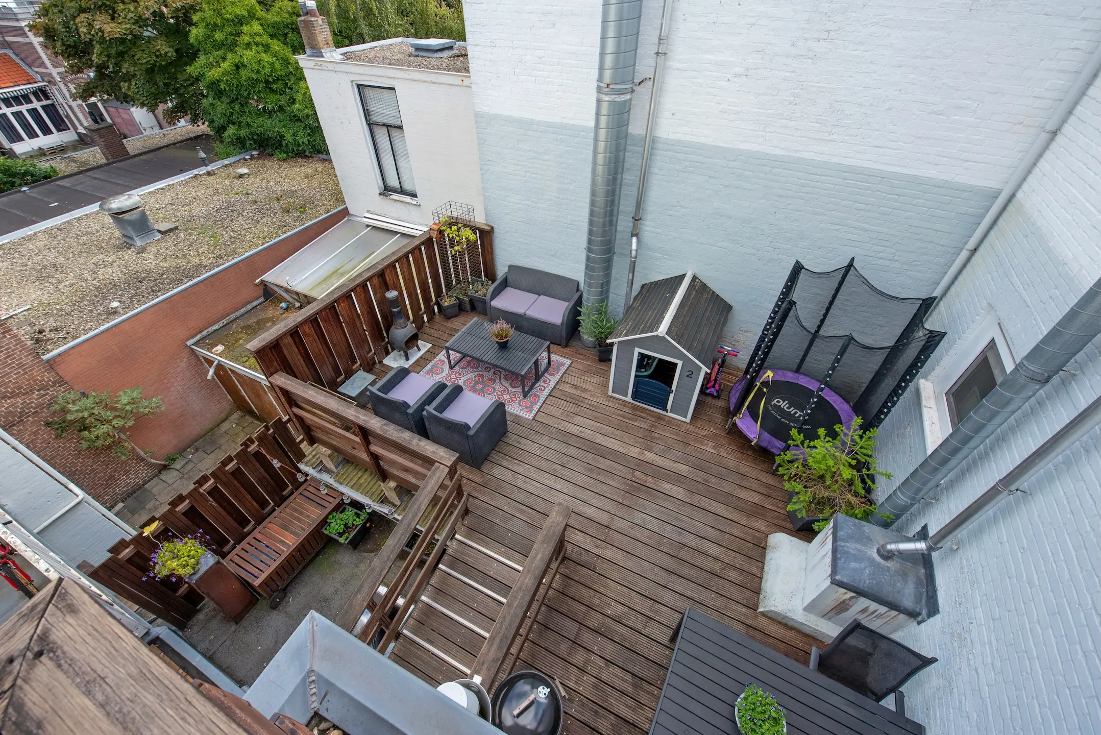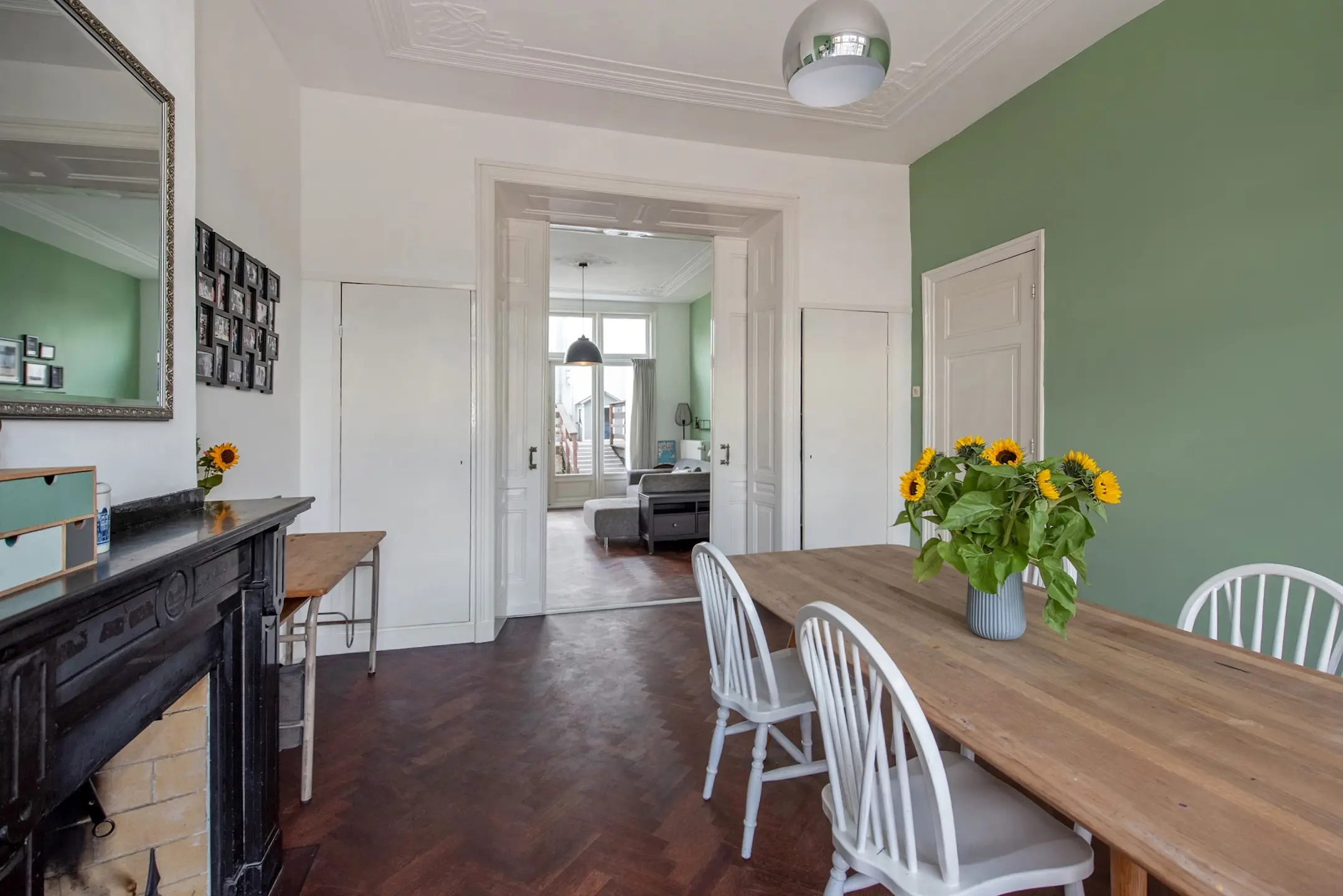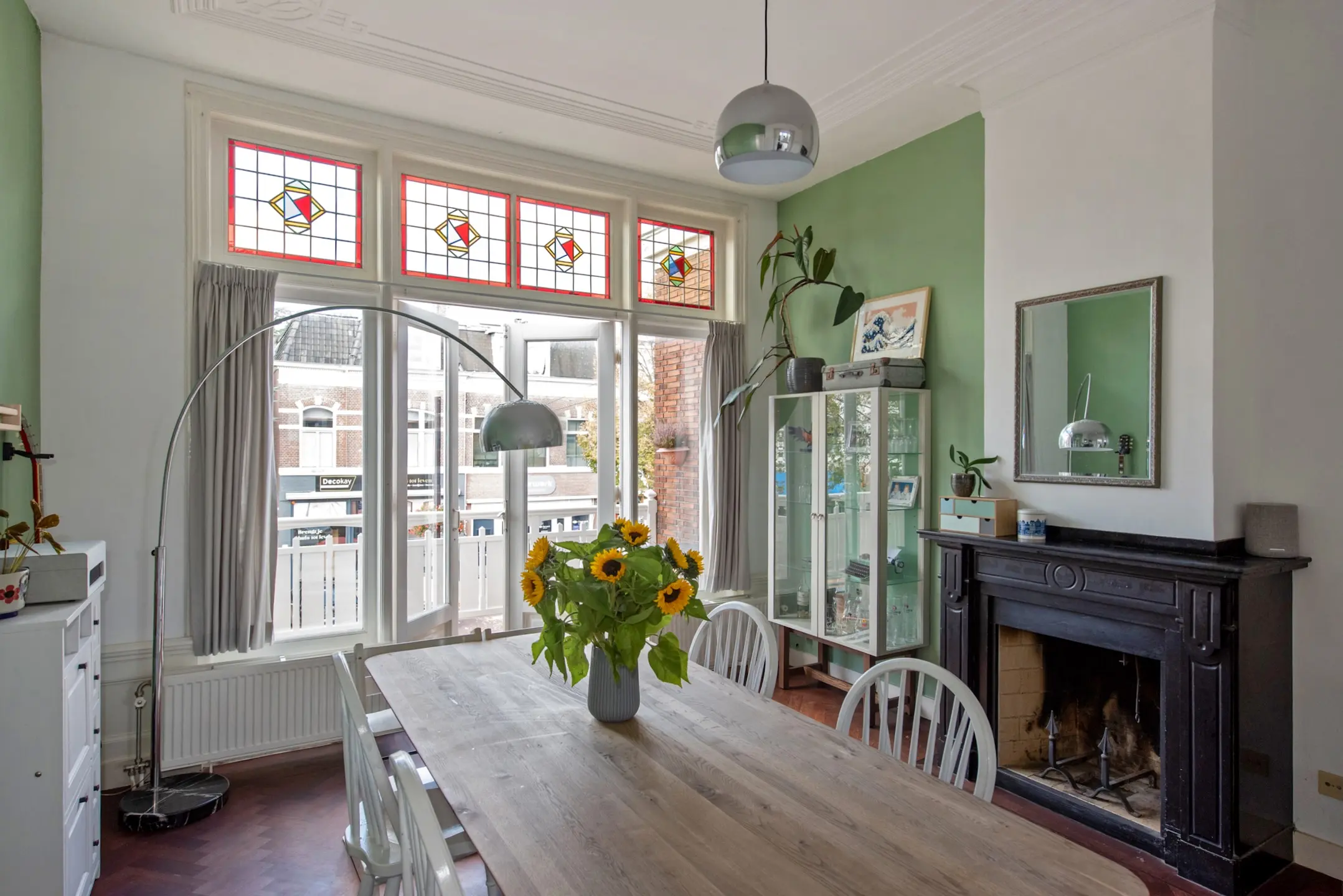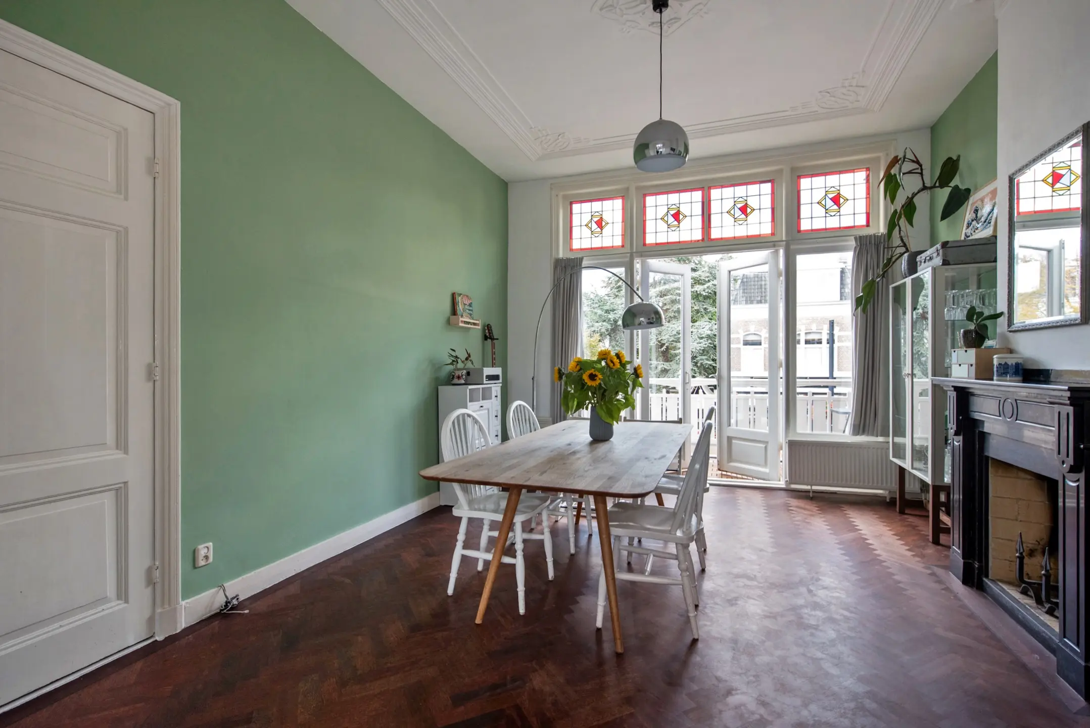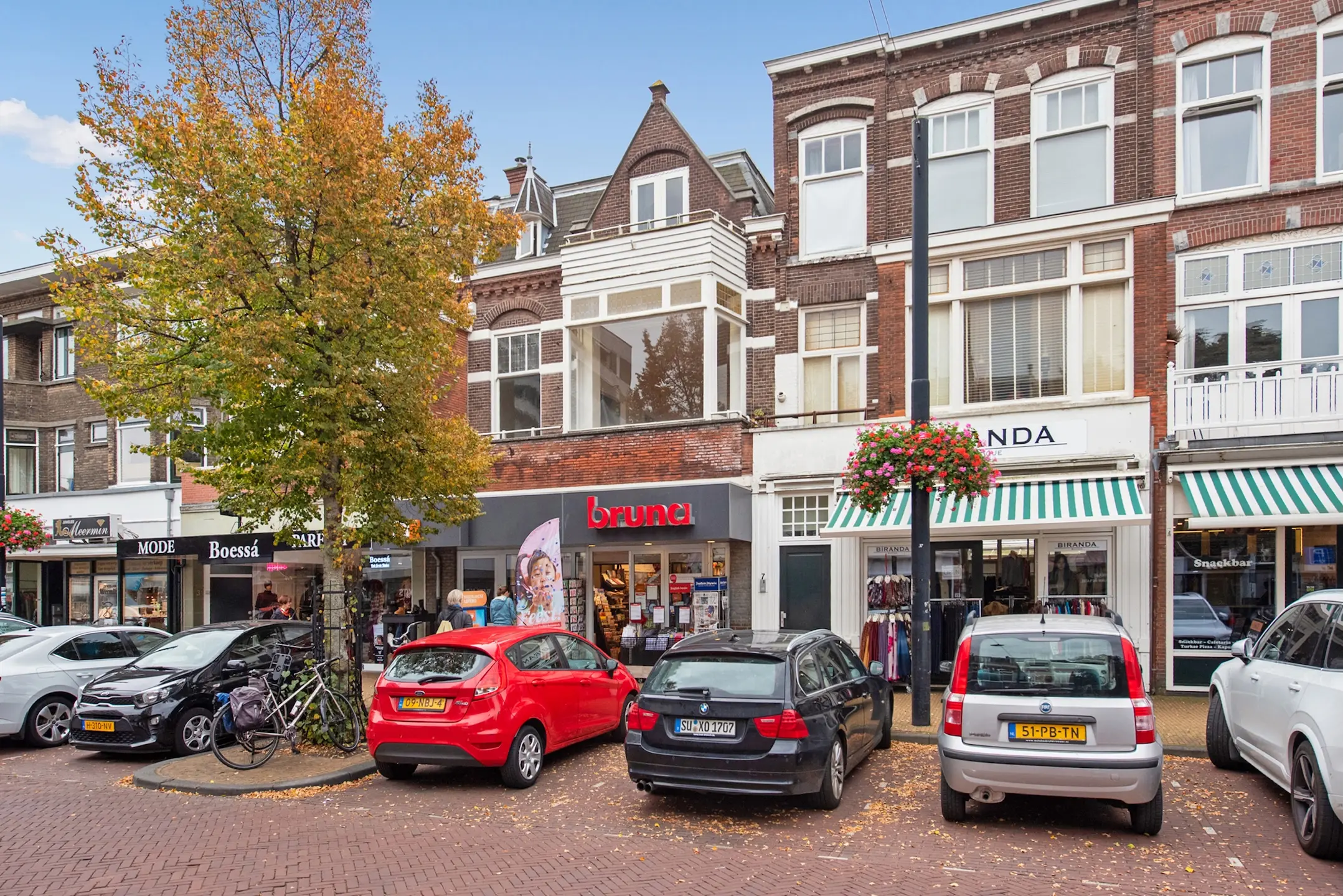 In de gezellige "Herenstraat" , van oudsher de winkelstraat van Rijswijk, gelegen charmante 6-kamer (waarvan 4 slaapkamers) dubbele bovenwoning met dakterras en veel oorspronkelijke stijlelementen zoals de hoge plafonds van maar liefst ca. 3.25 meter, paneeldeuren, glas-in-lood ramen, zwart marmeren schouwen en de fraaie schuifseparatie met vaste kasten in de woonkamer.