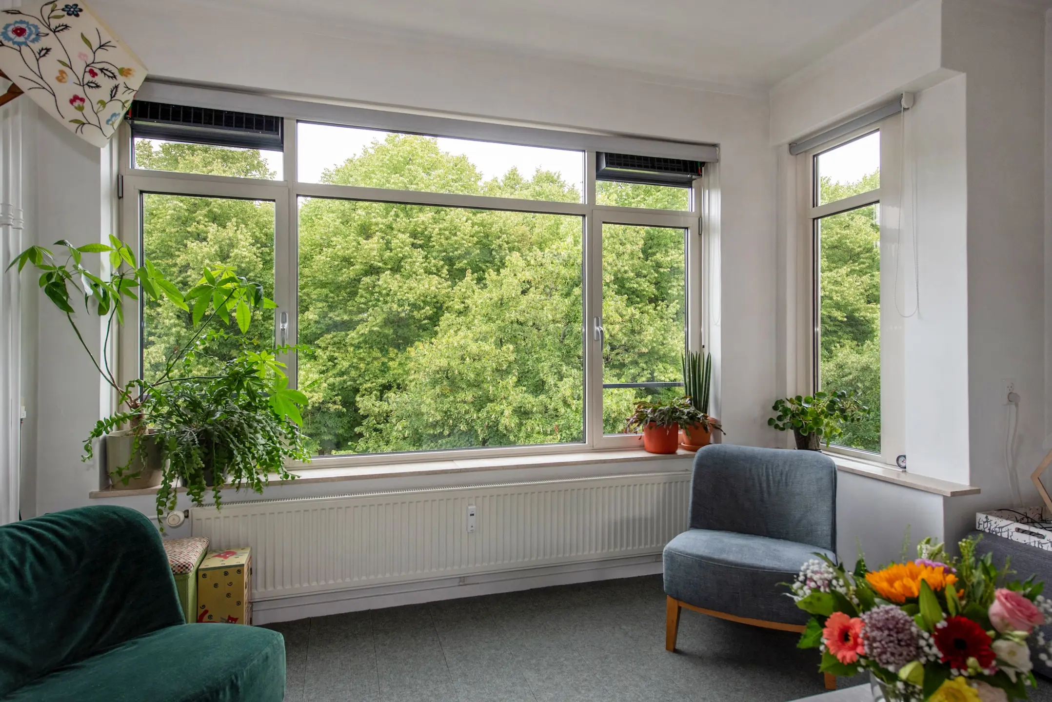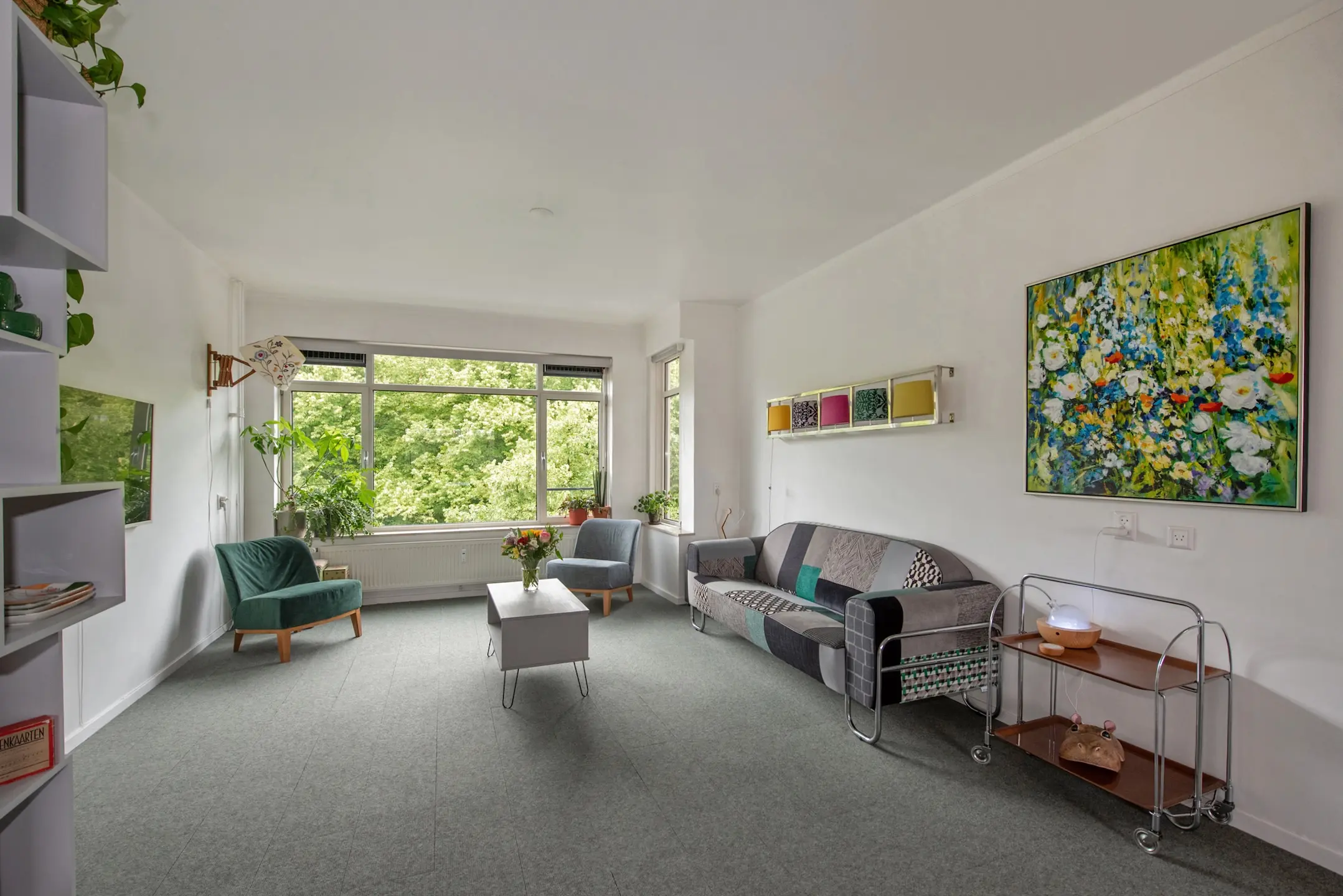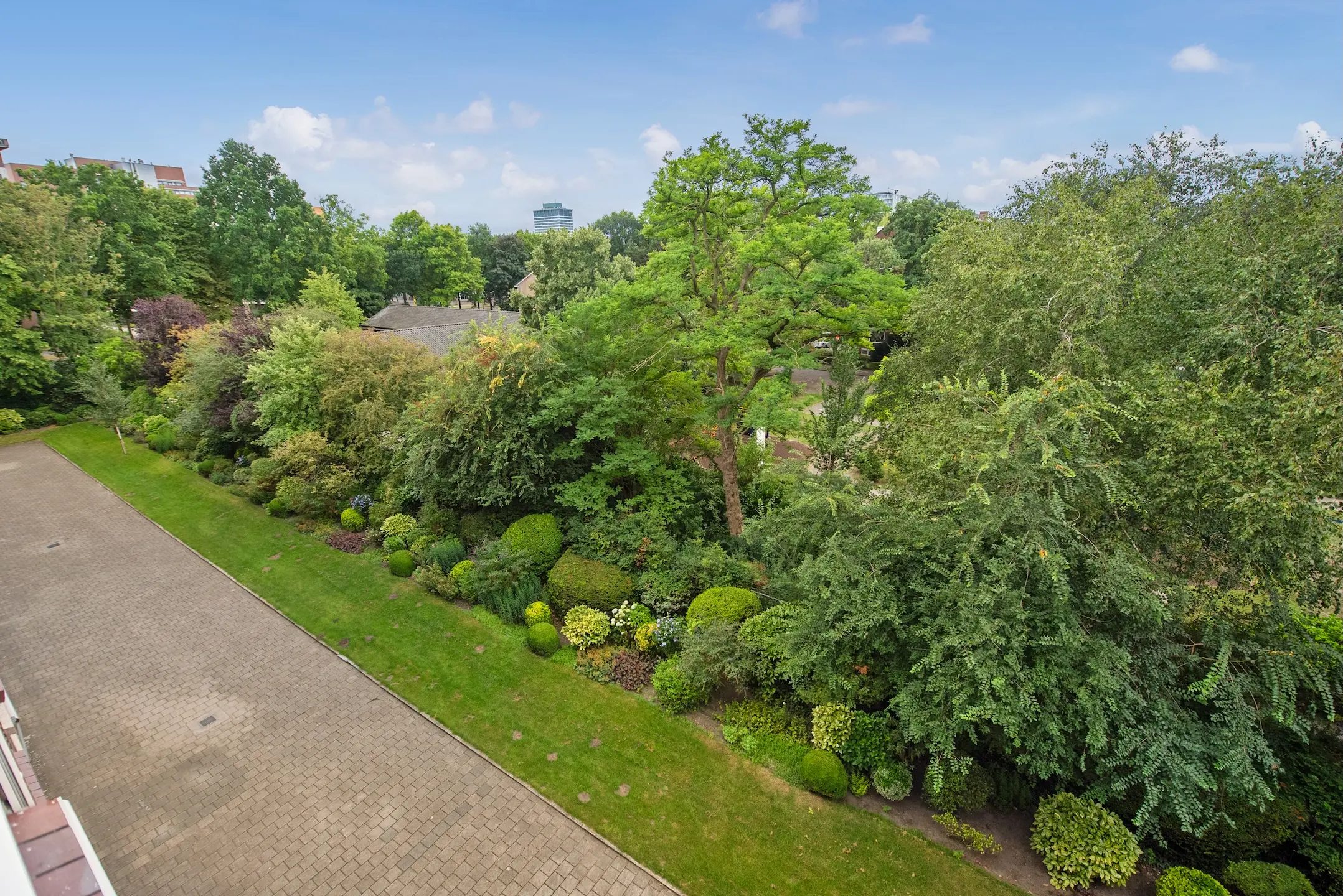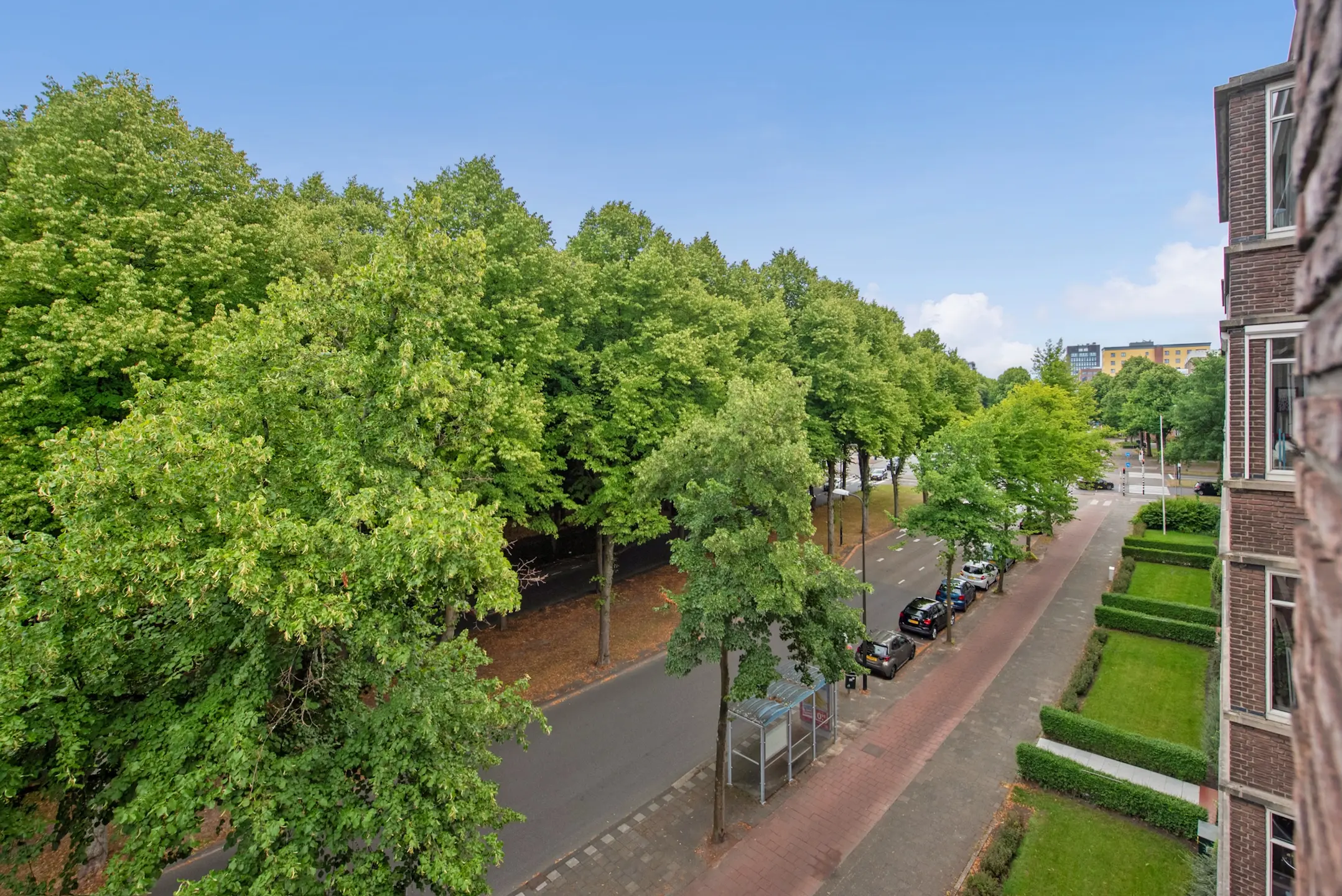 Doorgebroken kamer en suite waardoor deze zeer licht en ruimtelijk is, mooi uitzicht aan de voorzijde over het park, aan de achterzijde middels een glazen pui in verbinding met het balkon. Ook hier groen en een weids uitzicht met veel privacy en een praktische balkonkast.