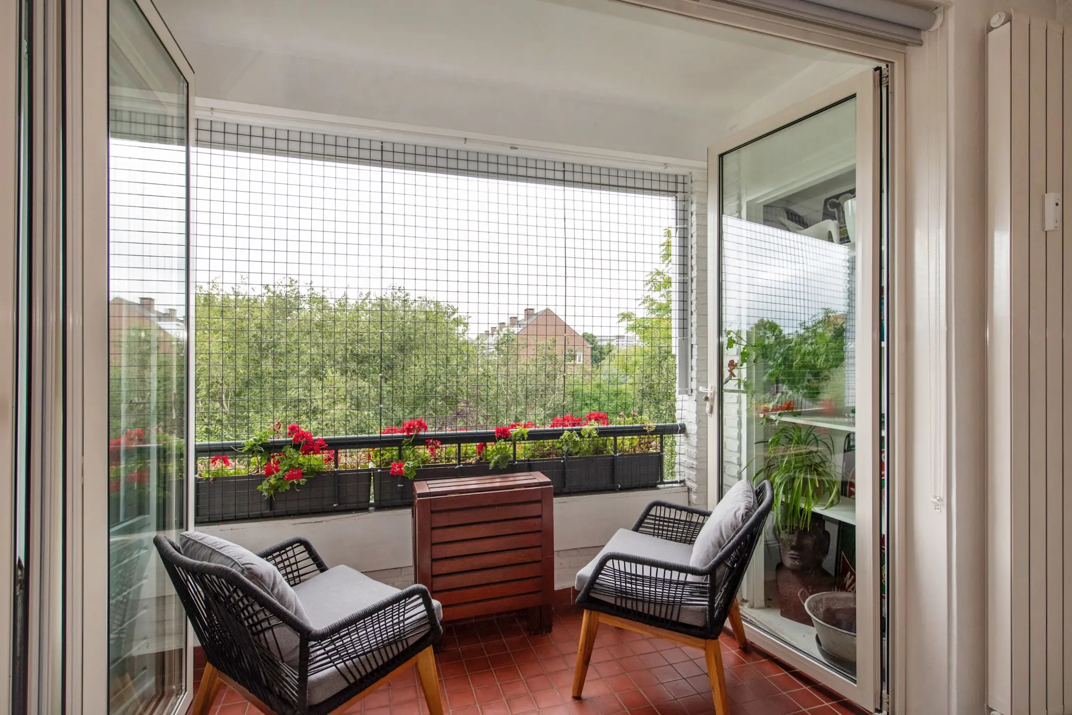 Zeer fraai is de glazen pui van het balkon/woonkamer welke middels een openslaande deur en een vouwdeel over de volle breedte van de living geopend kan worden!