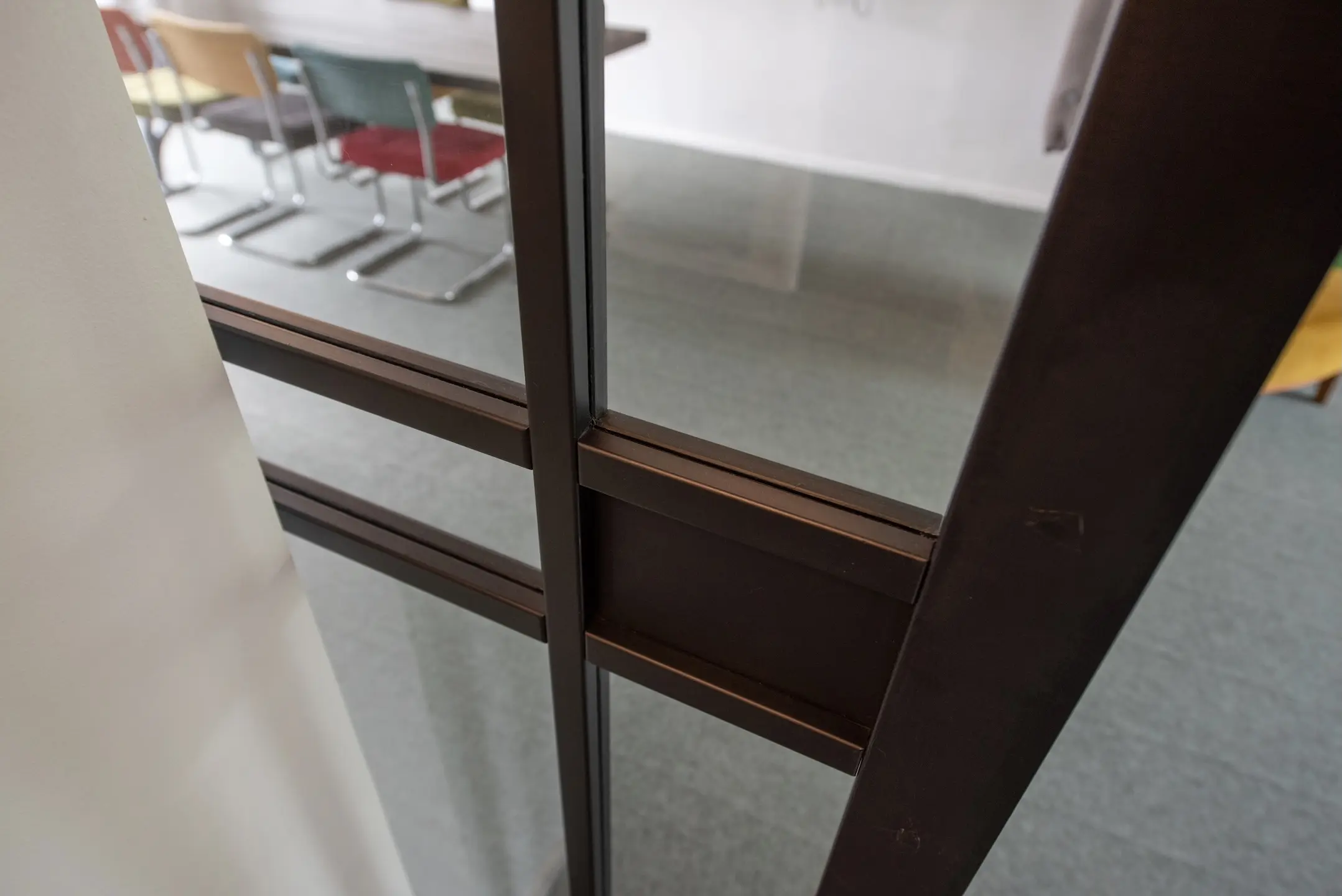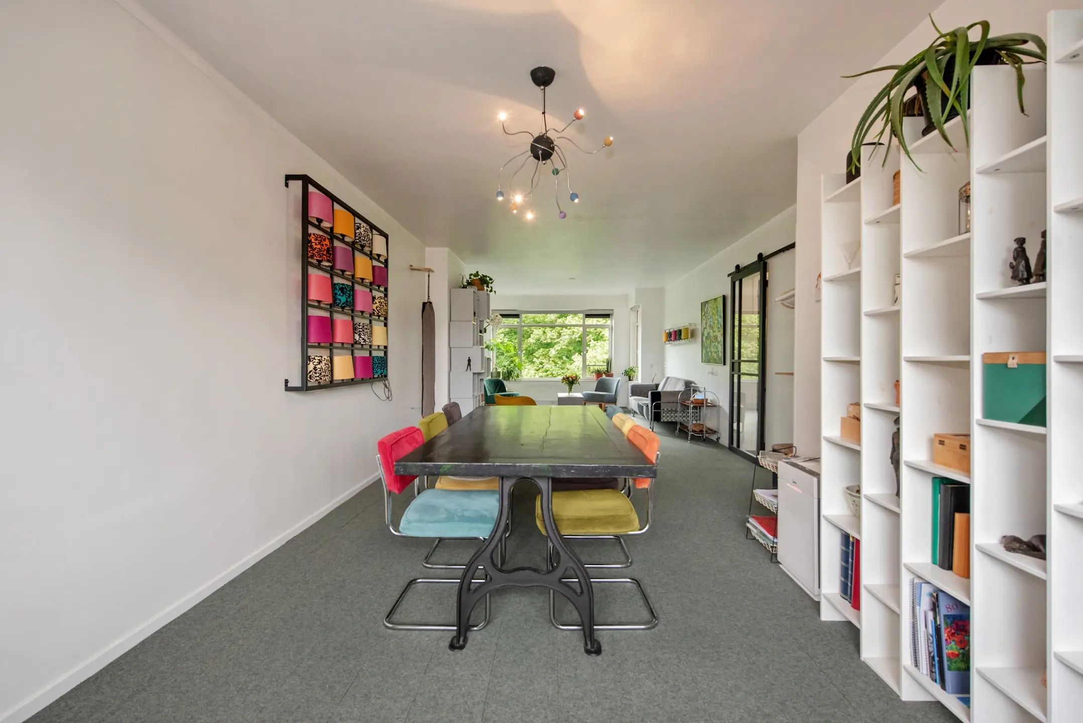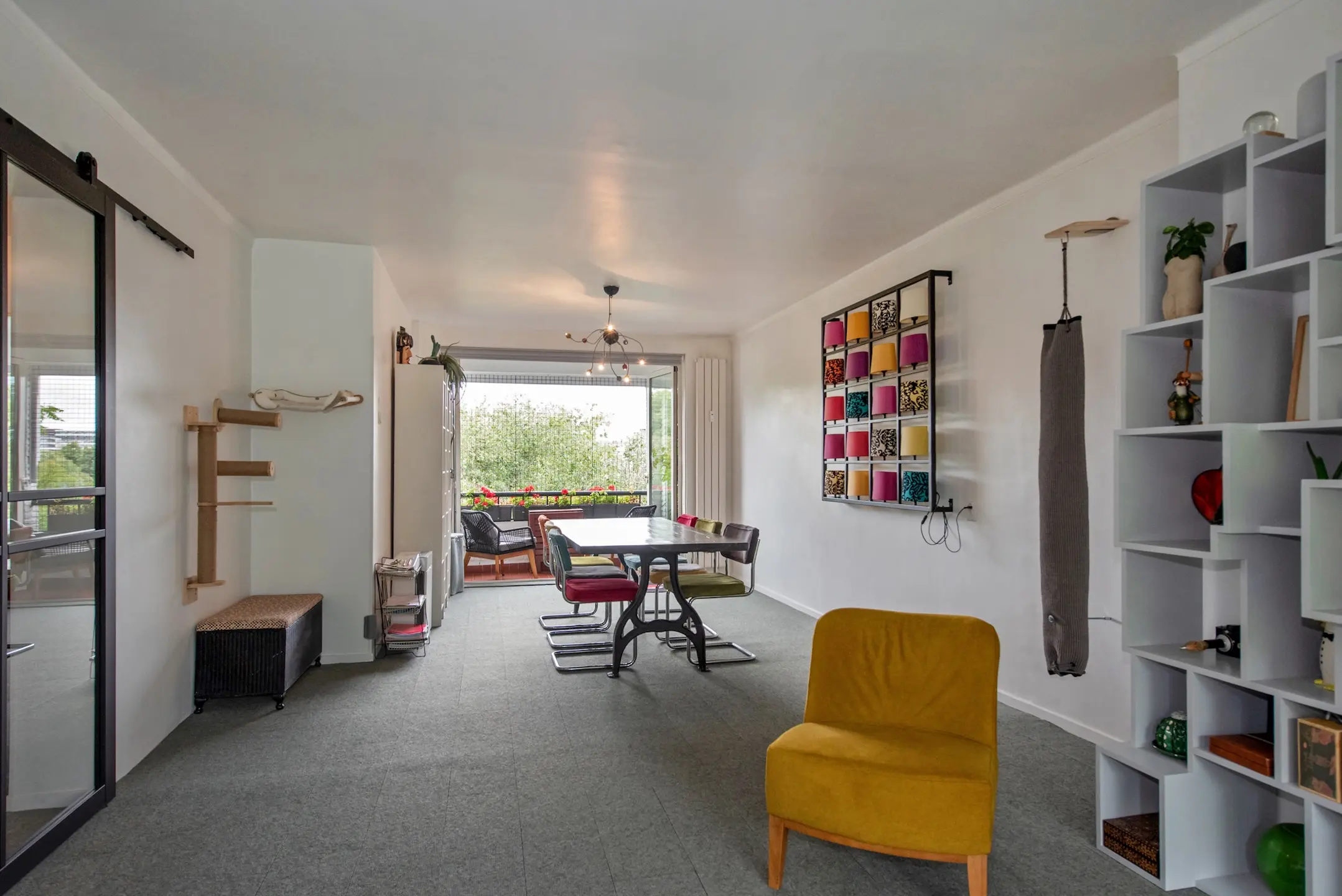 In de woning vernieuwde binnendeuren met een Industriële look en glazen/melkglazen panelen.