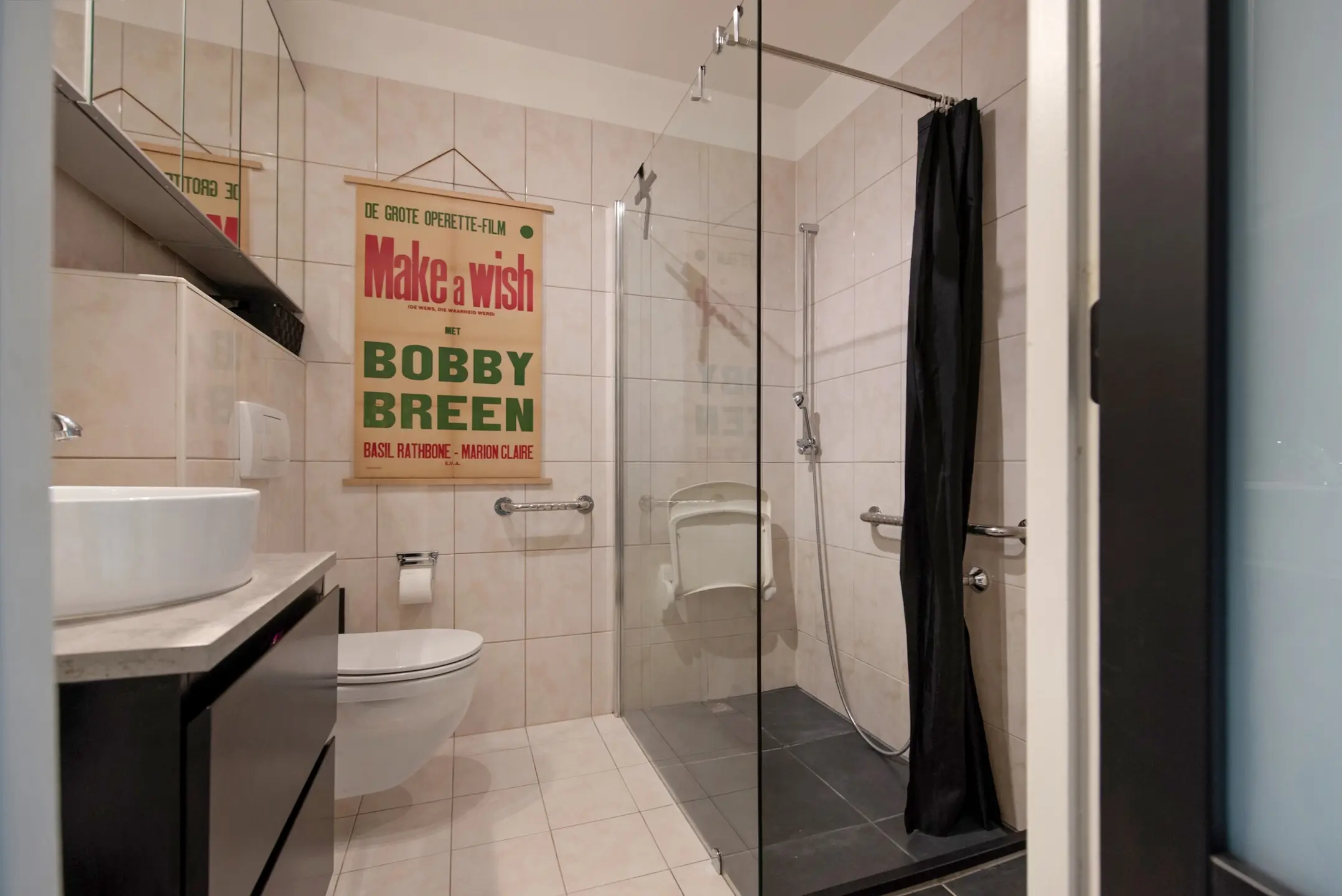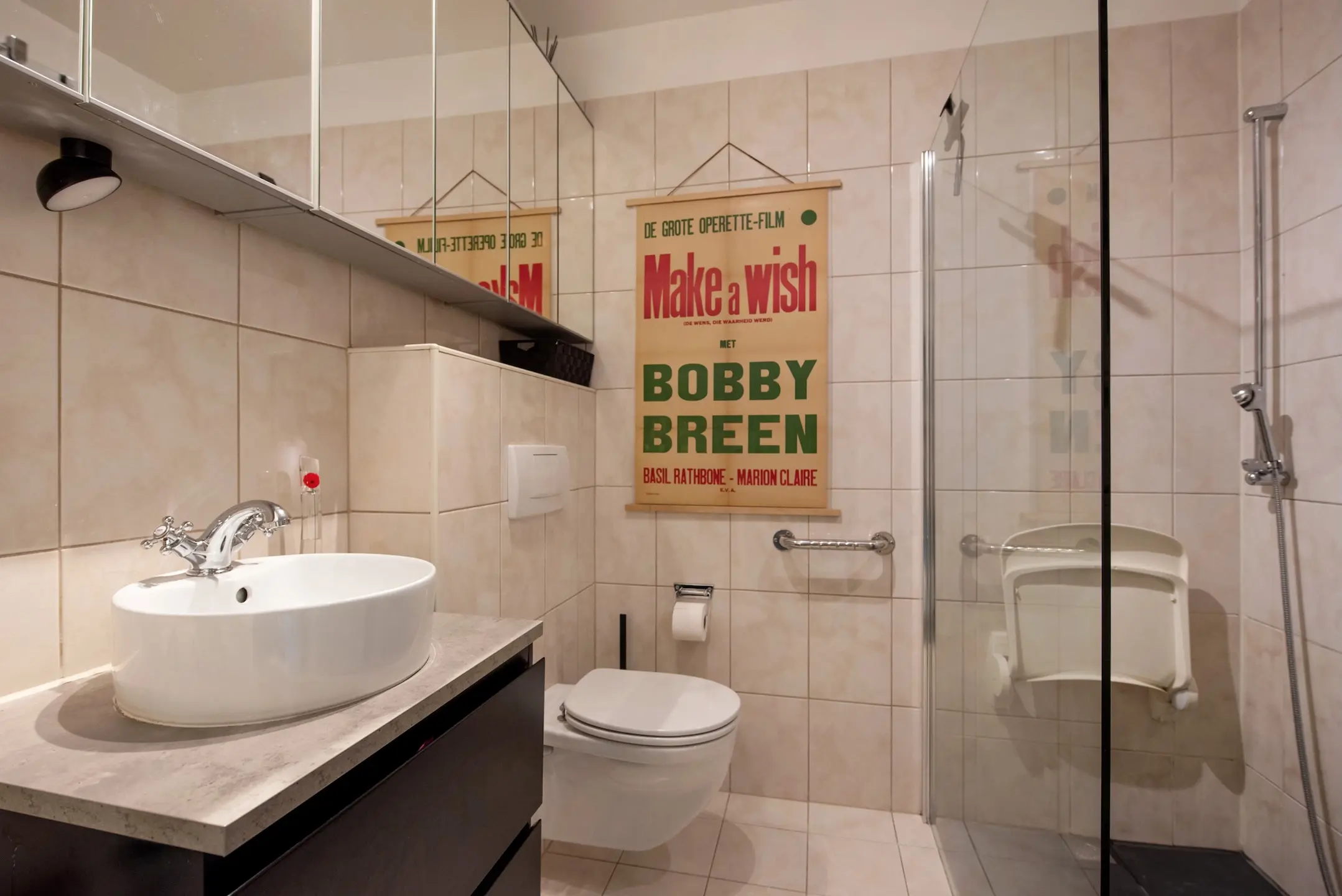 De badkamer is vergroot en is voorzien van een inloopdouche, een wastafelmeubel met een 6 deurs spiegelkast over de breedte en een wandcloset.