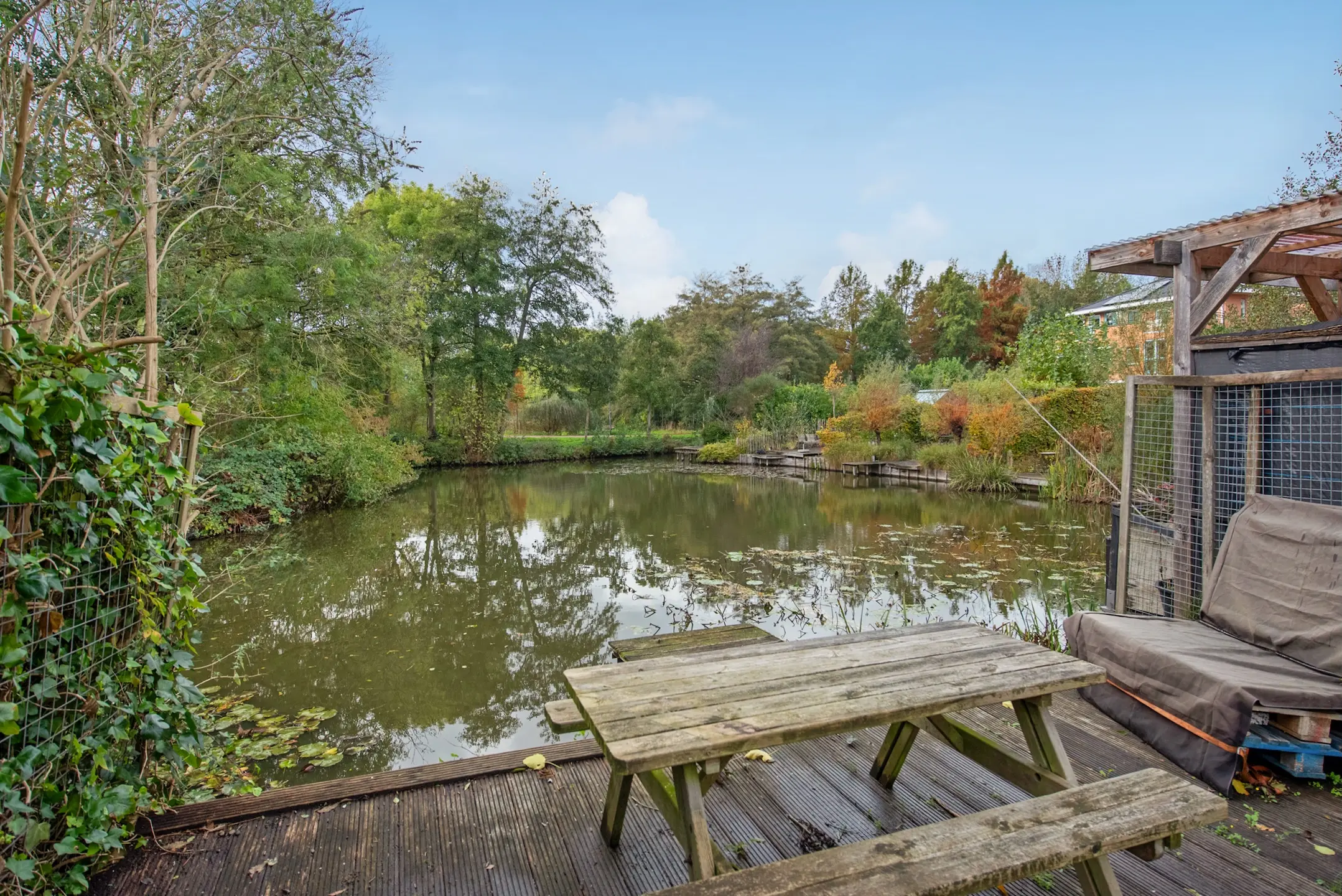 • Diepe tuin met houten vlonder gelegen aan fraaie waterpartij
