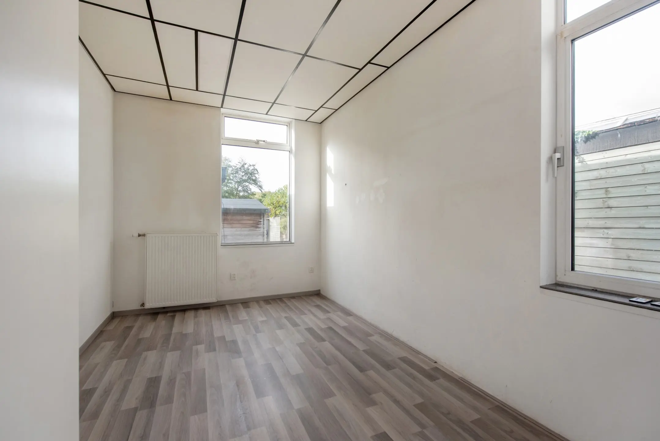 Grenzend aan de keuken ligt een tweede slaapkamer met uitzicht op de tuin. Deze kamer is rustig gelegen en heeft een prettige lichtinval.