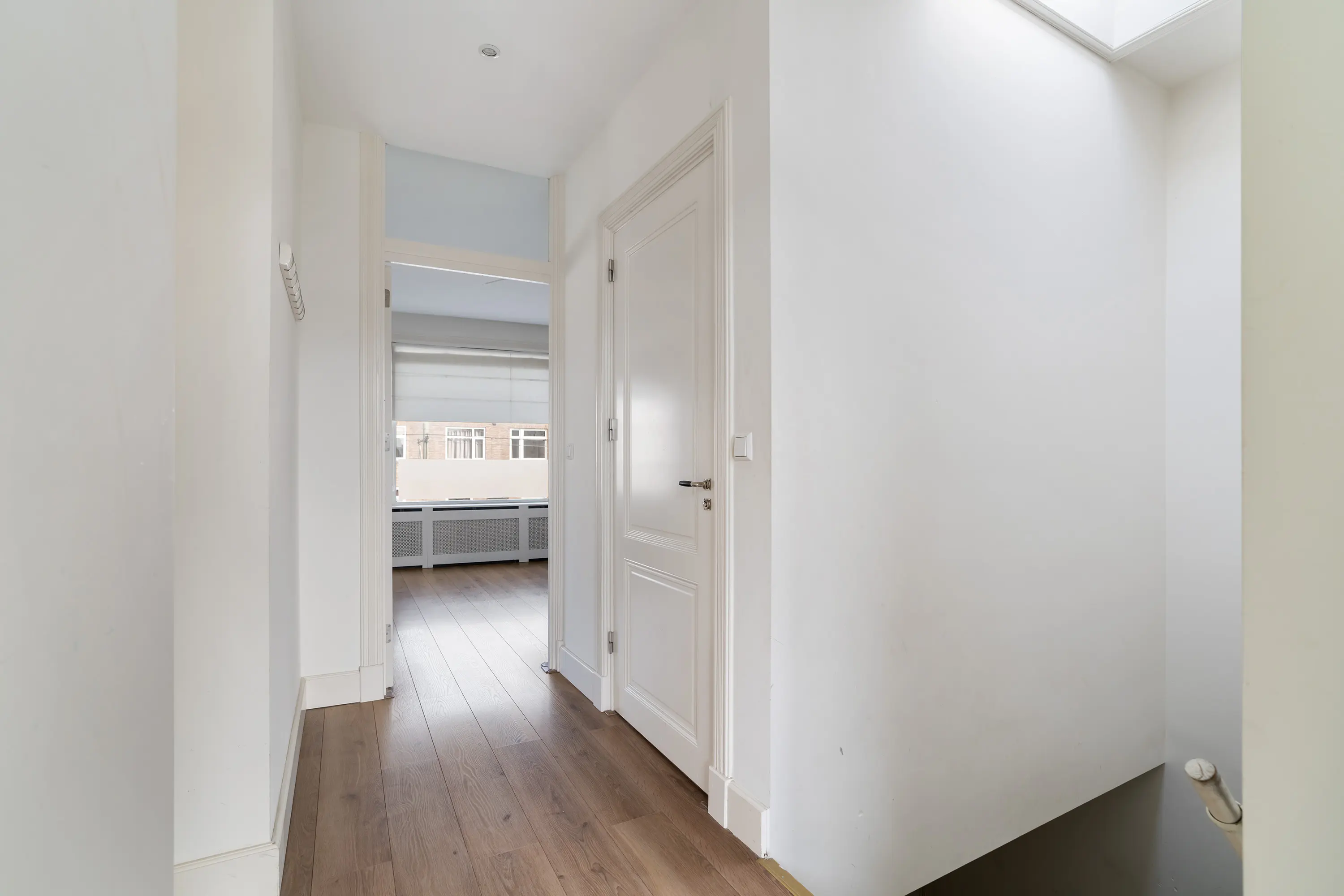 Entree via het portiek met een binnentrap die uitkomt op de overloop op de tweede etage. De verdieping is geheel voorzien van een fraaie laminaatvloer.