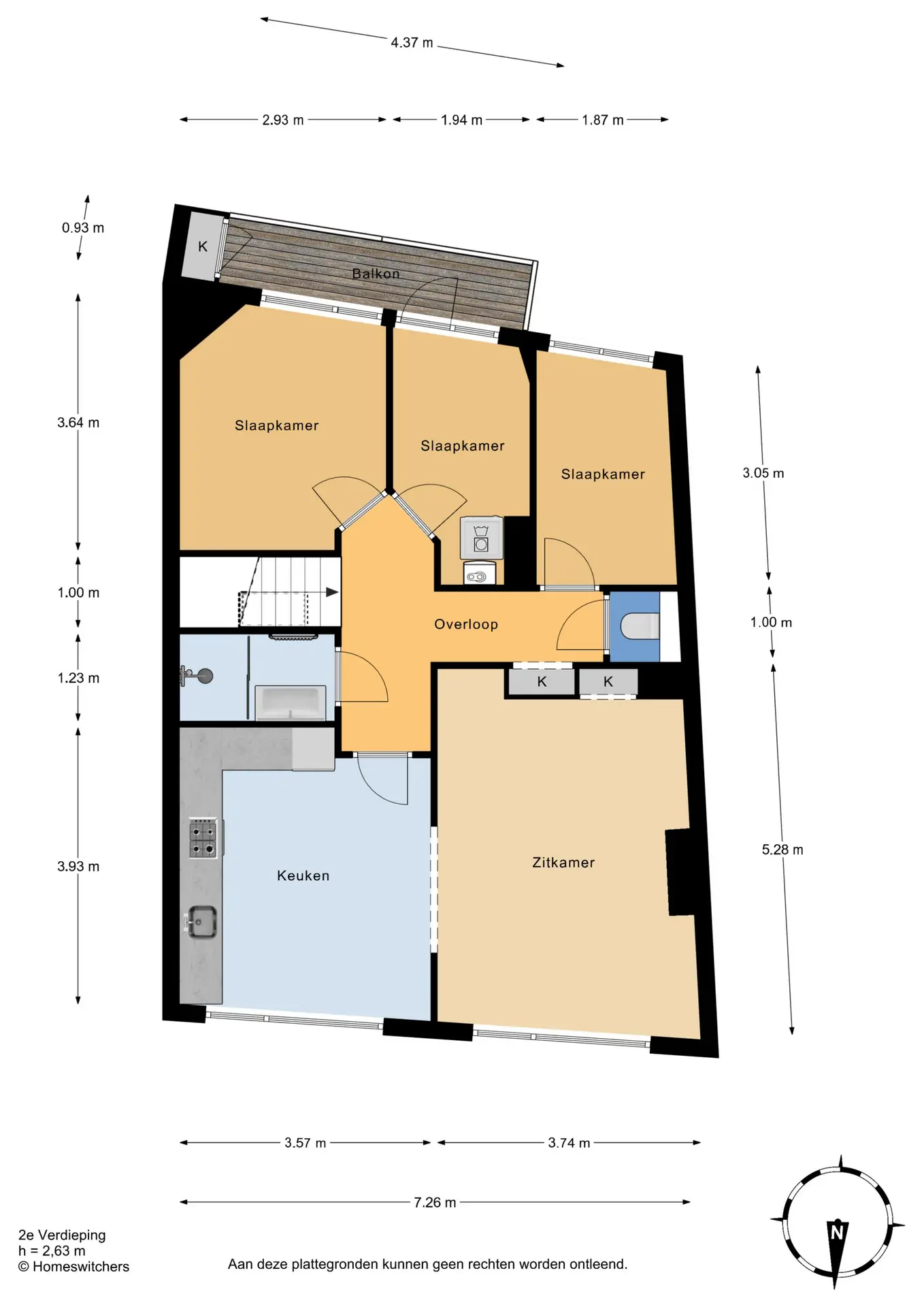 De woning is gemeten met gebruikmaking van de Meetinstructie, gebaseerd op de normen zoals vastgelegd in NEN 2580. Deze instructie is bedoeld om op een eenduidige manier de gebruiksoppervlakte te bepalen. Verschillen in meetuitkomsten zijn echter niet volledig uit te sluiten, bijvoorbeeld door interpretatieverschillen, afrondingen of beperkingen bij het uitvoeren van de meting. Hoewel de woning zorgvuldig is opgemeten, wordt noch door Van Oosterom & Verhagen Makelaars, noch door de verkoper enige aansprakelijkheid aanvaard voor afwijkingen in de opgegeven maten. De koper wordt in de gelegenheid gesteld de opgegeven maten te (laten) controleren.