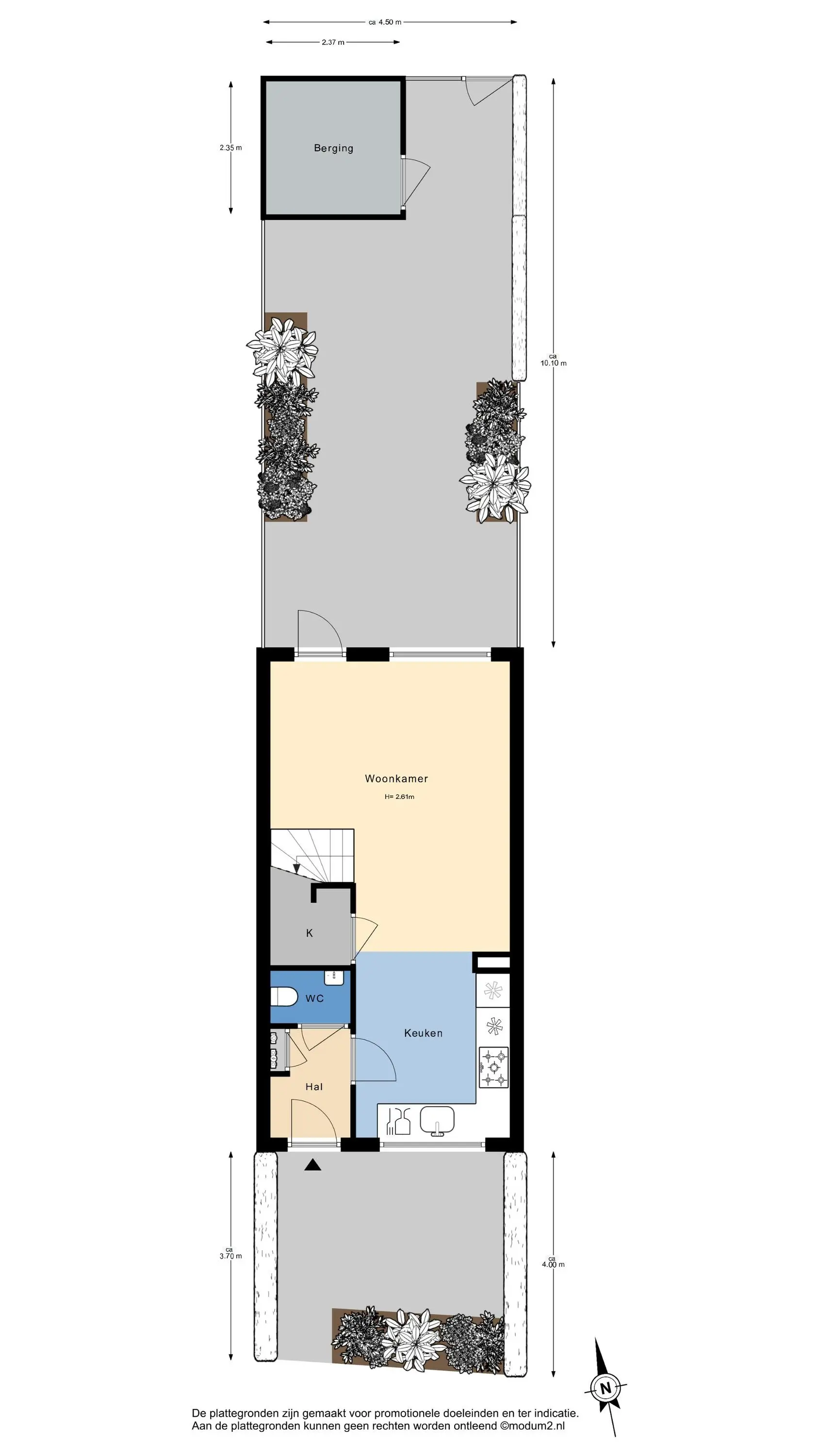 - Tuin is ca. 10 meter diep en gelegen op het noordoosten. Hier geniet je vanaf het einde van de ochtend tot aan het einde van de middag van de zon.