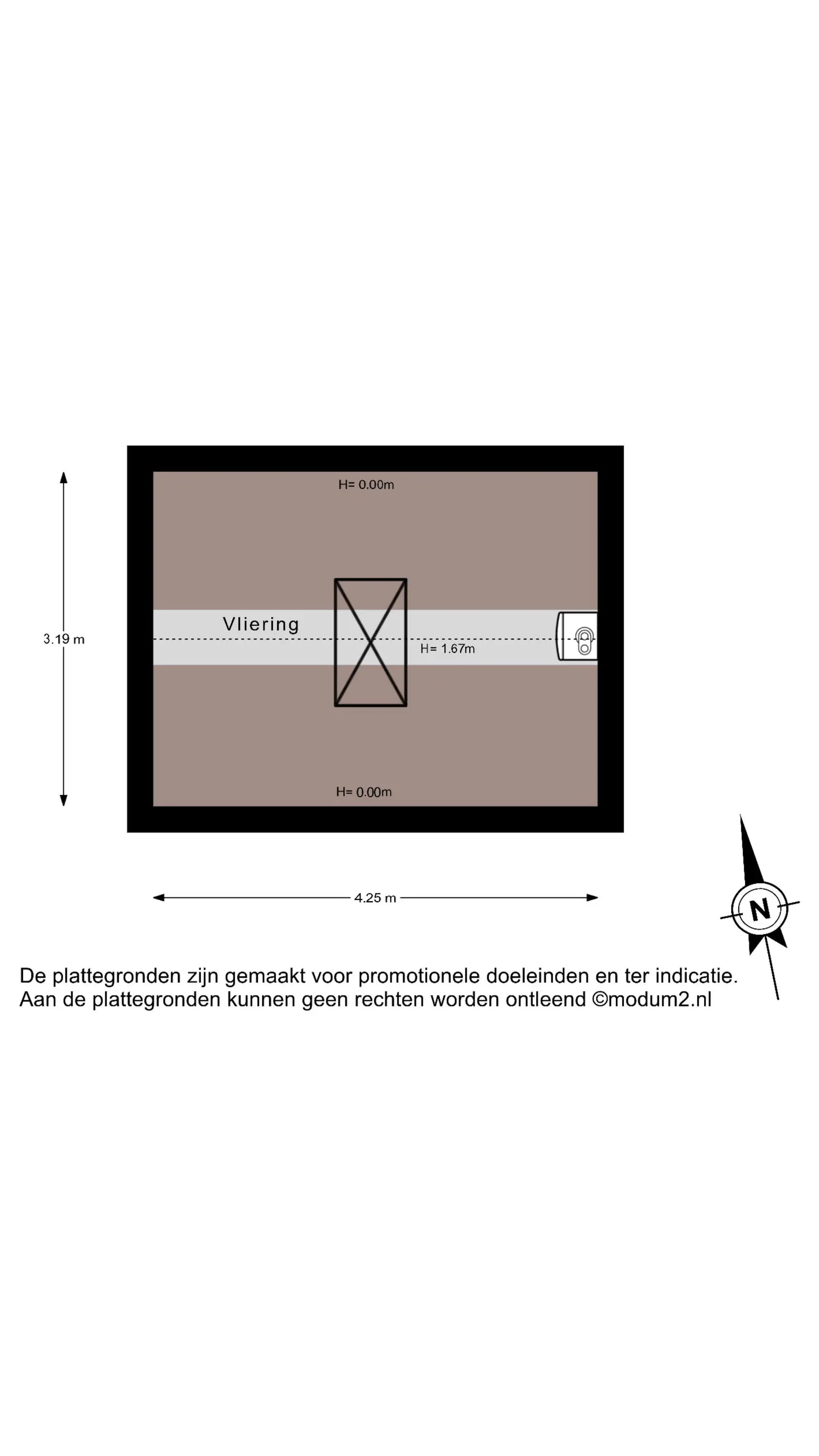 Vliering: ruime vliering welke bereikbaar is middels een vlizotrap.