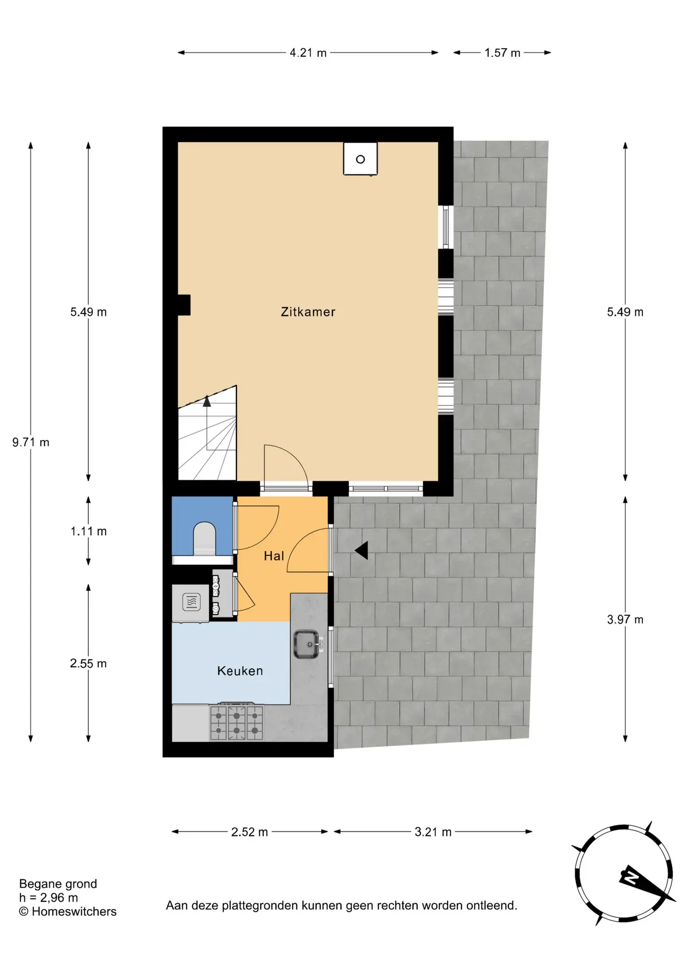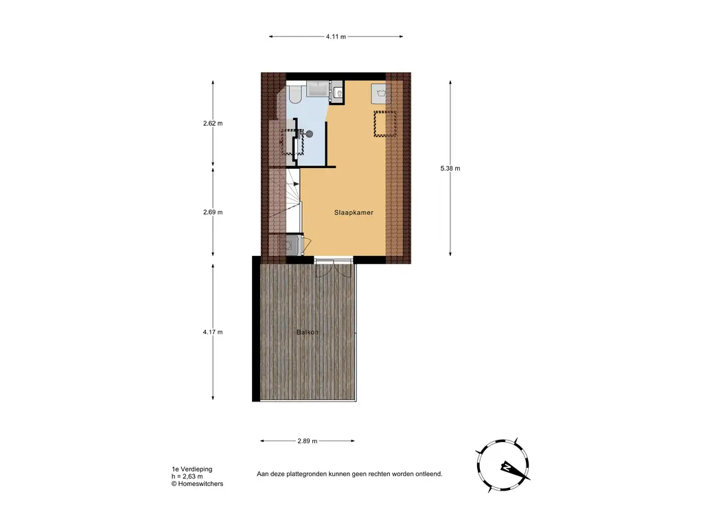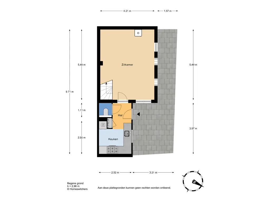 "Bovenstaande informatie is door ons met de hoogst nodige zorgvuldigheid samengesteld. Door ons wordt echter geen enkele aansprakelijkheid aanvaard voor enige onvolledigheid, onjuistheid of anderszins, dan wel de gevolgen daarvan. Alle opgegeven maten en oppervlakten zijn indicatief. De woning is gemeten met gebruikmaking van de Meetinstructie, die is gebaseerd op de normen zoals vastgelegd in NEN 2580. De Meetinstructie is bedoeld om een meer eenduidige manier van meten toe te passen voor het geven van een indicatie van gebruiksoppervlakte. De Meetinstructie sluit verschillen in meetuitkomsten niet volledig uit, door bijvoorbeeld interpretatieverschillen, afrondingen of beperkingen bij het uitvoeren van de meting. Hoewel wij de woning zorgvuldig hebben opgemeten, wordt noch door ons kantoor, noch door de verkoper enige aansprakelijkheid aanvaard voor afwijkingen in de opgegeven maten. Koper wordt in de gelegenheid gesteld om de opgegeven maten te (laten) controleren”.