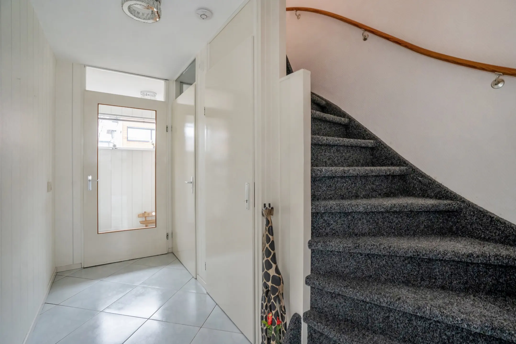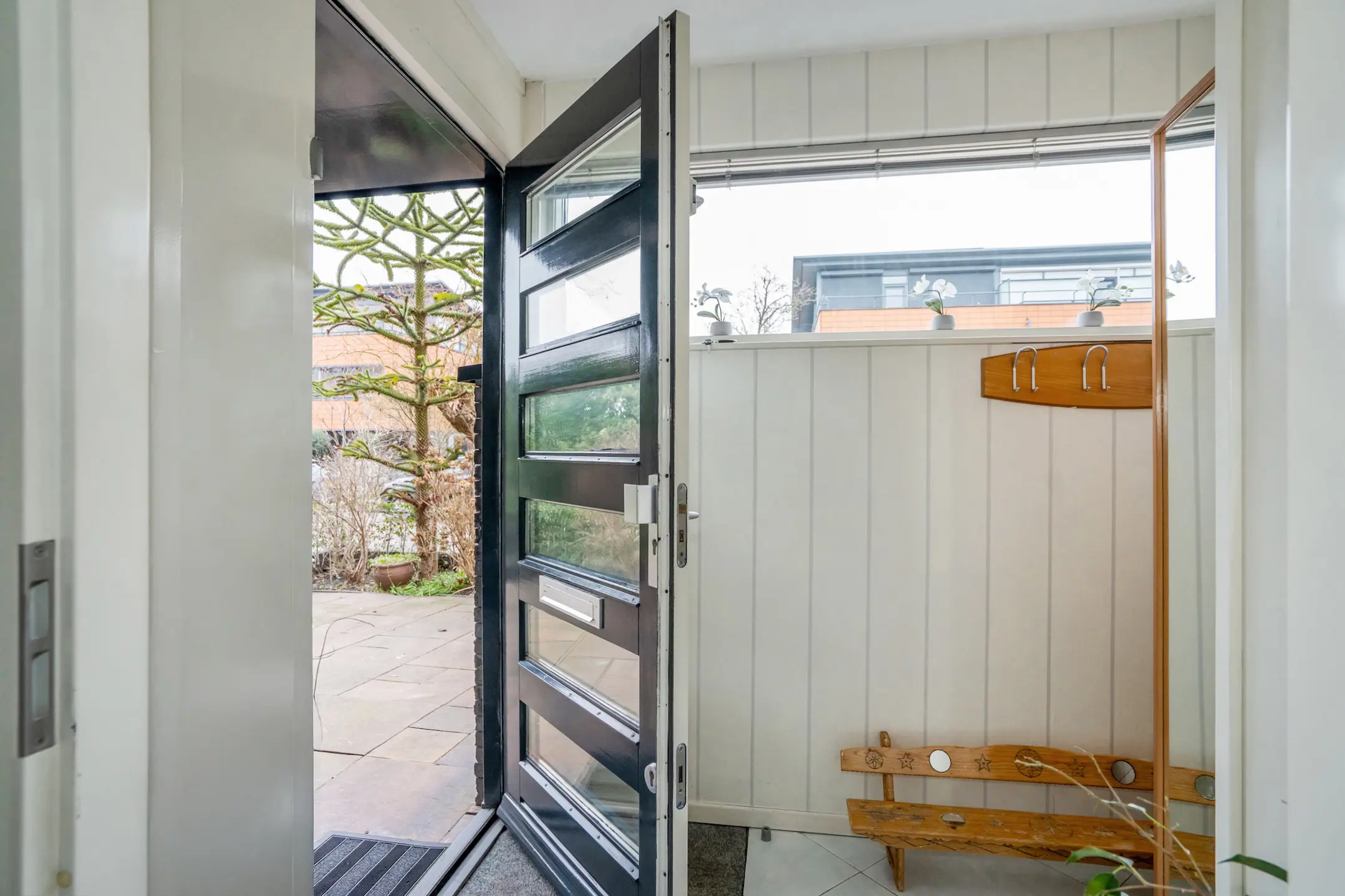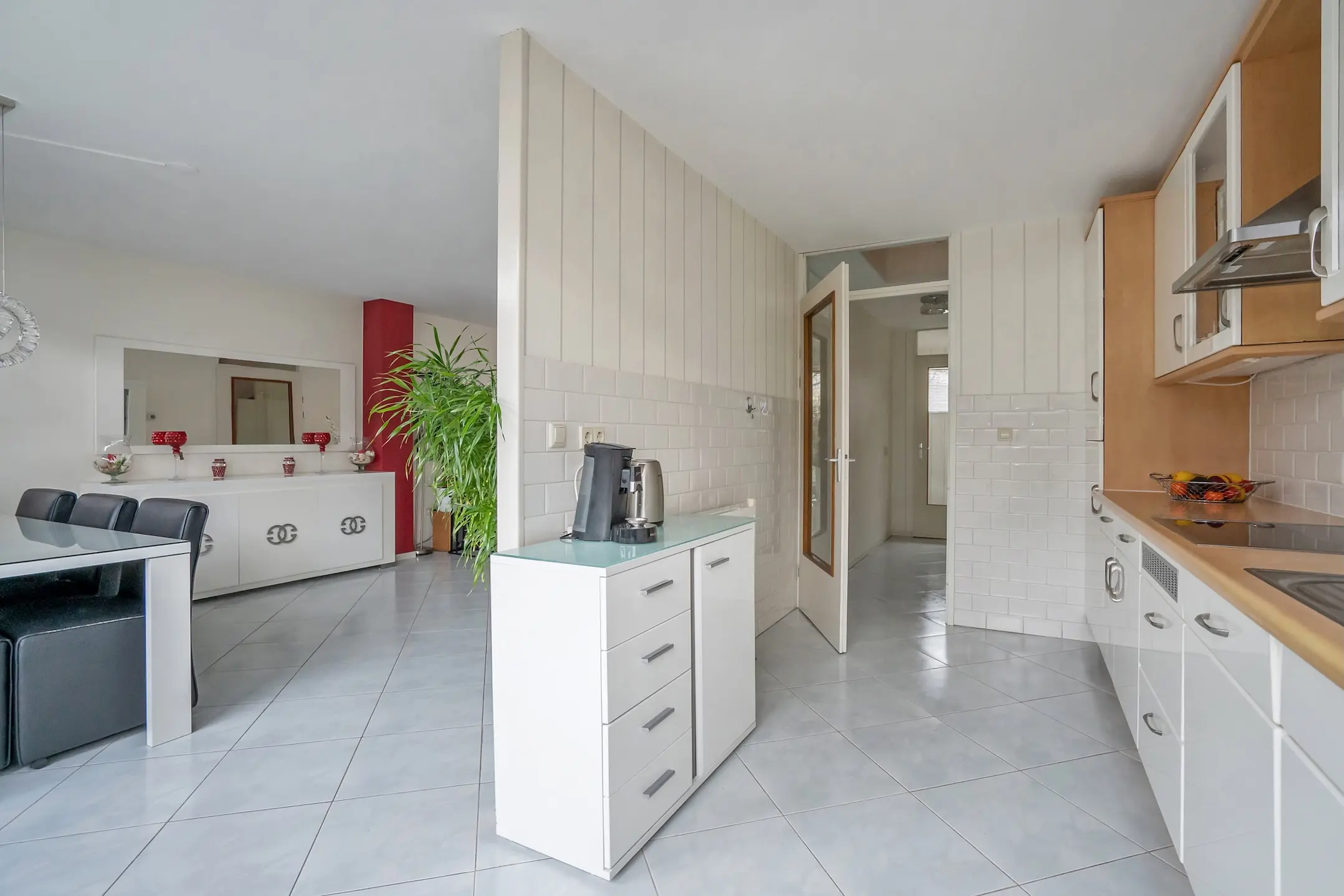 Via de voortuin met eigen oprit bereikt u de entree van de woning. De ruime en lichte hal is voorzien van een moderne meterkast (glasvezelvoorbereiding) een nette toiletruimte en een trapkast. De royale woonkamer met open keuken is heerlijk licht en biedt toegang tot de achtertuin. De ruime keuken is uitgerust met diverse inbouwapparatuur, waaronder een inductie kookplaat, afzuigkap, koel- en vrieskast, vaatwasser en combi oven/magnetron. De zonnige achtertuin beschikt over een houten schuur met elektra en is bereikbaar via een praktische achterom.