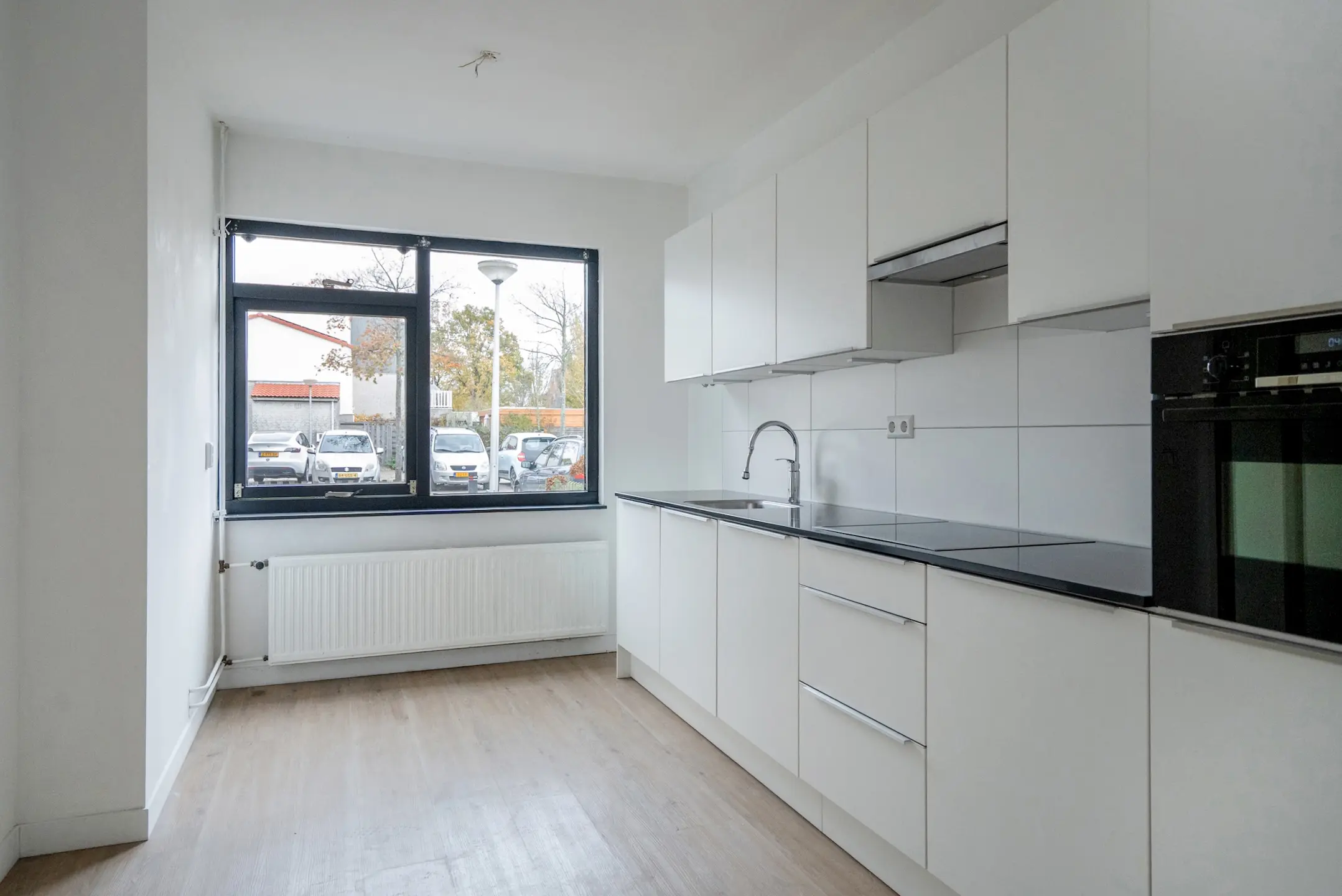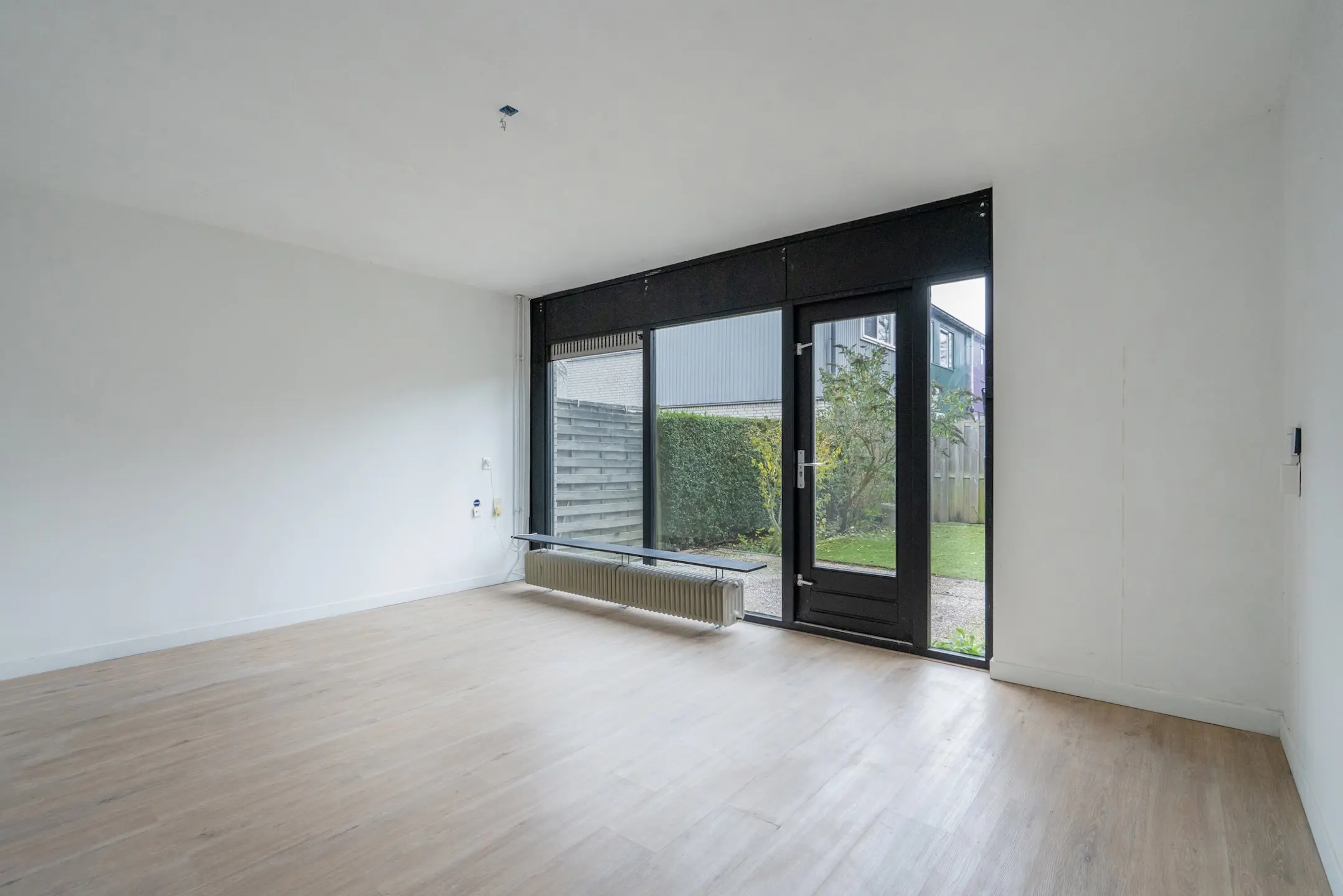 Indeling: voortuin met berging, entree woning, hal met meterkast (8 groepen), toilet met fontein. Lichte woon-/eetkamer met doorloop naar de achtertuin. Voorgelegen moderne keuken met diverse inbouwapparatuur.