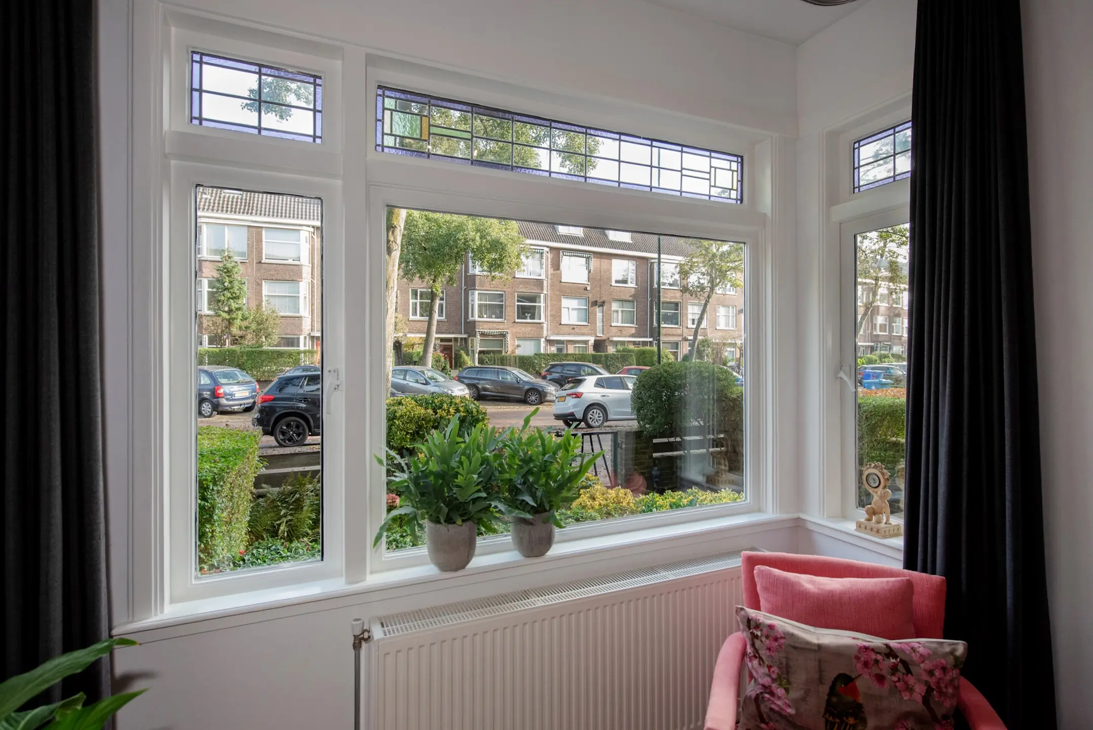 Geheel voorzien van dubbele beglazing in houten kozijnen;
