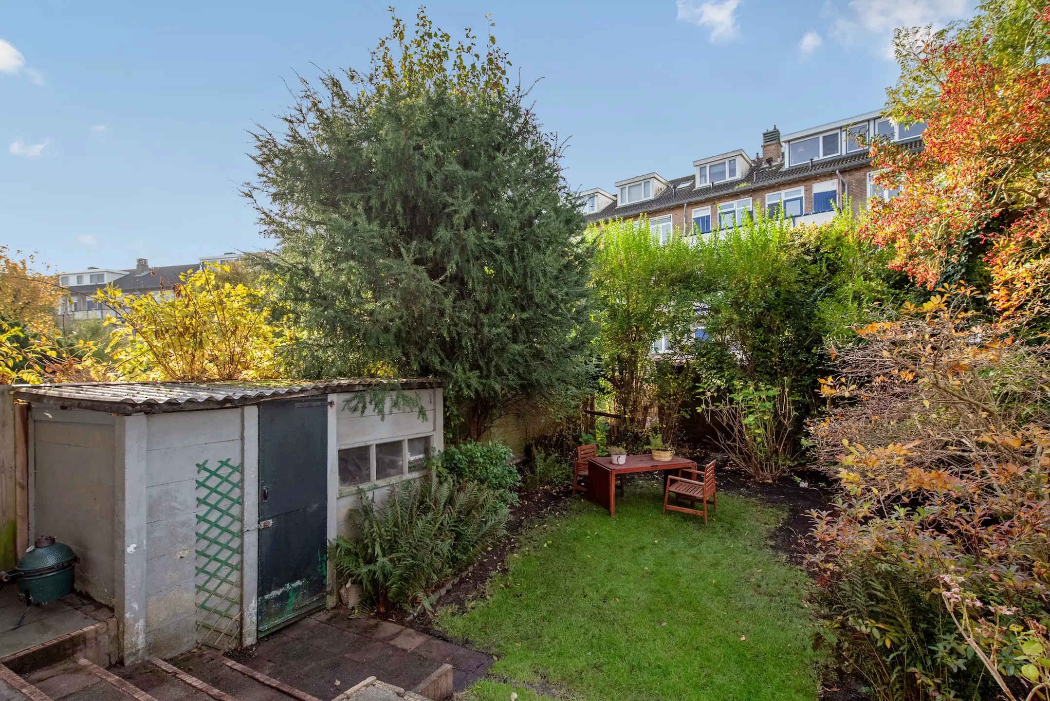 De zonnige achtertuin op het zuidwesten beschikt over een stenen berging en een elektrisch zonnescherm – de perfecte plek om te ontspannen en te genieten van de middag- en avondzon.