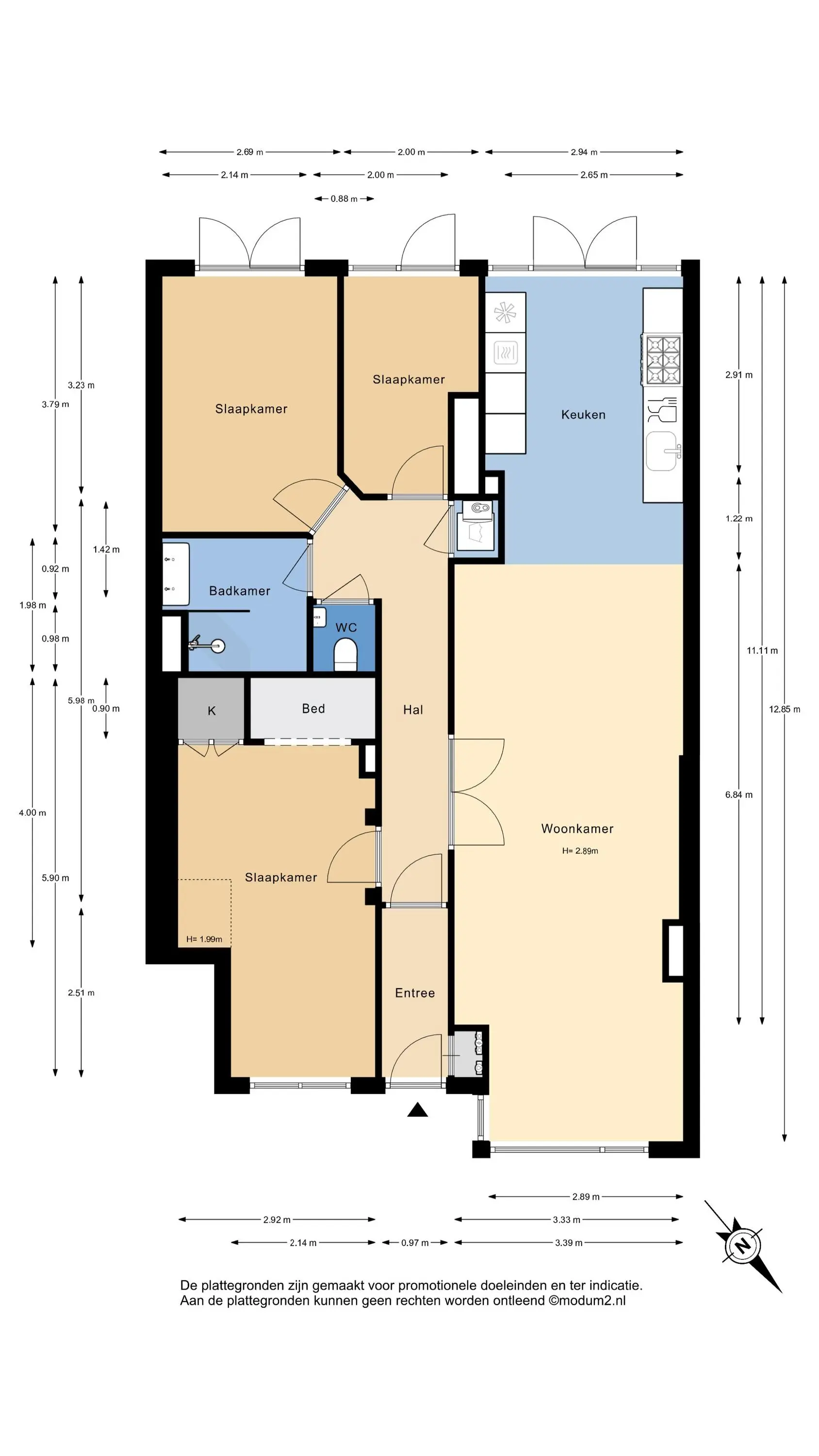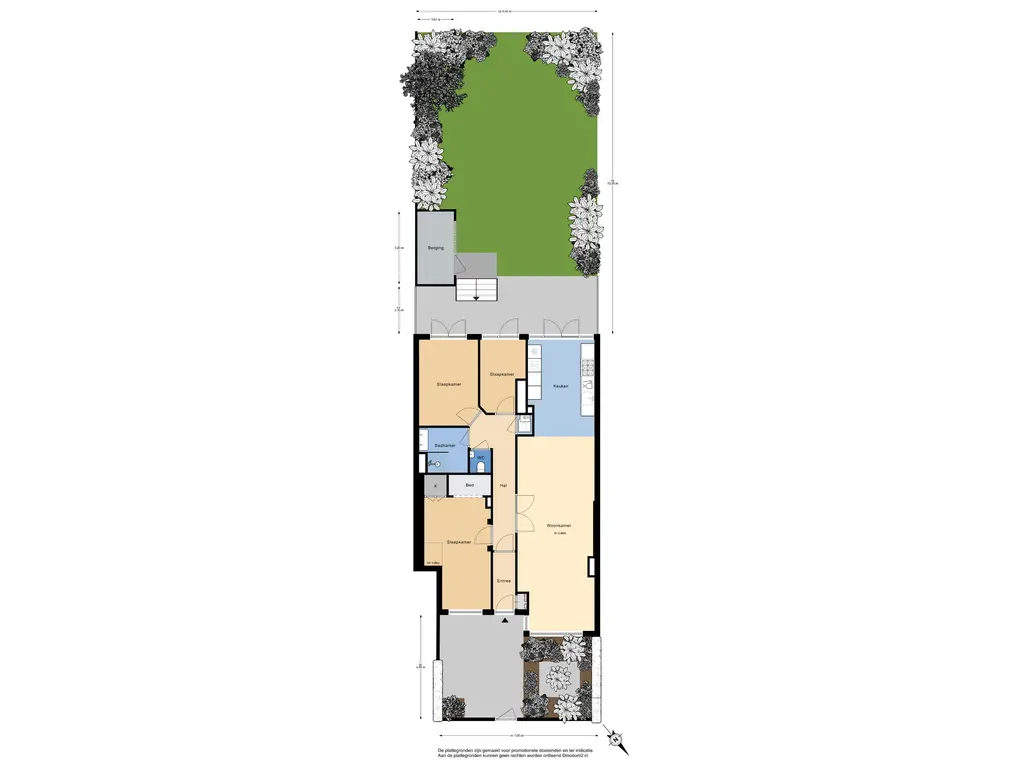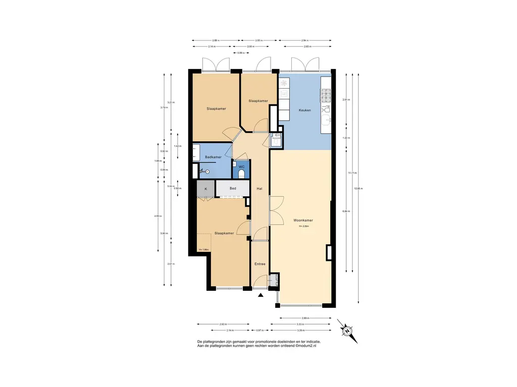 "Bovenstaande informatie is door ons met de hoogstnodige zorgvuldigheid samengesteld. Door ons wordt echter geen enkele aansprakelijkheid aanvaard voor enige onvolledigheid, onjuistheid of anderszins, dan wel de gevolgen daarvan. Alle opgegeven maten en oppervlakten zijn indicatief. De woning is gemeten met gebruikmaking van de Meetinstructie, die is gebaseerd op de normen zoals vastgelegd in NEN 2580. De Meetinstructie is bedoeld om een meer eenduidige manier van meten toe te passen voor het geven van een indicatie van gebruiksoppervlakte. De Meetinstructie sluit verschillen in meetuitkomsten niet volledig uit, door bijvoorbeeld interpretatieverschillen, afrondingen of beperkingen bij het uitvoeren van de meting. Hoewel wij de woning zorgvuldig hebben opgemeten, wordt noch door ons kantoor, noch door de verkoper enige aansprakelijkheid aanvaard voor afwijkingen in de opgegeven maten. Koper wordt in de gelegenheid gesteld om de opgegeven maten te (laten) controleren”.