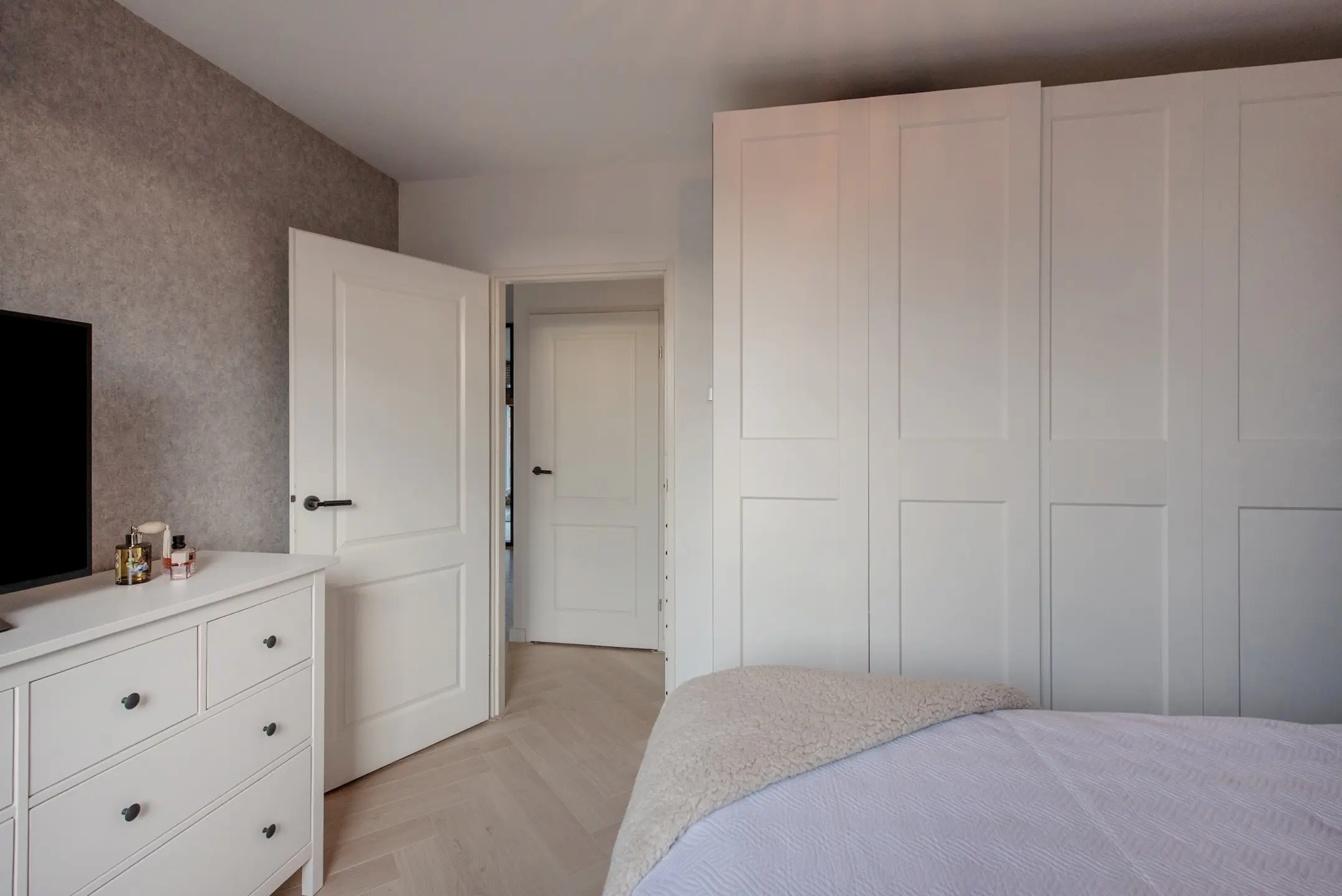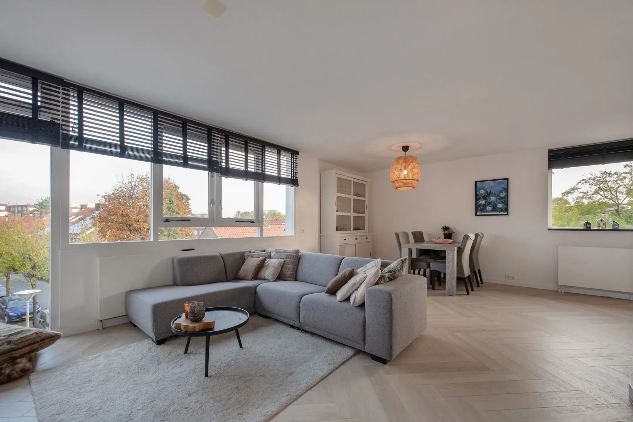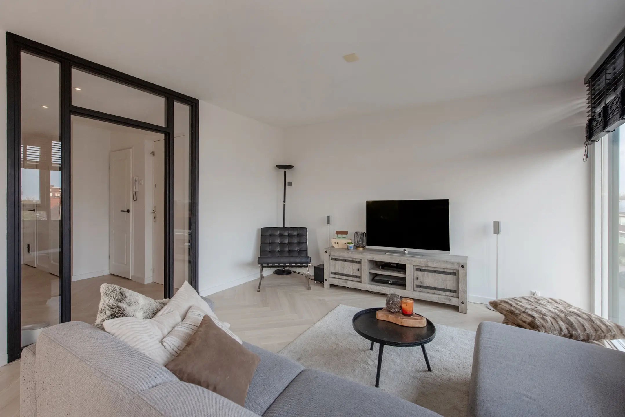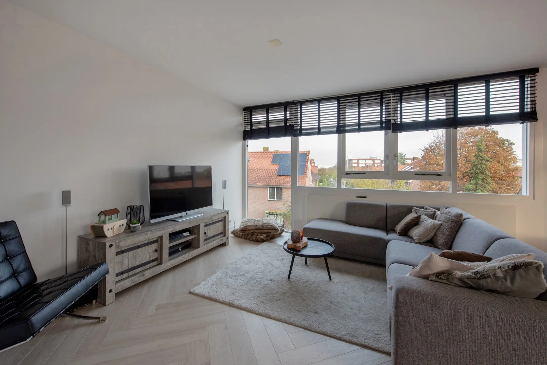 Indeling: afgesloten entree, trap naar de 2e verdieping, entree appartement, hal, vernieuwde meterkast, modern vrij hangend toilet met fontein, vaste kast met opstelplaats voor wasmachine en droger, schitterende door zijraam lichte woon-/eetkamer met vrij uitzicht richting de Prinses Beatrixstraat, moderne open keuken voorzien van een stenen aanrechtblad, Franke kokendwaterkraan en diverse inbouwapparatuur w.o. koelkast, vriezer, inductie kookplaat met geïntegreerd afzuigsysteem en vaatwasser, ruime achtergelegen hoofdslaapkamer met airconditioning (koeling/warmte) toegang tot het zonnig gelegen balkon (ZO), moderne badkamer (geheel betegeld) met design radiator, wastafelmeubel en inloop douche met drain en rainshower, 2e schitterend gelegen slaapkamer met wederom toegang tot het zonnige balkon, een aparte vaste kast met mechanische ventilatie en CV combi ketel. Het gehele appartement is voorzien van een mooie visgraat laminaatvloer.
