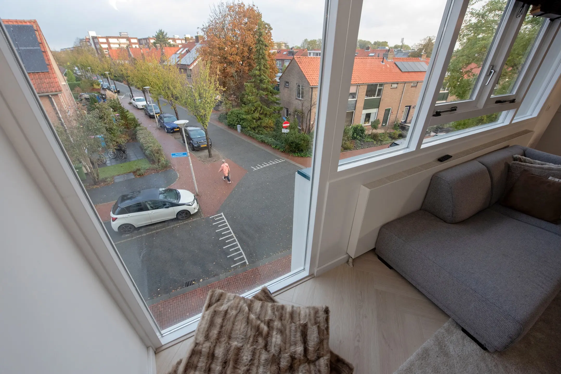 Dit appartement is gelegen op de hoek van een goed onderhouden, kleinschalig appartementencomplex en ligt op loopafstand van de Dorpsstraat, met haar gezellige restaurants, het winkelcentrum de Parade, openbaar vervoer en scholen. Het complex heeft een afgesloten hoofdentree met brievenbussen en bellentableau en is via het trappenhuis te bereiken.