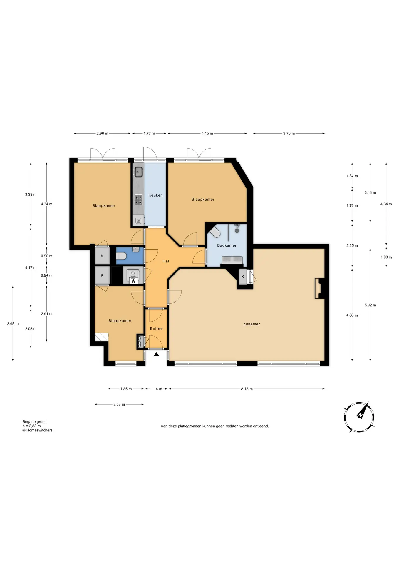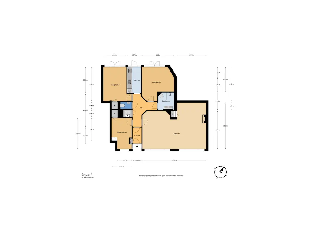 Bovenstaande informatie is door ons met de hoogst nodige zorgvuldigheid samengesteld. Door ons wordt echter geen enkele aansprakelijkheid aanvaard voor enige onvolledigheid, onjuistheid of anderszins, dan wel de gevolgen daarvan. Alle opgegeven maten en oppervlakten zijn indicatief. De woning is gemeten met gebruikmaking van de Meetinstructie, die is gebaseerd op de normen zoals vastgelegd in NEN 2580. De Meetinstructie is bedoeld om een meer eenduidige manier van meten