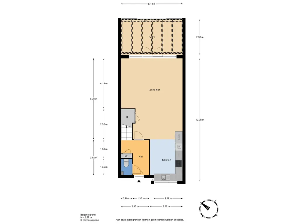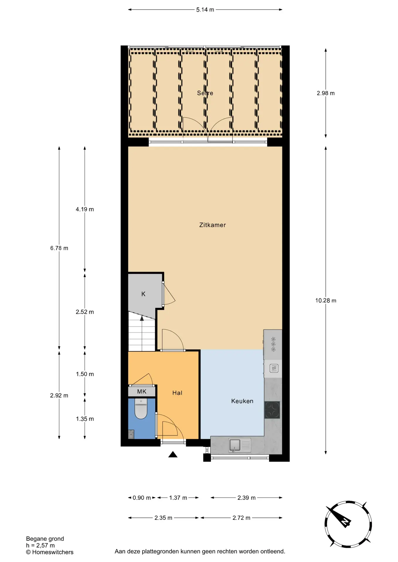 Bovenstaande informatie is door ons met de hoogst nodige zorgvuldigheid samengesteld. Door ons wordt echter geen enkele aansprakelijkheid aanvaard voor enige onvolledigheid, onjuistheid of anderszins, dan wel de gevolgen daarvan. Alle opgegeven maten en oppervlakten zijn indicatief. De woning is gemeten met gebruikmaking van de Meetinstructie, die is gebaseerd op de normen zoals vastgelegd in NEN 2580. De Meetinstructie is bedoeld om een meer eenduidige manier van meten toe te passen voor het geven van een indicatie van gebruiksoppervlakte. De Meetinstructie sluit verschillen in meetuitkomsten niet volledig uit, door bijvoorbeeld interpretatieverschillen, afrondingen of beperkingen bij het uitvoeren van de meting. Hoewel wij de woning zorgvuldig hebben opgemeten, wordt noch door ons kantoor, noch door de verkoper enige aansprakelijkheid aanvaard voor afwijkingen in de opgegeven maten. Koper wordt in de gelegenheid gesteld om de opgegeven maten te (laten) controleren.