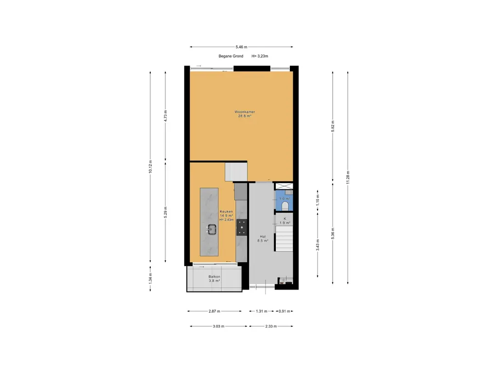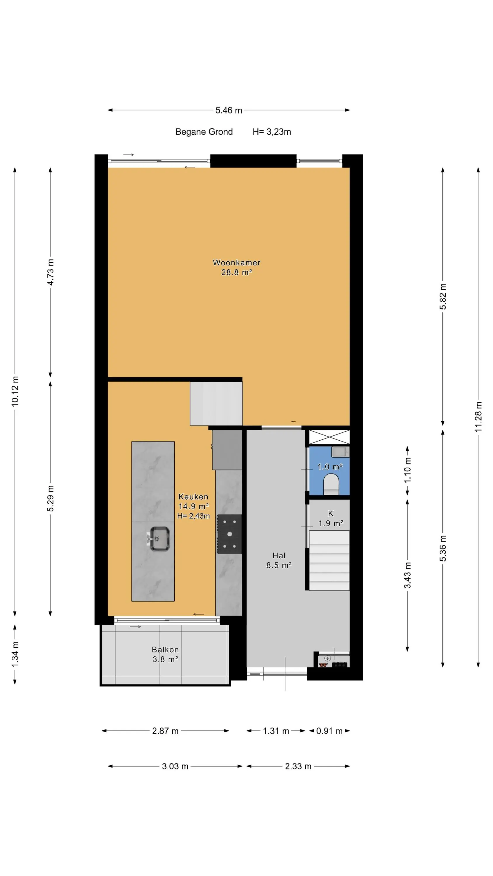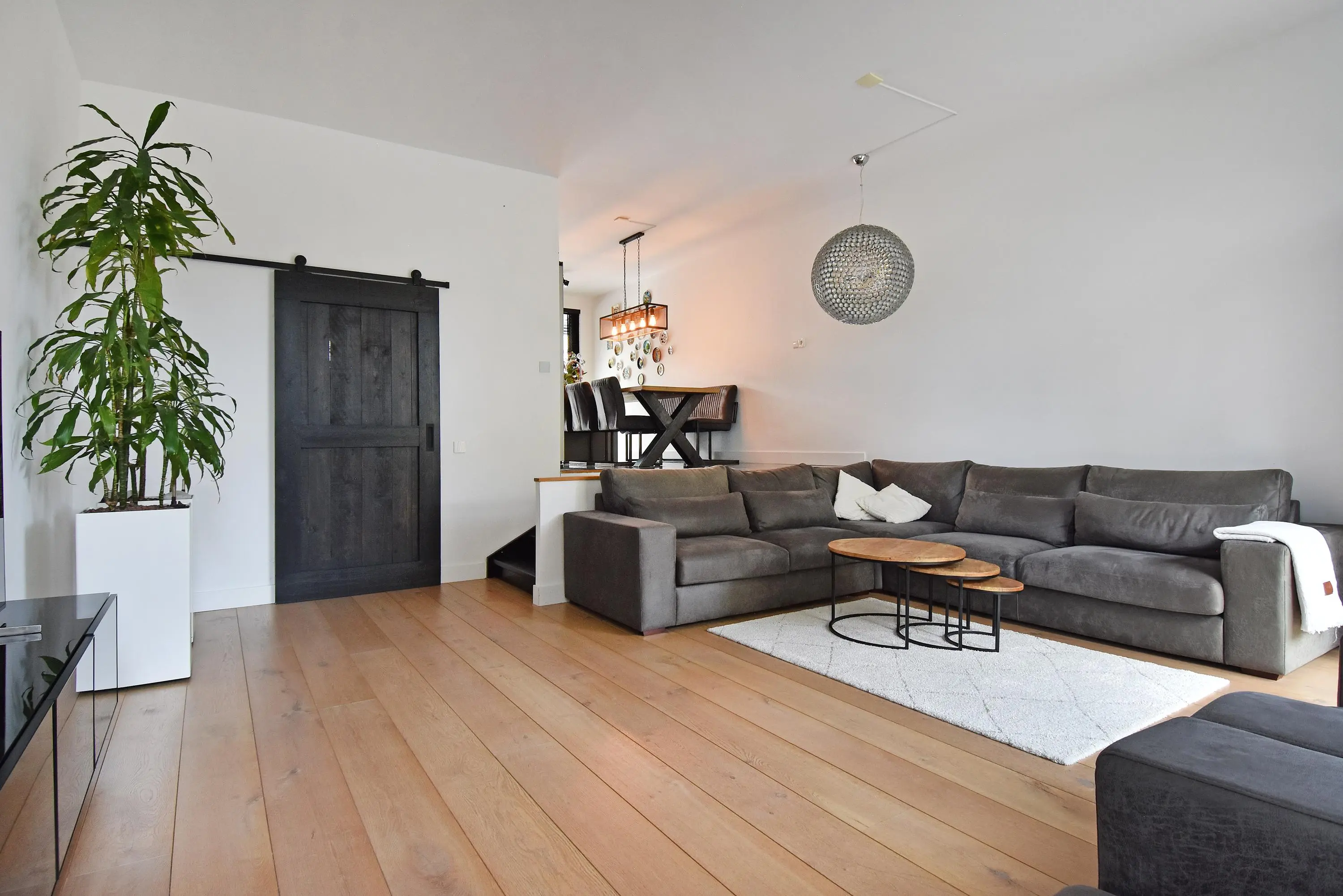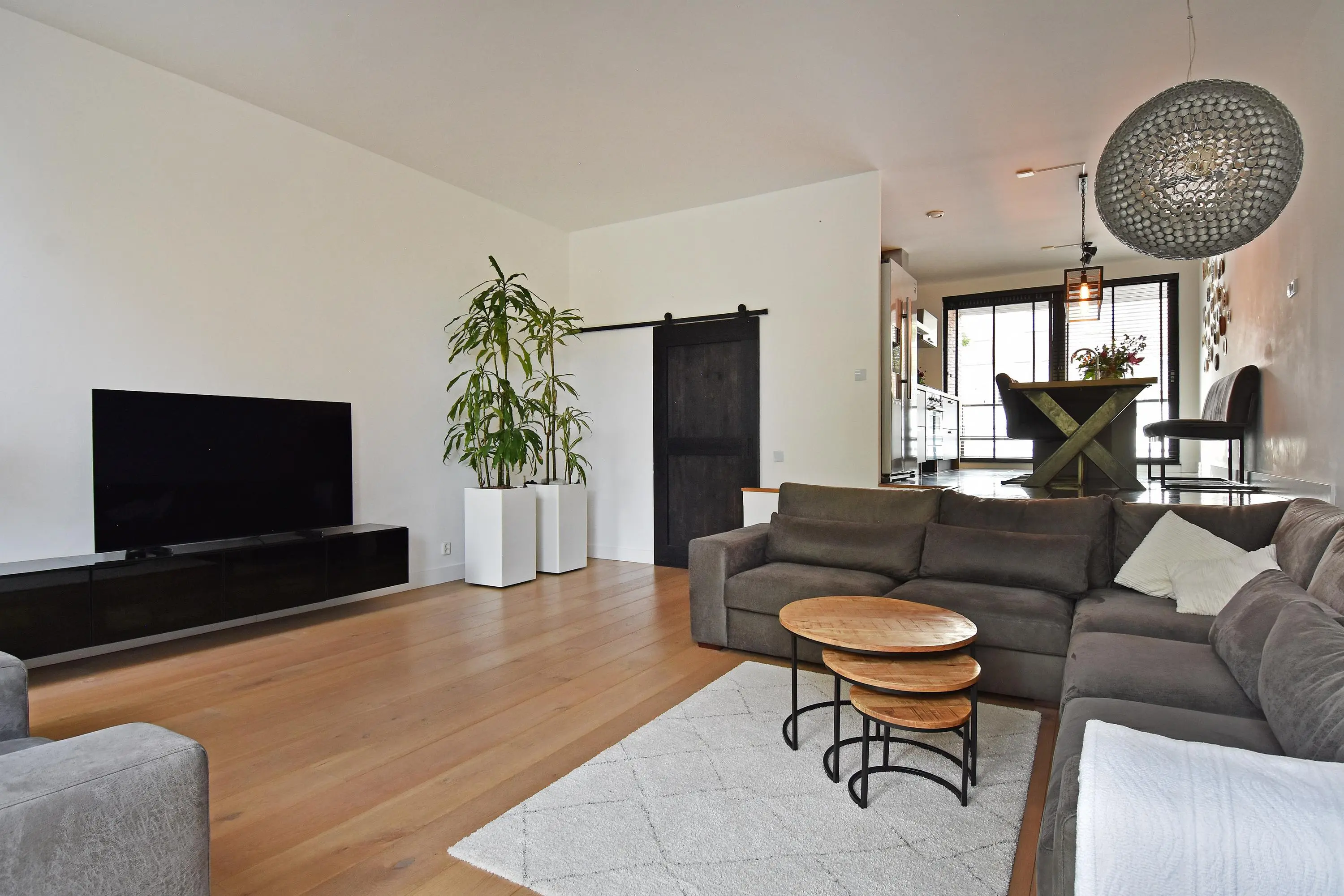 • Split-level woonkamer met moderne keuken en balkon op het zuidwesten