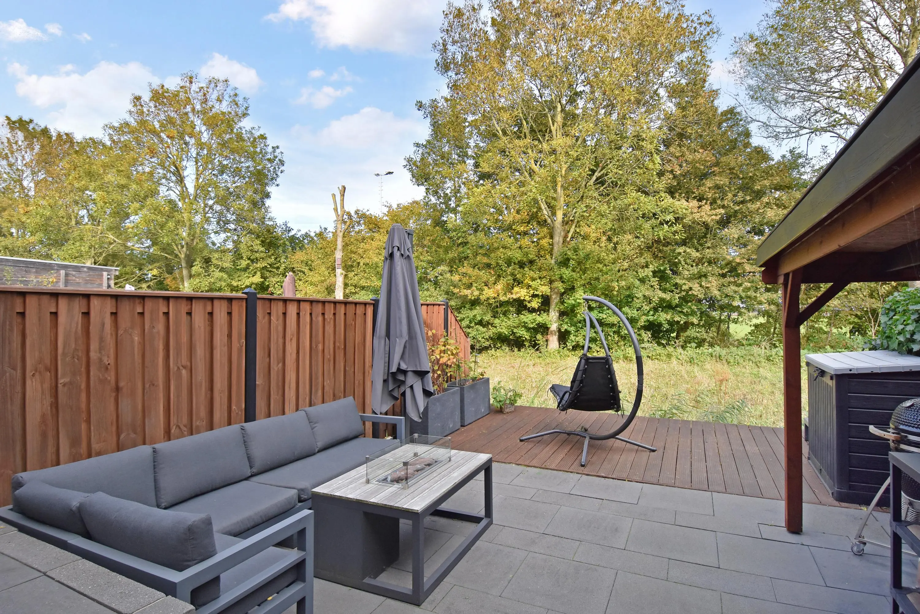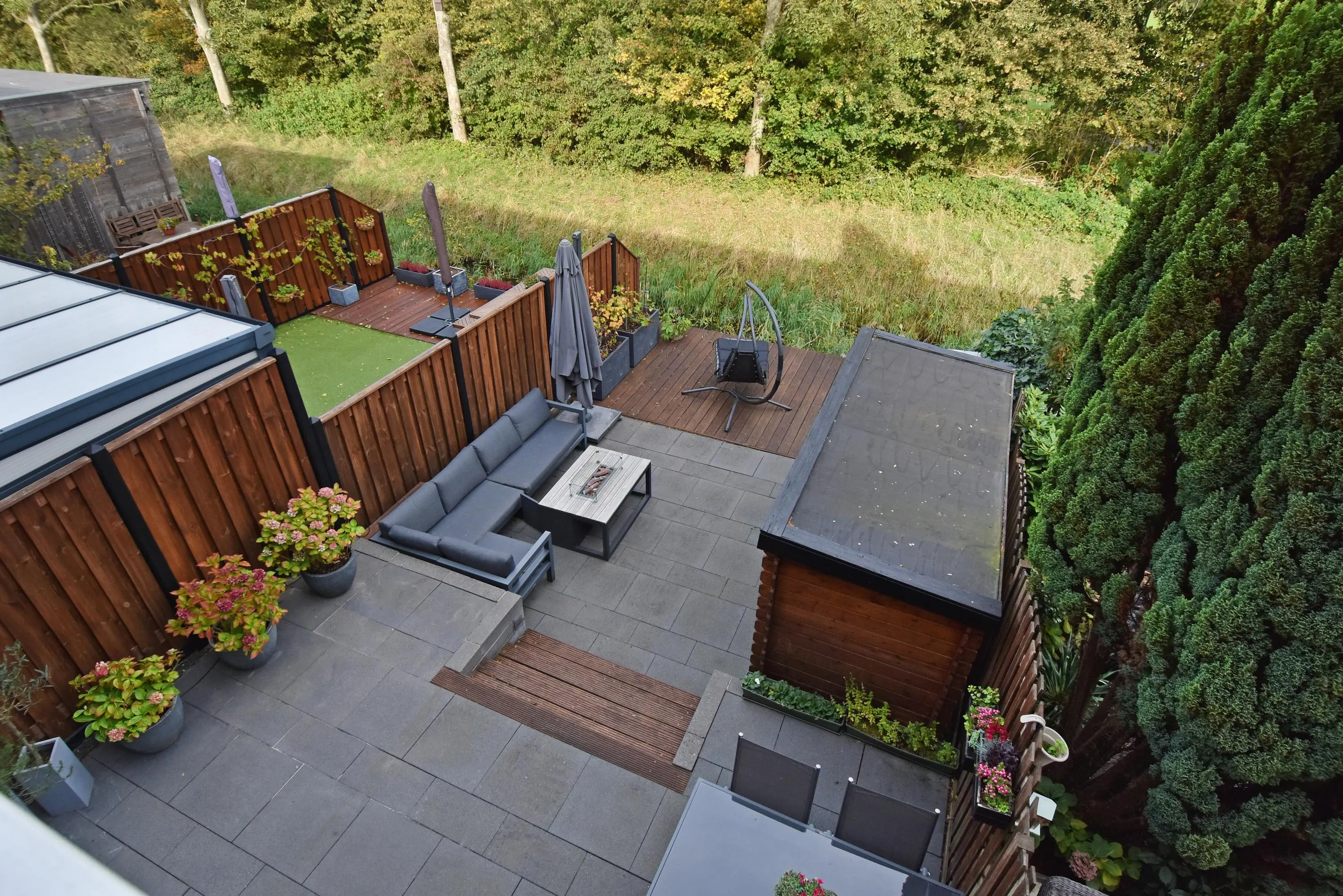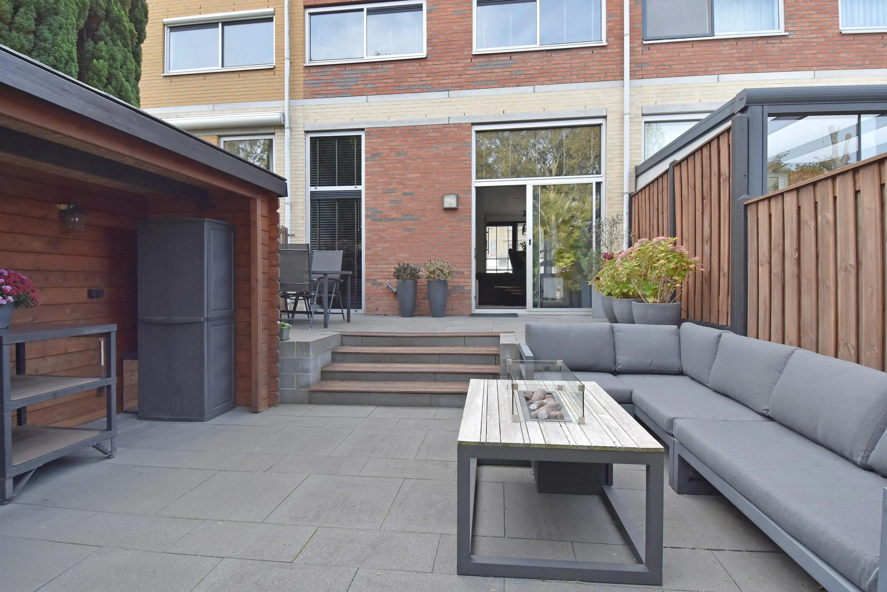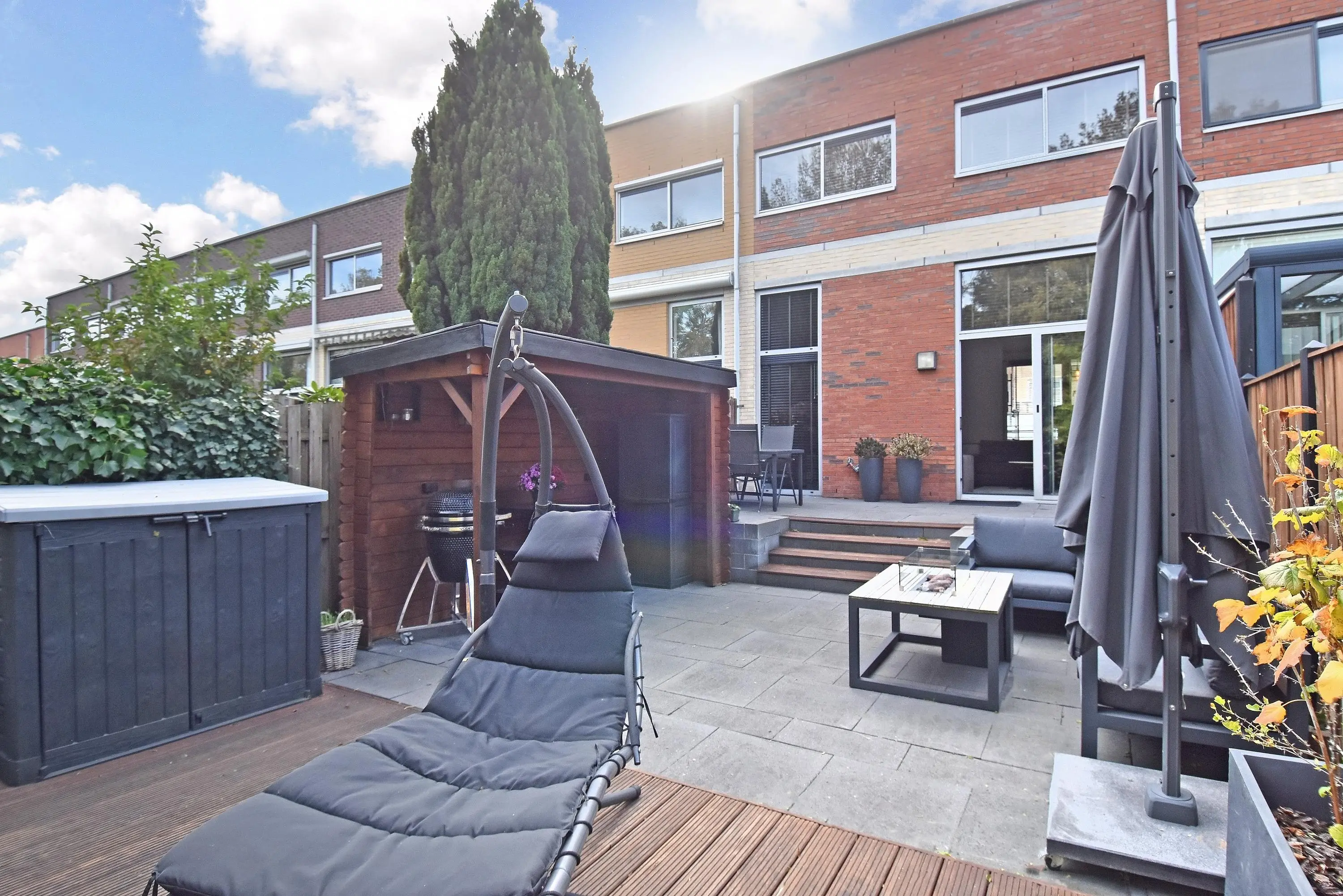 Een verdieping hoger komt u op de lichte overloop met daklicht. Hier vindt u een separaat tweede toilet en een praktische bergkast met de omvormer van de zonnepanelen, de aansluiting voor de wasmachine en de cv-ketel (Remeha Avanta, 2013). Aan de voorzijde liggen twee goed bemeten slaapkamers die uitkijken over de straat, terwijl in het midden de luxe badkamer is gesitueerd met ligbad, royale inloopdouche en een breed dubbel wastafelmeubel. De achterzijde van de woning wordt volledig ingenomen door de master bedroom, een bijzonder ruime kamer met airconditioning en uitzicht op het groen.