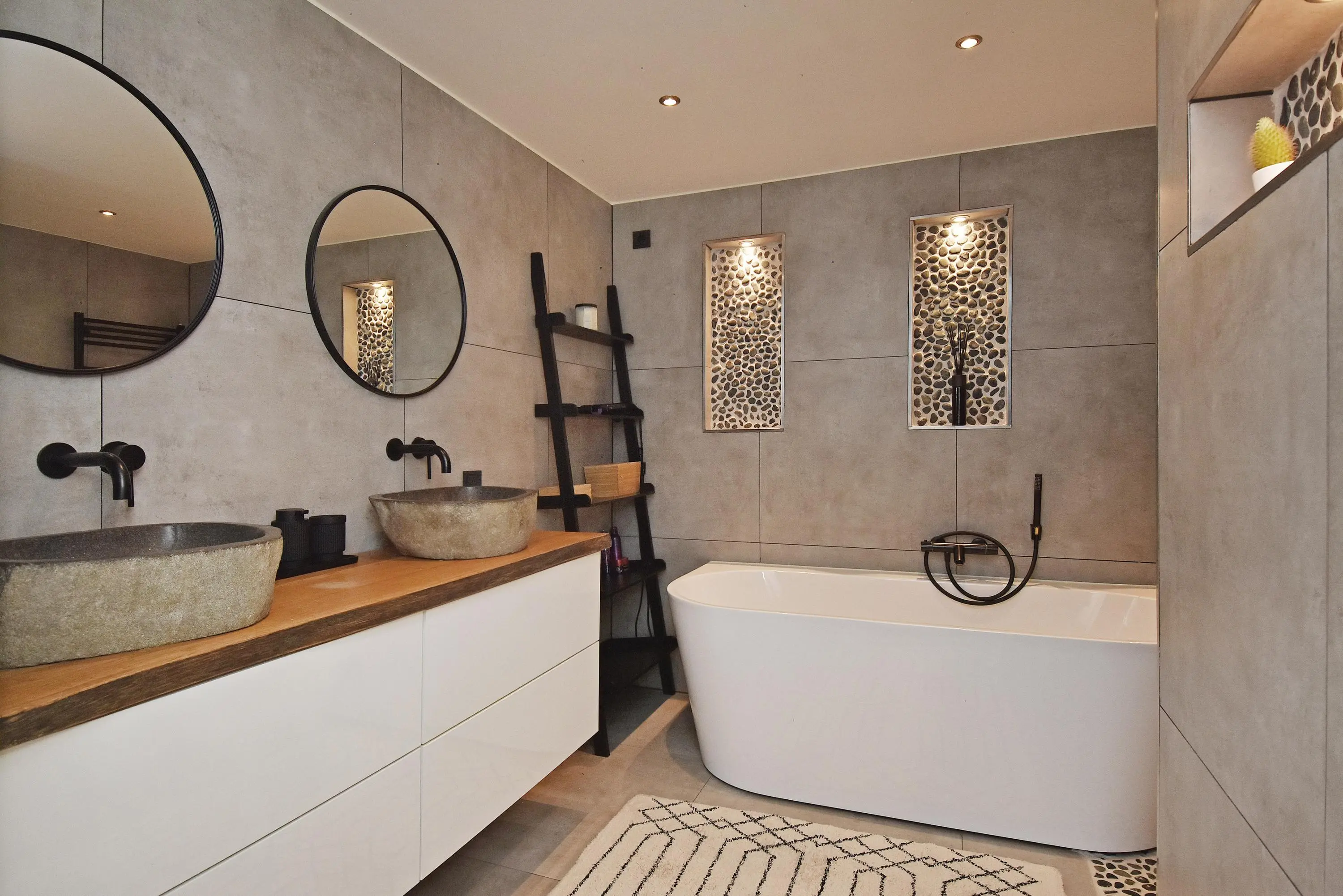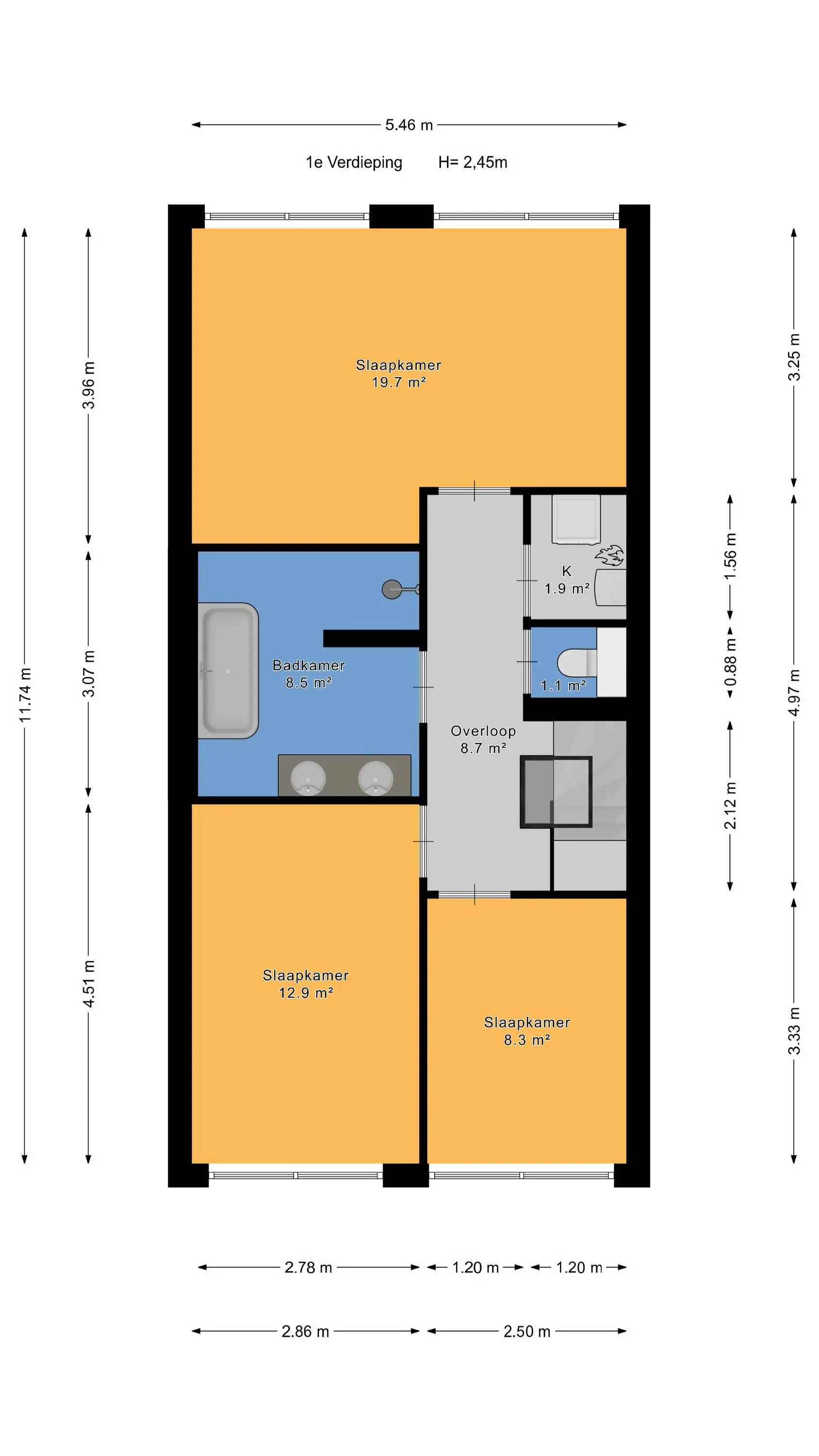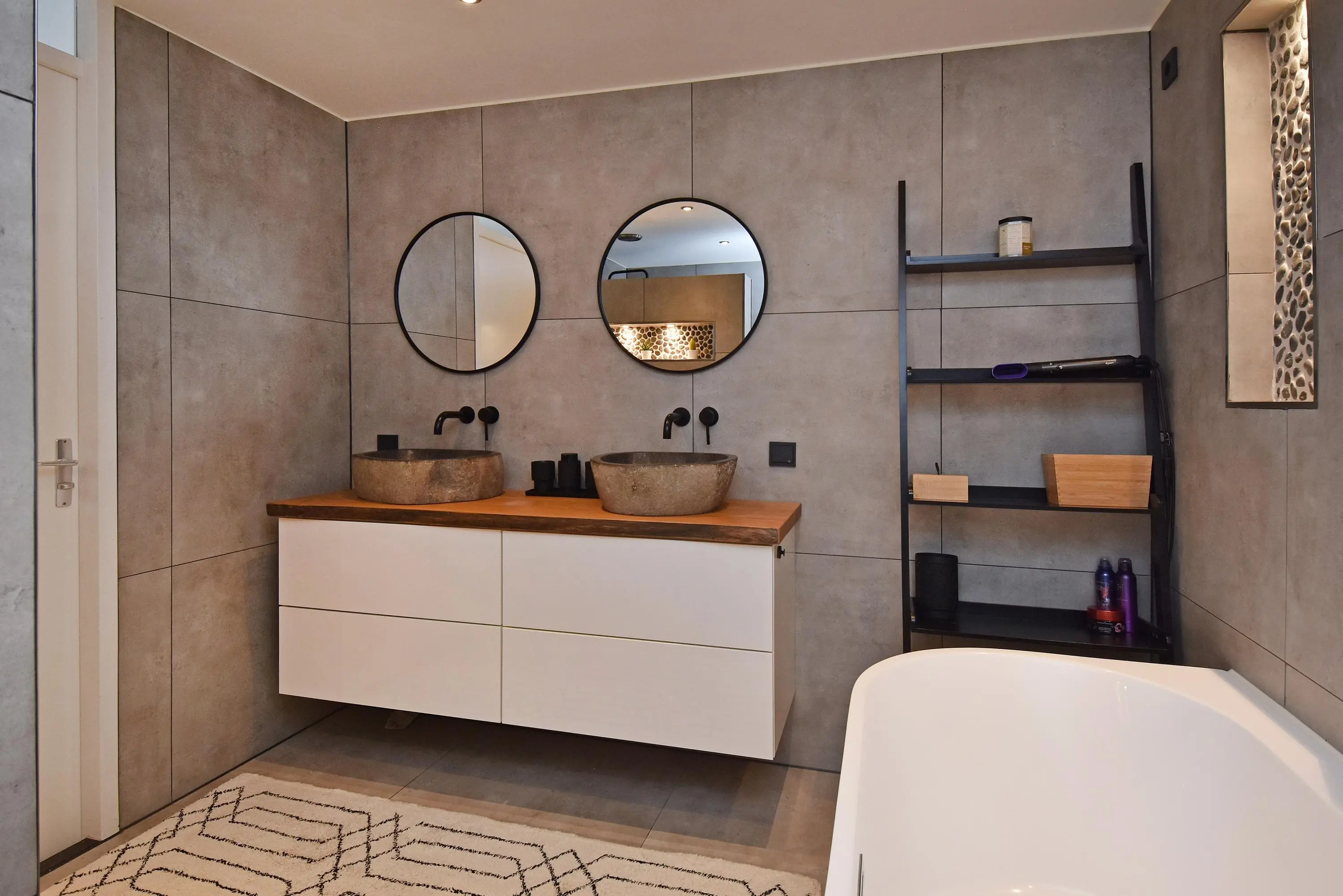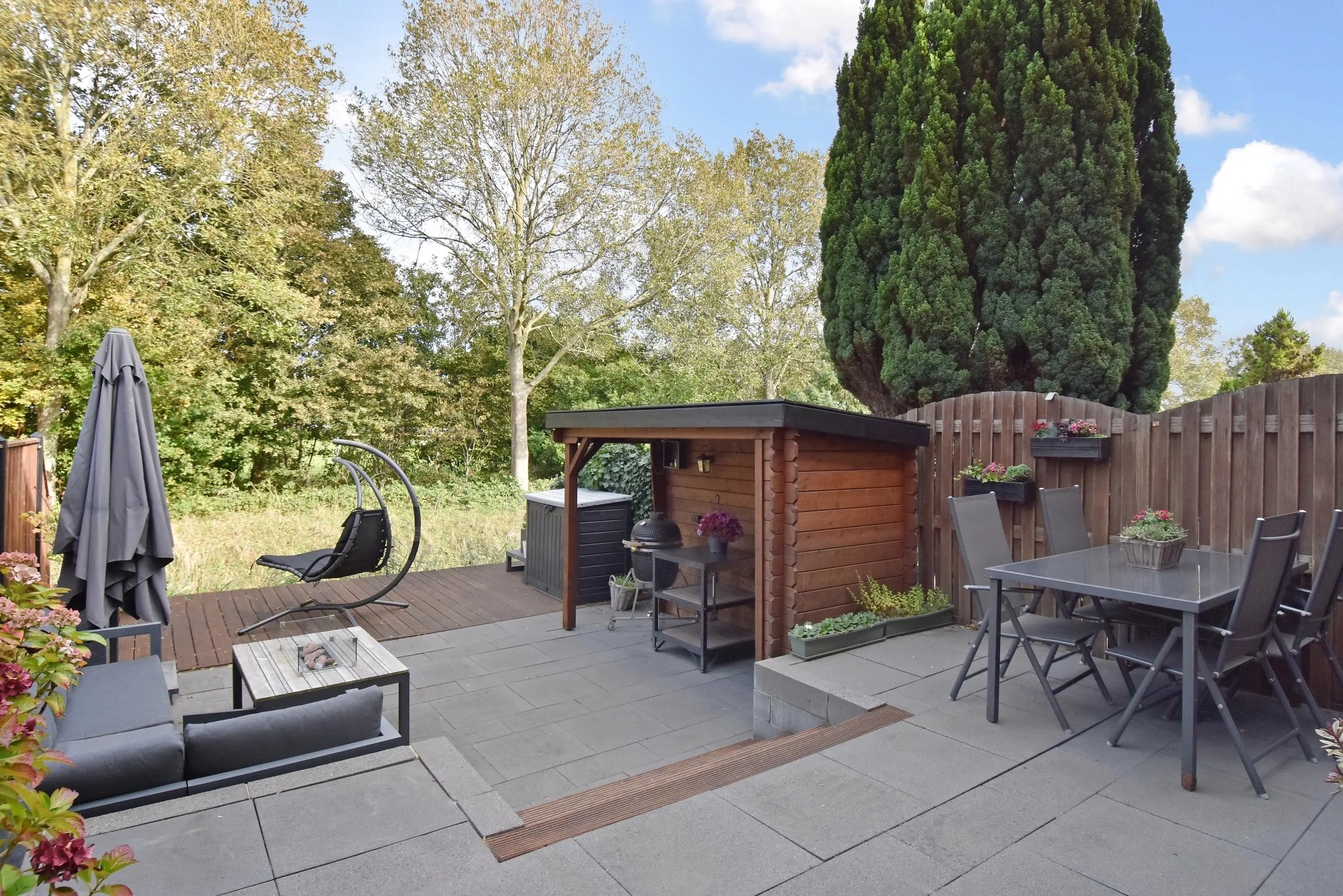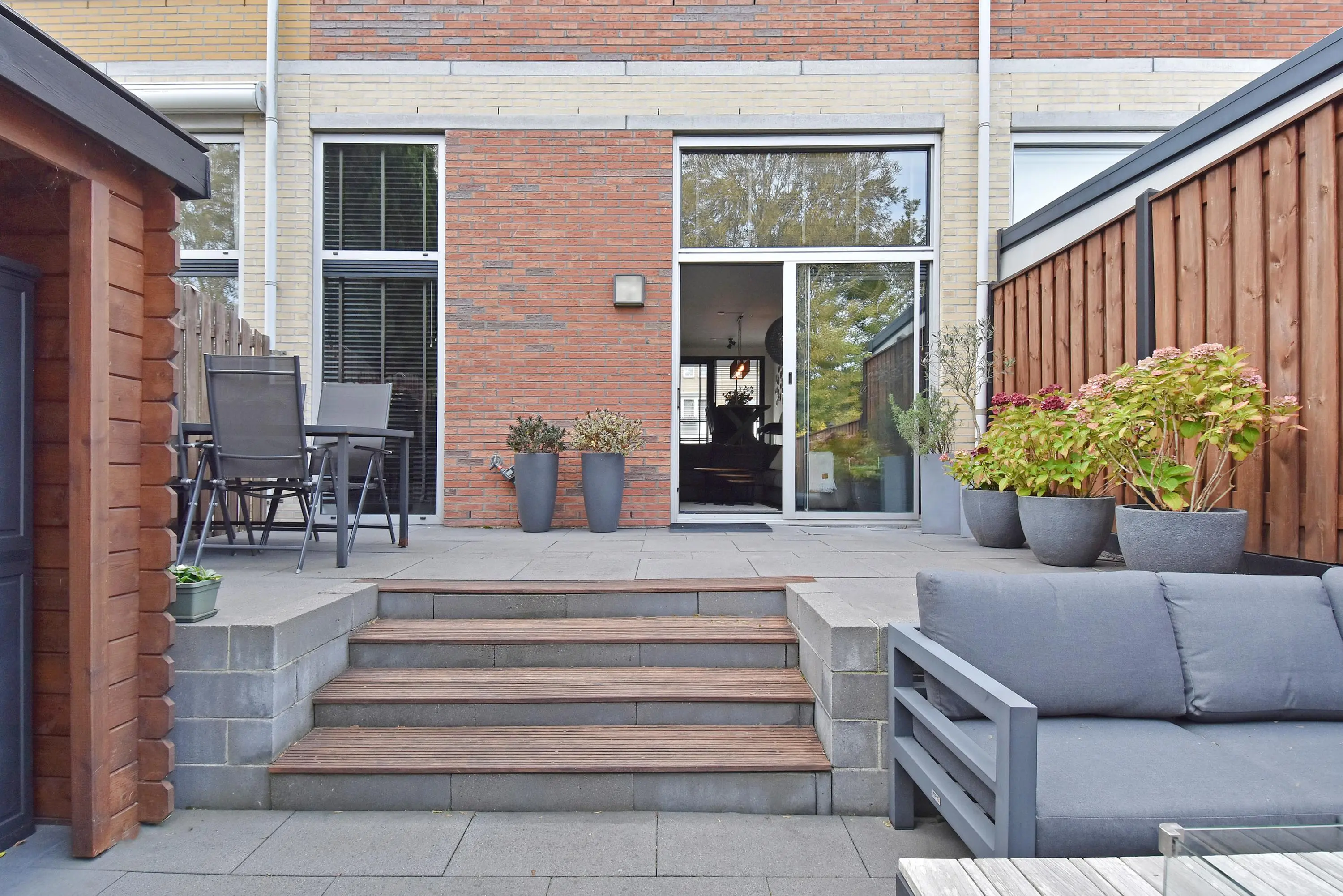 Een verdieping hoger komt u op de lichte overloop met daklicht. Hier vindt u een separaat tweede toilet en een praktische bergkast met de omvormer van de zonnepanelen, de aansluiting voor de wasmachine en de cv-ketel (Remeha Avanta, 2013). Aan de voorzijde liggen twee goed bemeten slaapkamers die uitkijken over de straat, terwijl in het midden de luxe badkamer is gesitueerd met ligbad, royale inloopdouche en een breed dubbel wastafelmeubel. De achterzijde van de woning wordt volledig ingenomen door de master bedroom, een bijzonder ruime kamer met airconditioning en uitzicht op het groen.