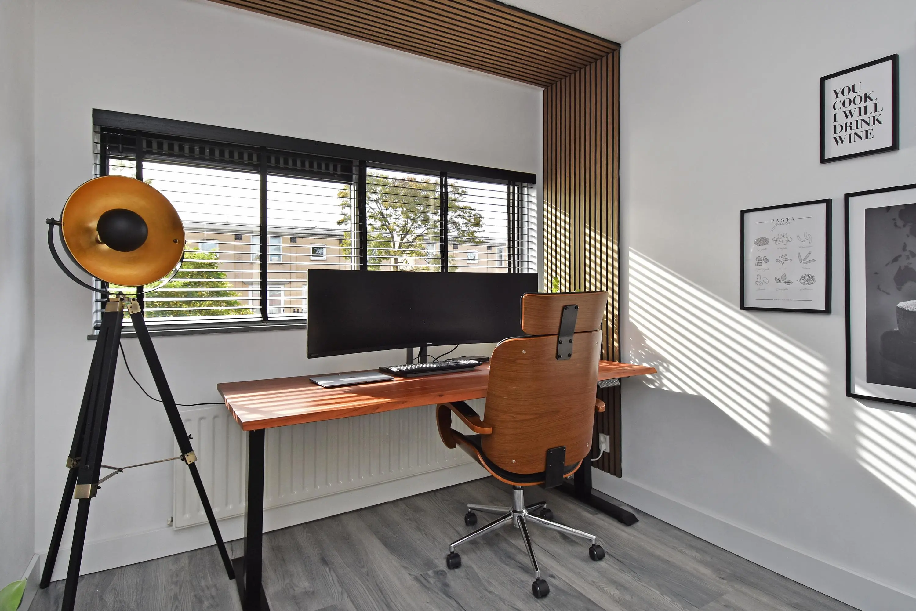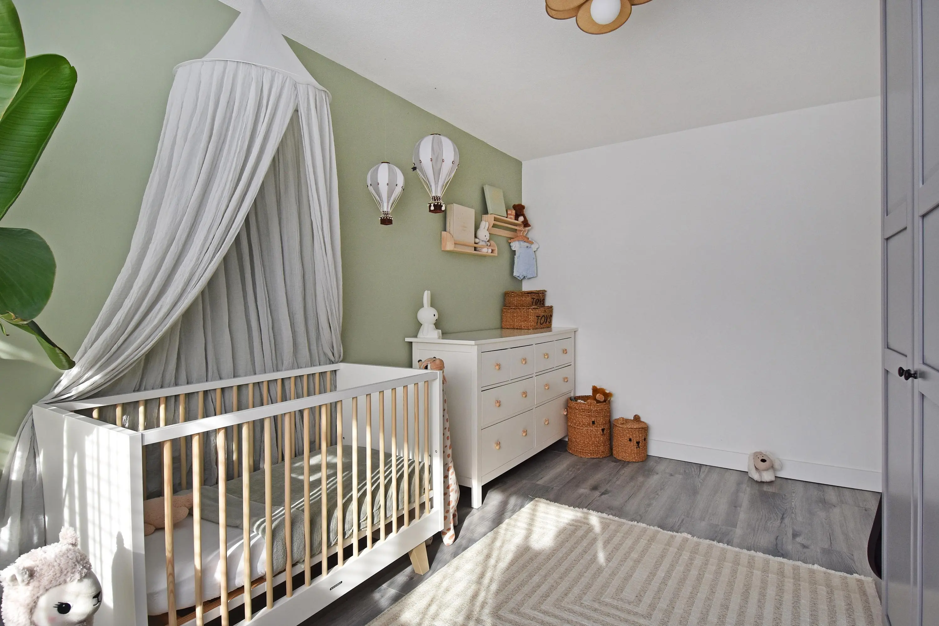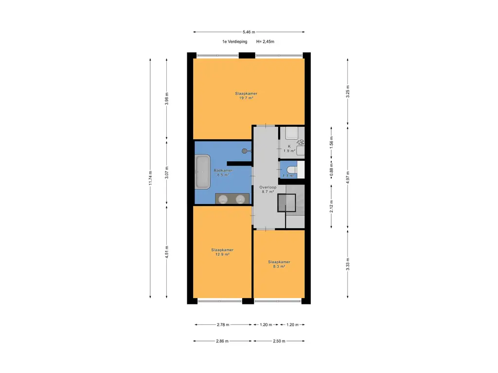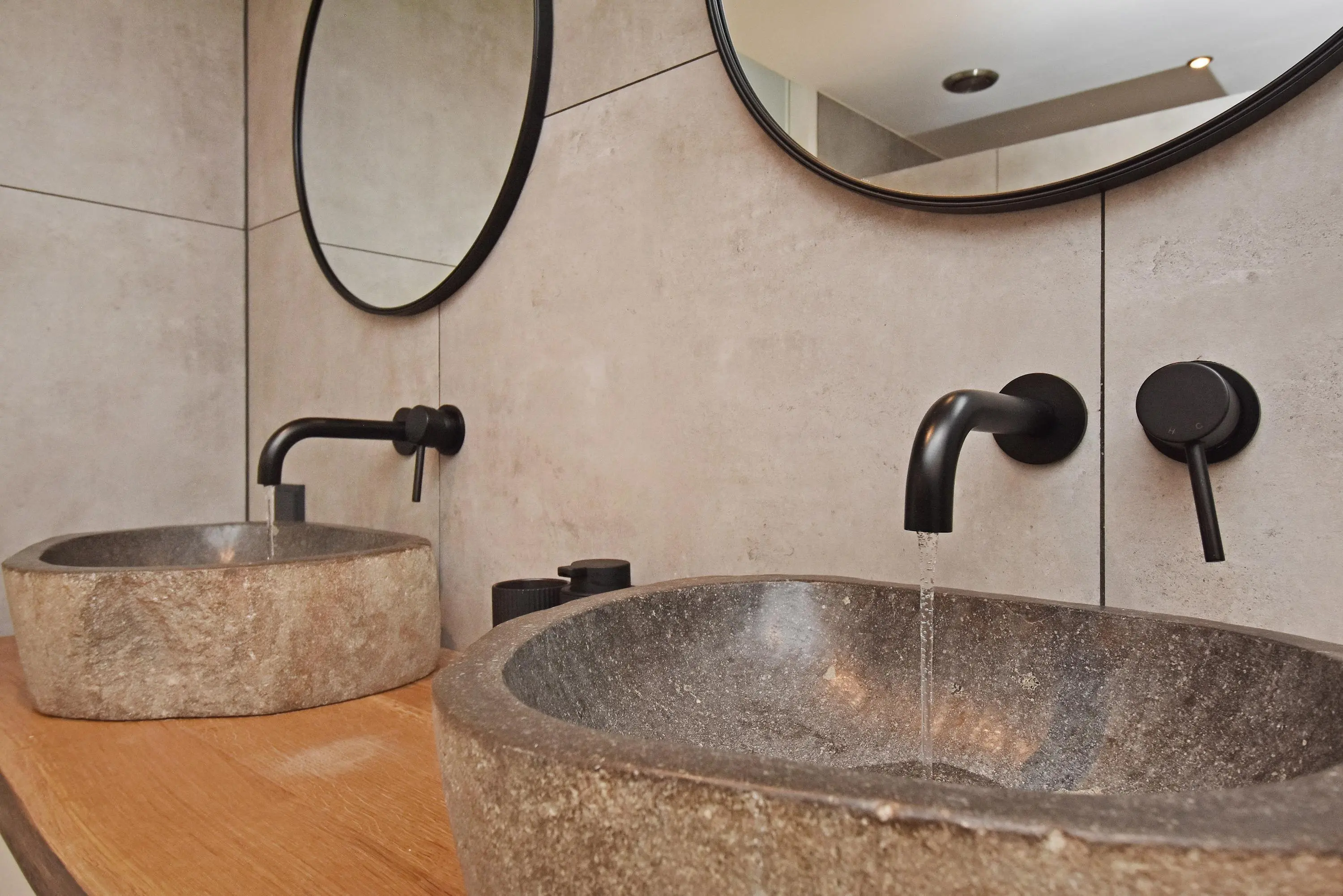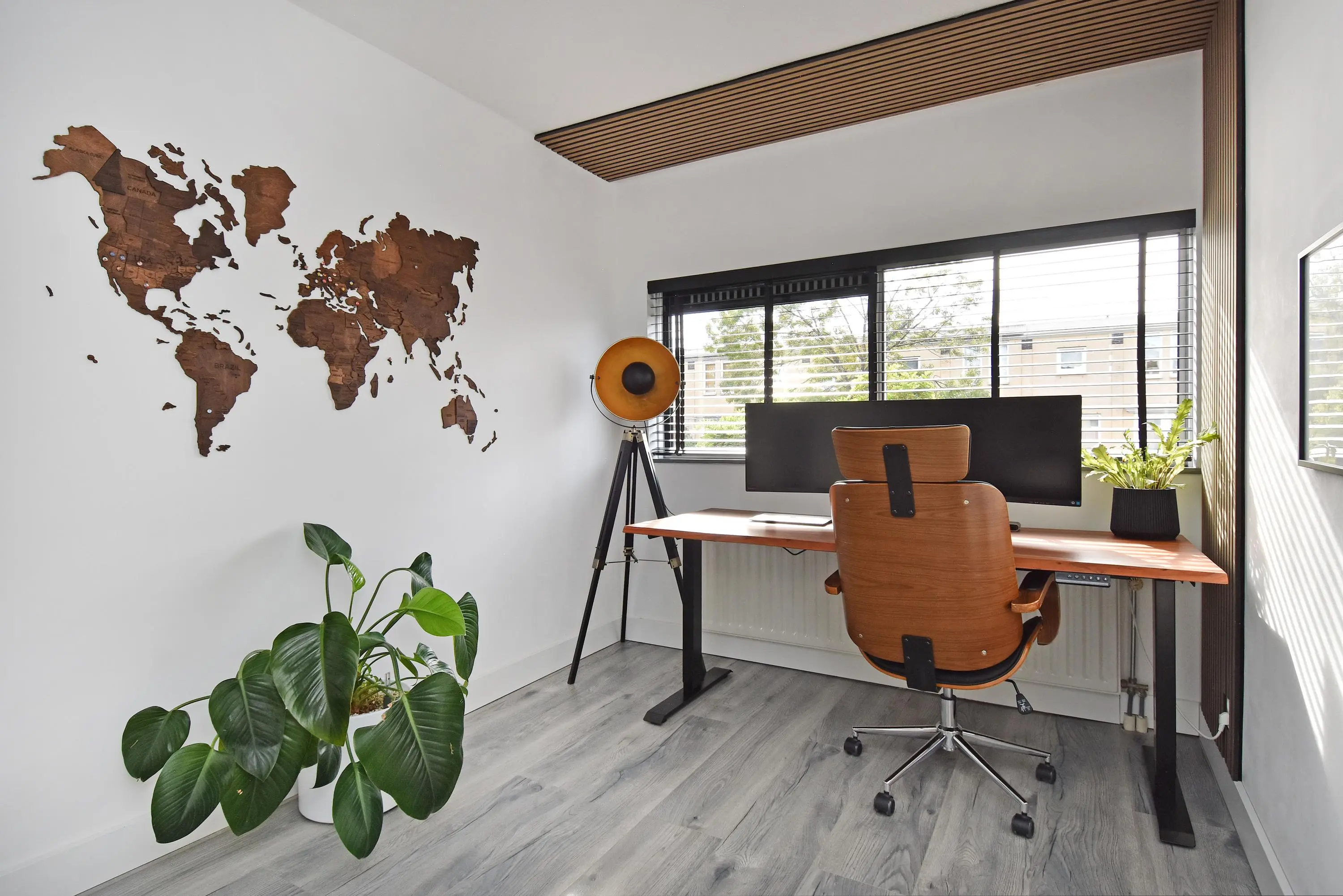 Een verdieping hoger komt u op de lichte overloop met daklicht. Hier vindt u een separaat tweede toilet en een praktische bergkast met de omvormer van de zonnepanelen, de aansluiting voor de wasmachine en de cv-ketel (Remeha Avanta, 2013). Aan de voorzijde liggen twee goed bemeten slaapkamers die uitkijken over de straat, terwijl in het midden de luxe badkamer is gesitueerd met ligbad, royale inloopdouche en een breed dubbel wastafelmeubel. De achterzijde van de woning wordt volledig ingenomen door de master bedroom, een bijzonder ruime kamer met airconditioning en uitzicht op het groen.