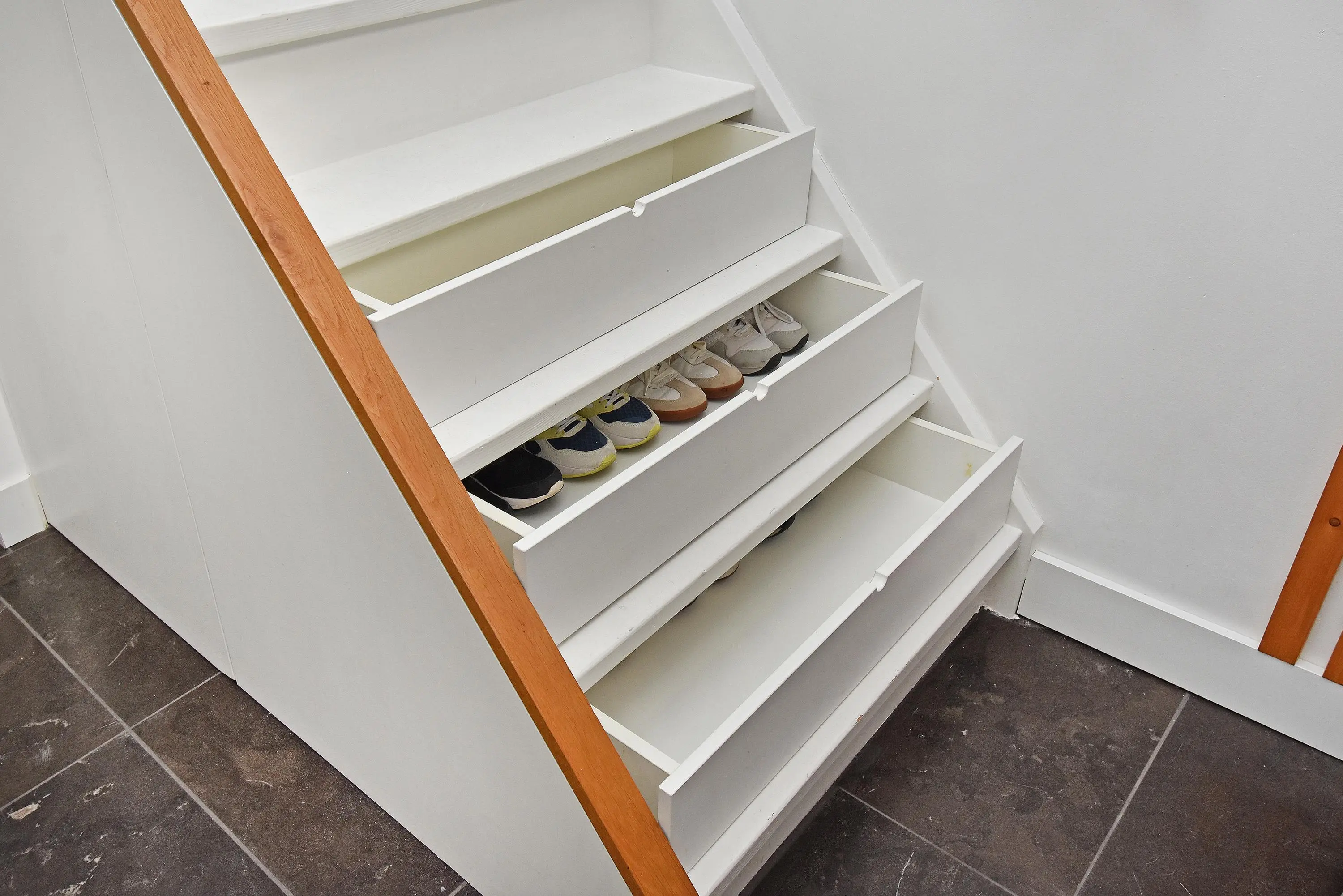 • Garage bereikbaar via buiten én vanuit de woning door de trap naar de keuken omhoog te tillen