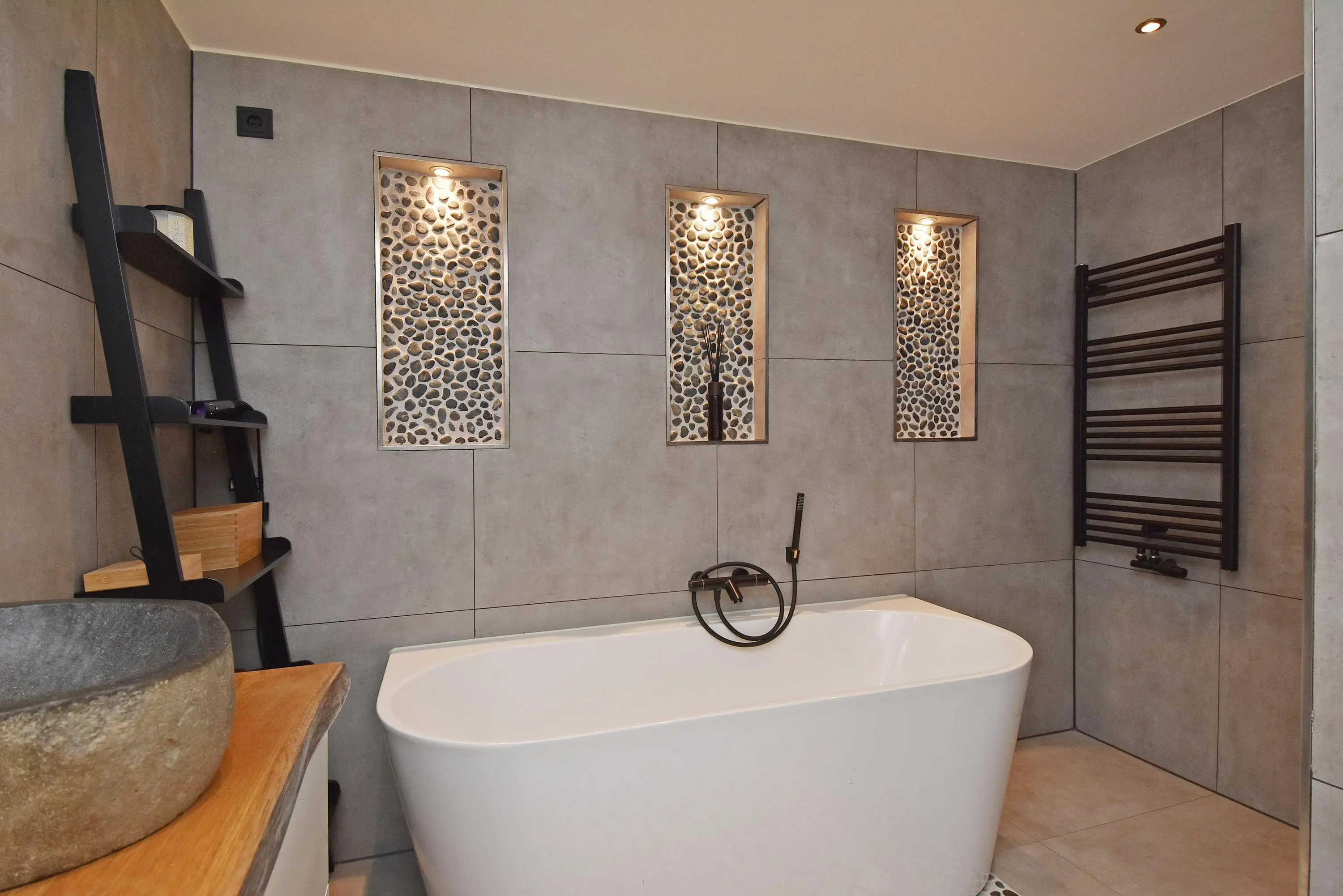 • Energy label B (2017), later upgraded with 12 solar panels and underfloor heating on the ground floor