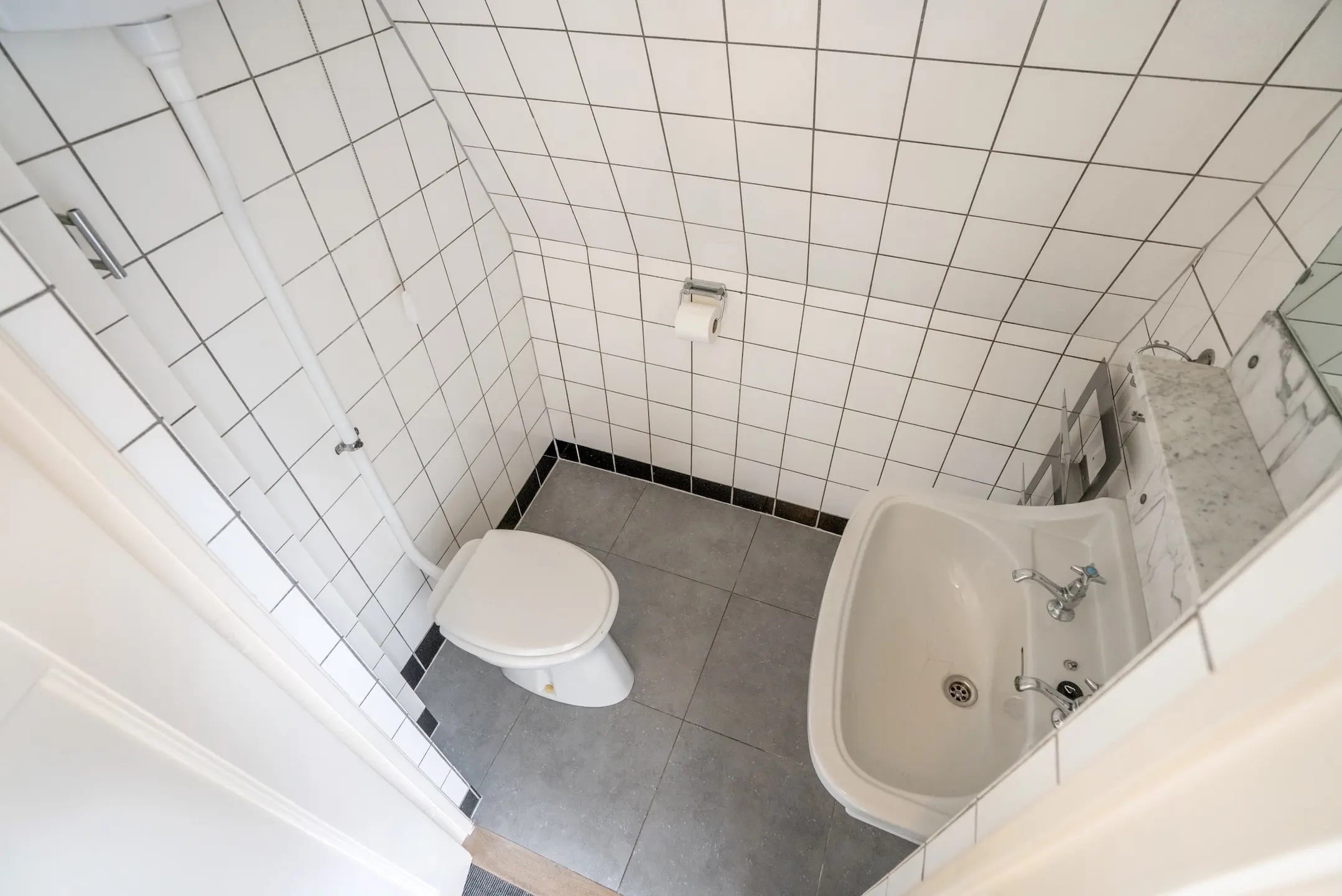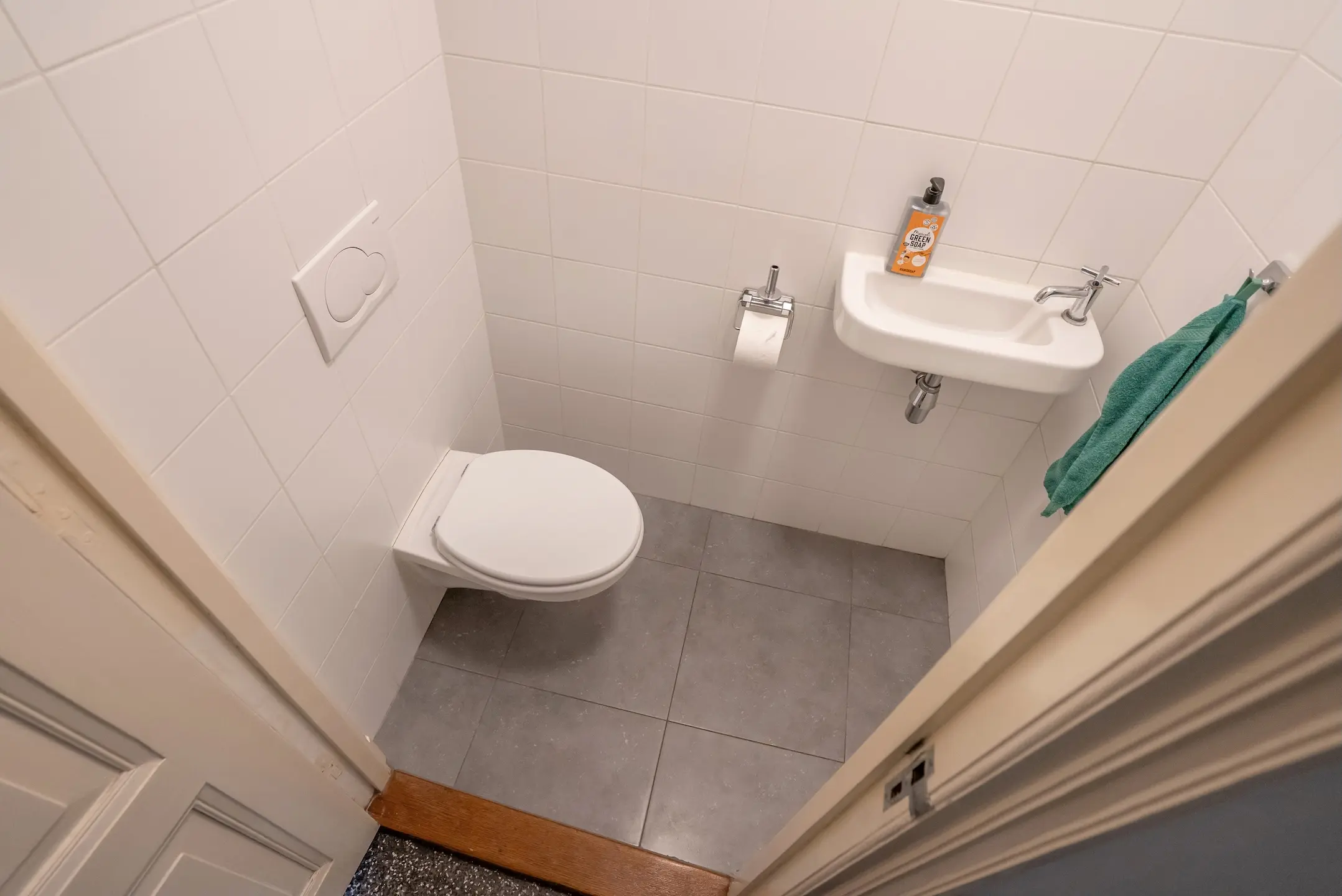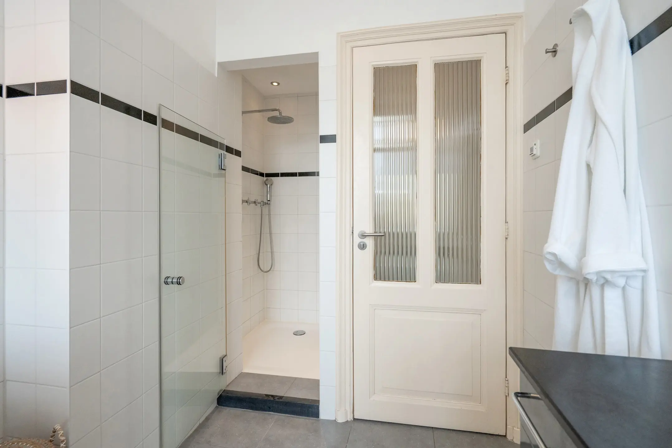 Second floor: Landing with a large skylight allowing plenty of natural light to enter the staircase area, cozy bedroom at the front with a view of the street, side room, large rear bedroom with double doors opening onto a full-width balcony. Second bathroom with a shower, washbasin, space for a washing machine and dryer, and a door leading to the balcony. Separate third toilet. A separate storage room with space for the central heating system (Nefit HR 107, CW 6), electric boiler, and the inverter for the solar panels.