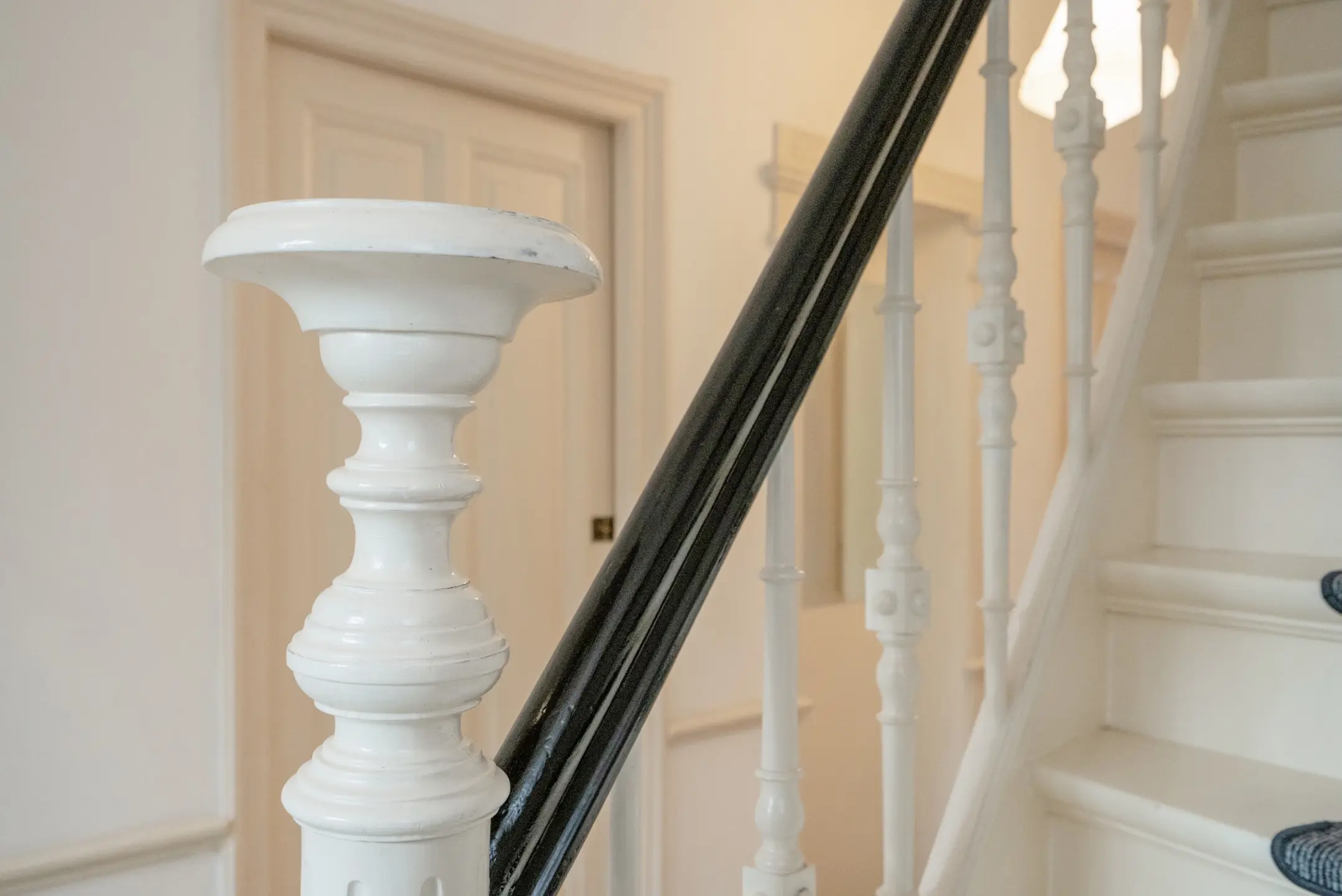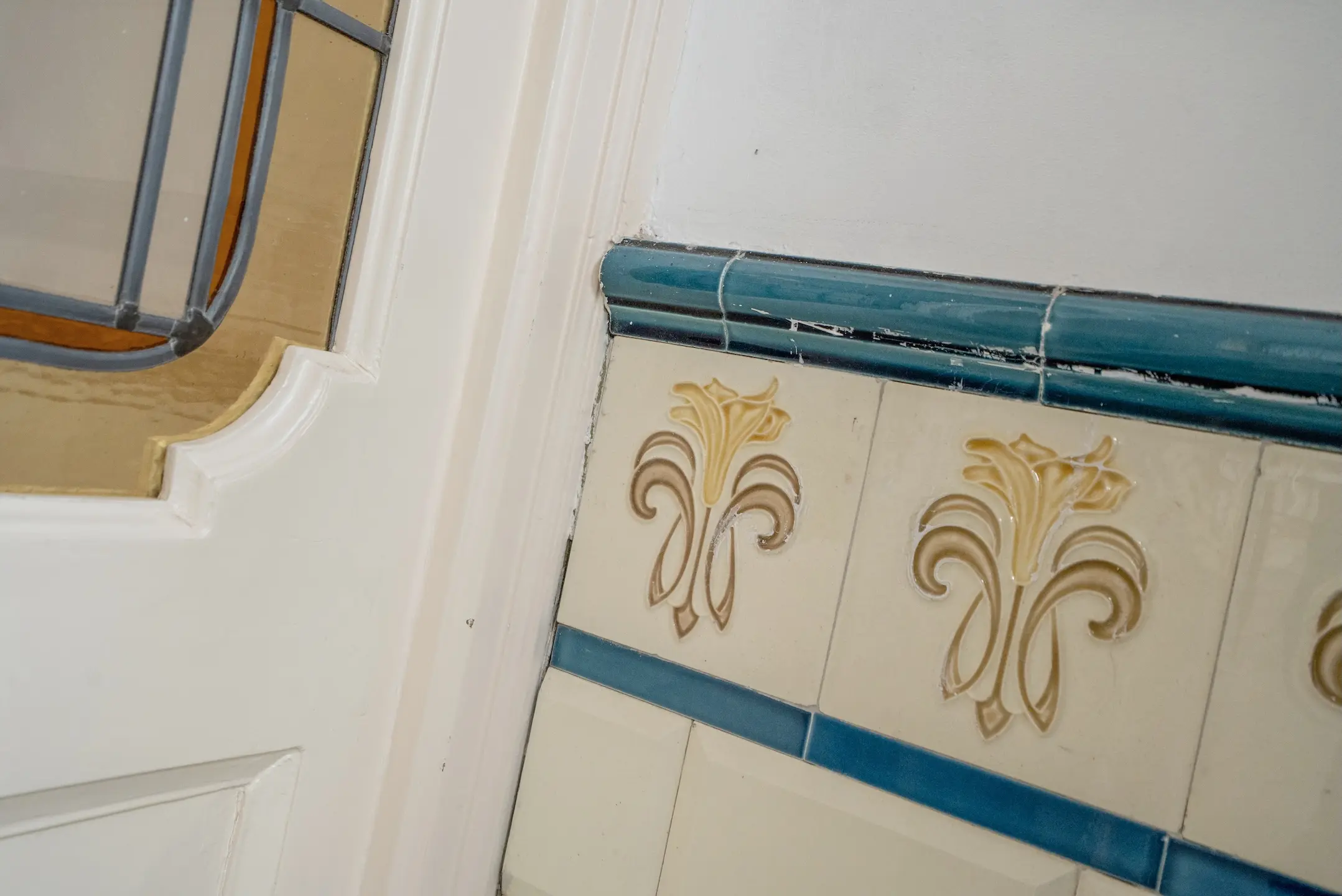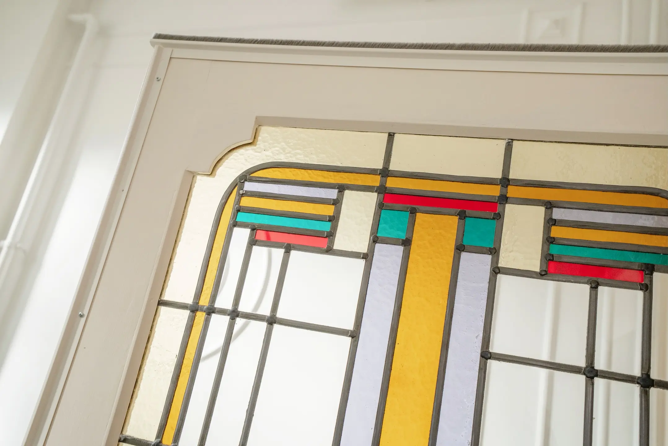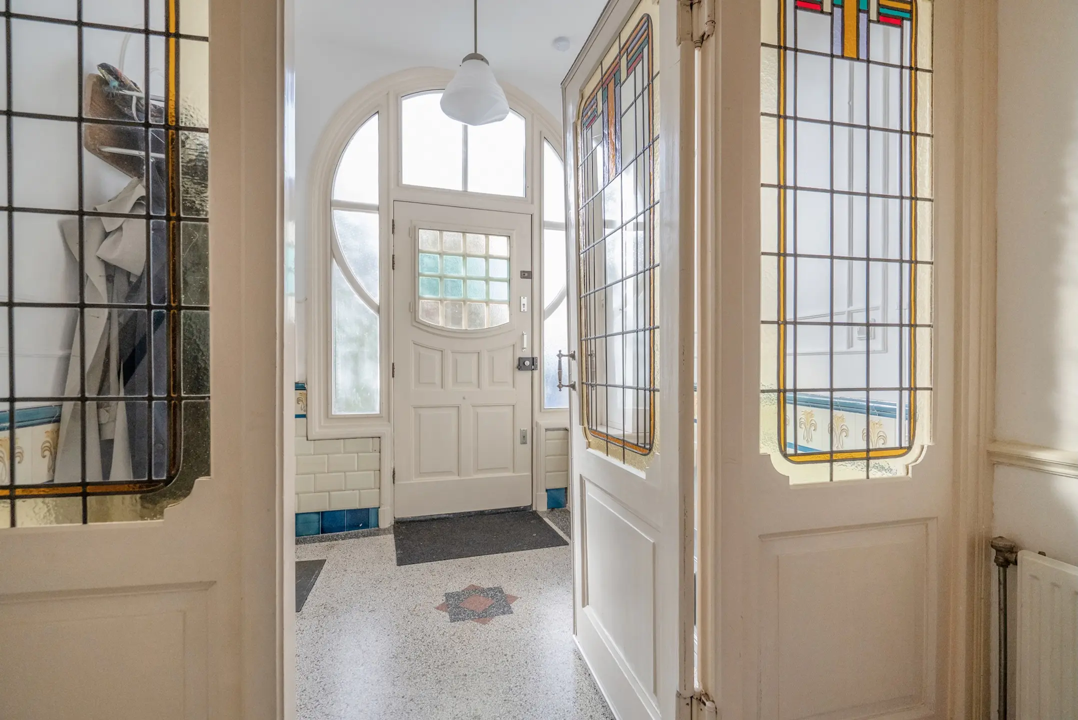 - veel authentieke details behouden zoals de paneeldeuren, glas-in-lood ramen, schouwen, plafonds met sierlijsten enz.;