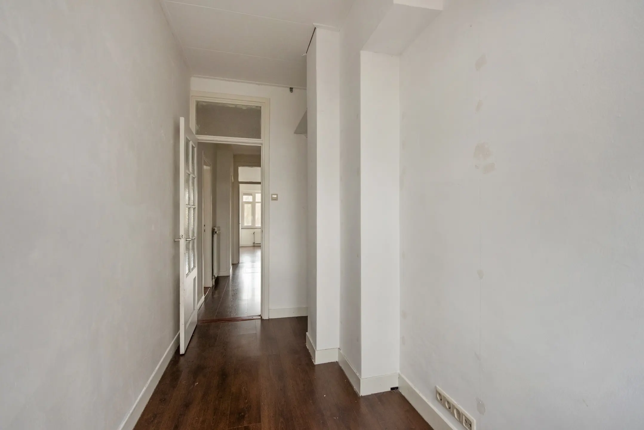 Bij binnenkomst in het appartement betreedt u de U-vormige hal, die toegang biedt tot alle vertrekken. De hal is voorzien van een meterkast en een handige inbouwkast voor extra opbergruimte.