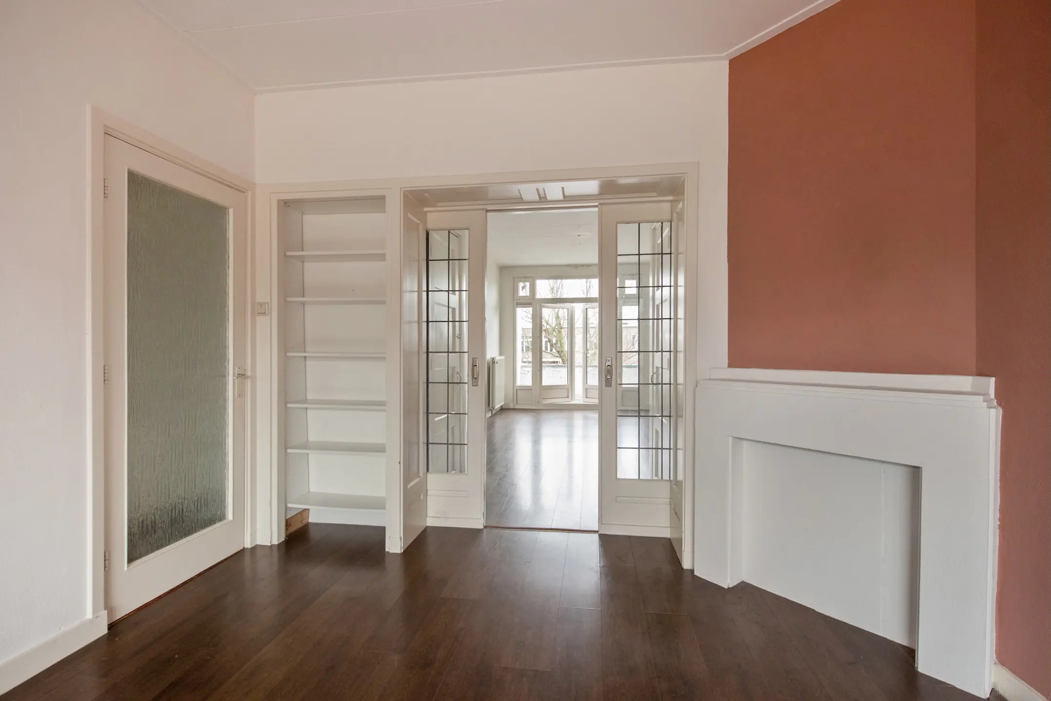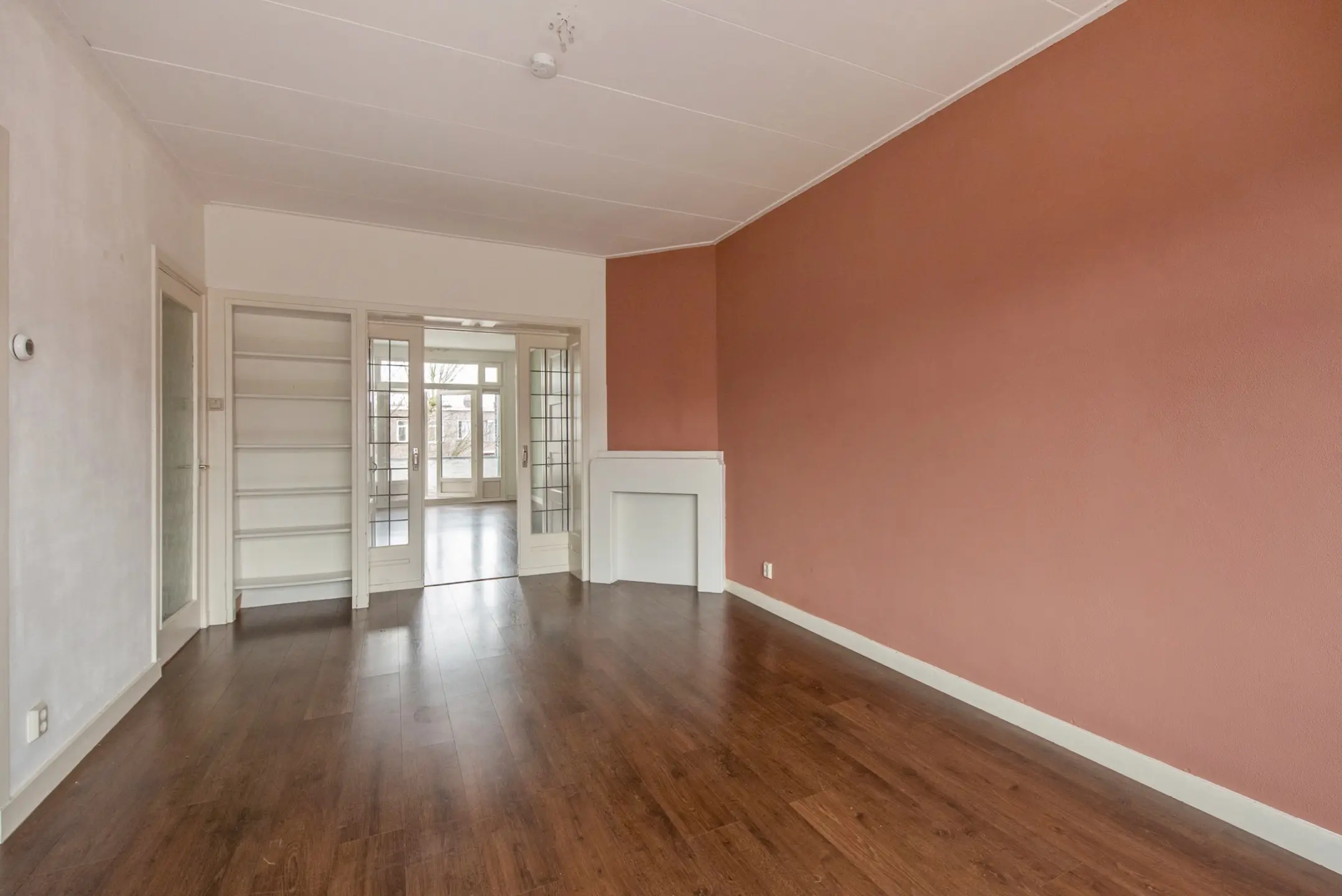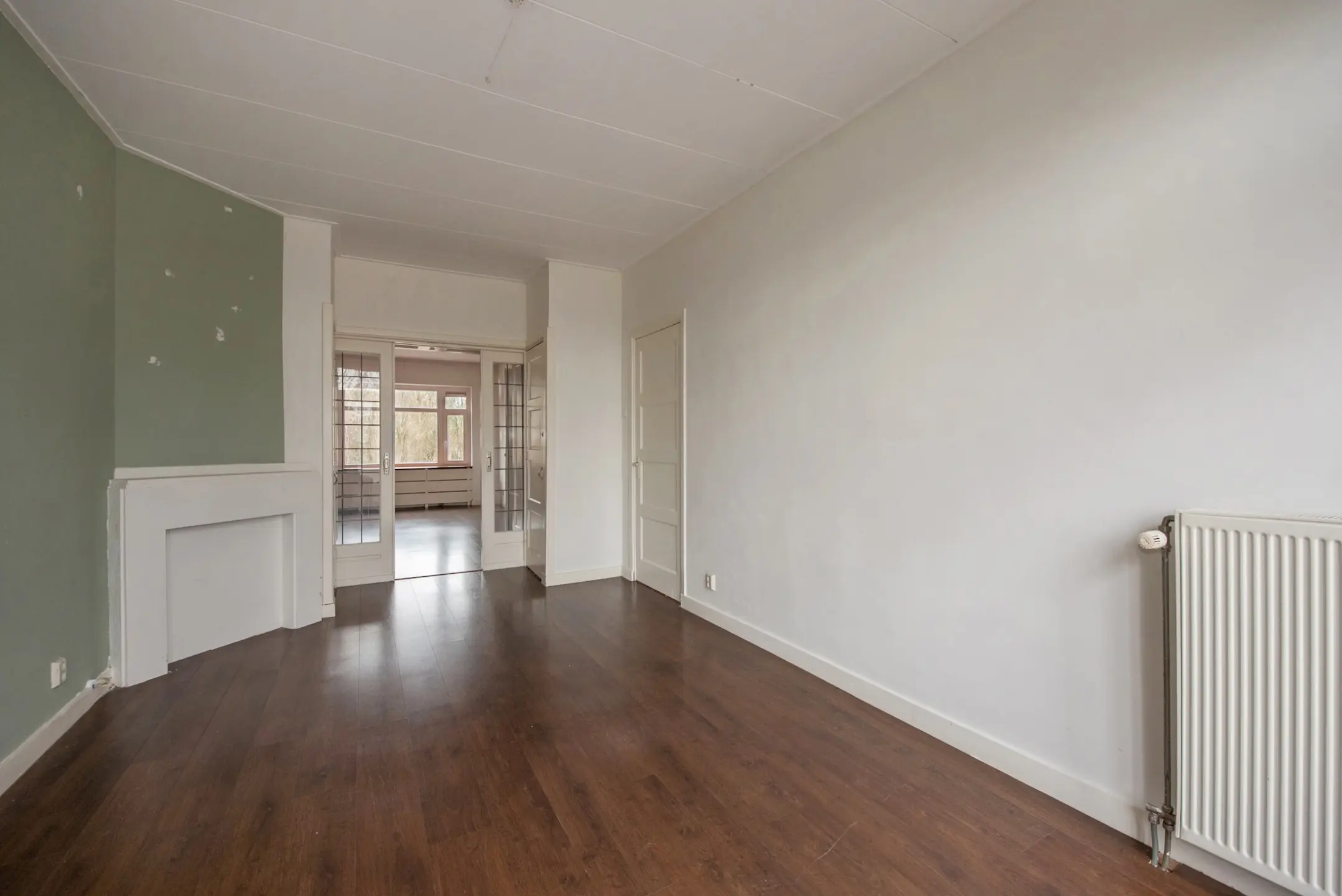 Ruime doorzon woonkamer met schuifseparatie en opbergruimte;