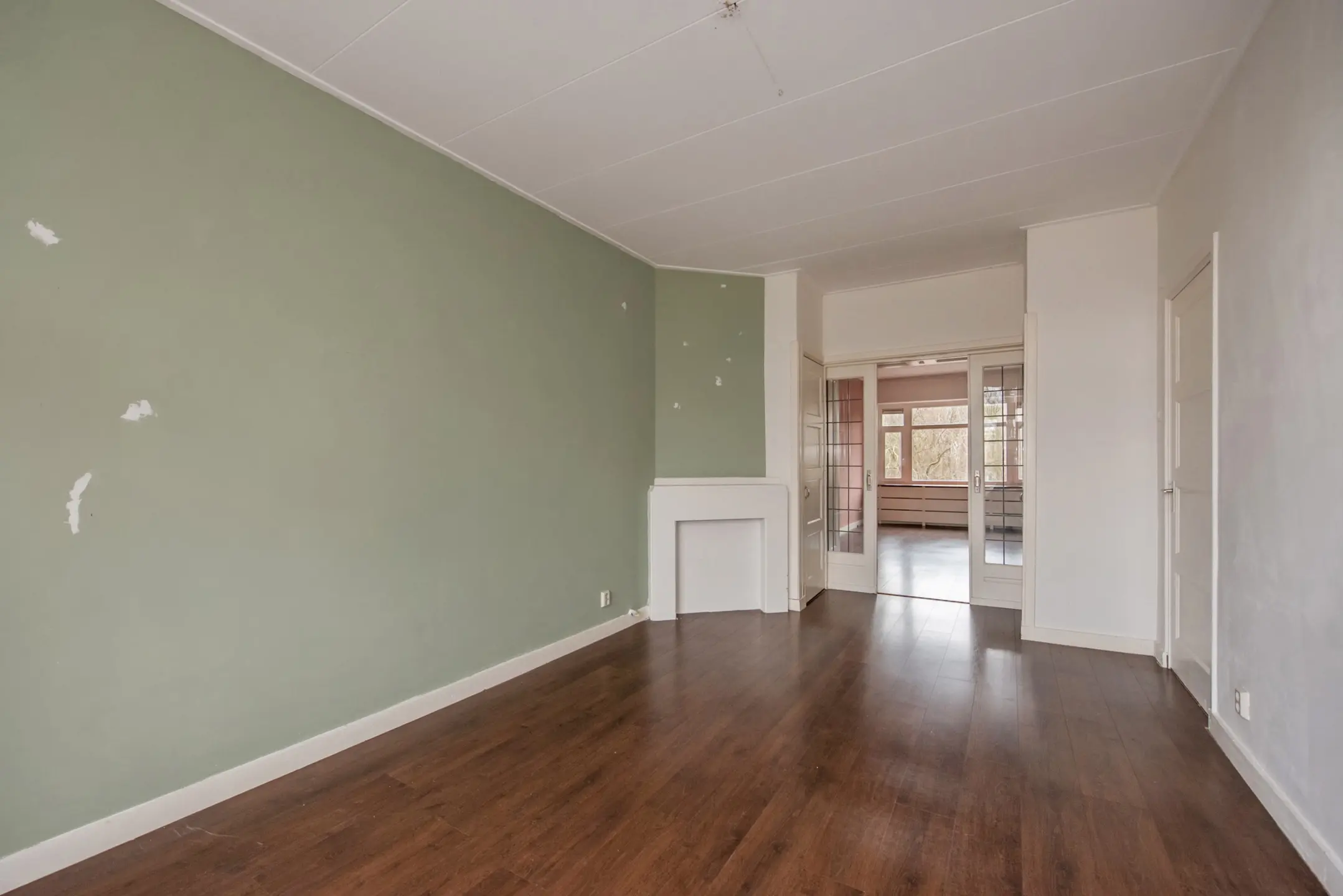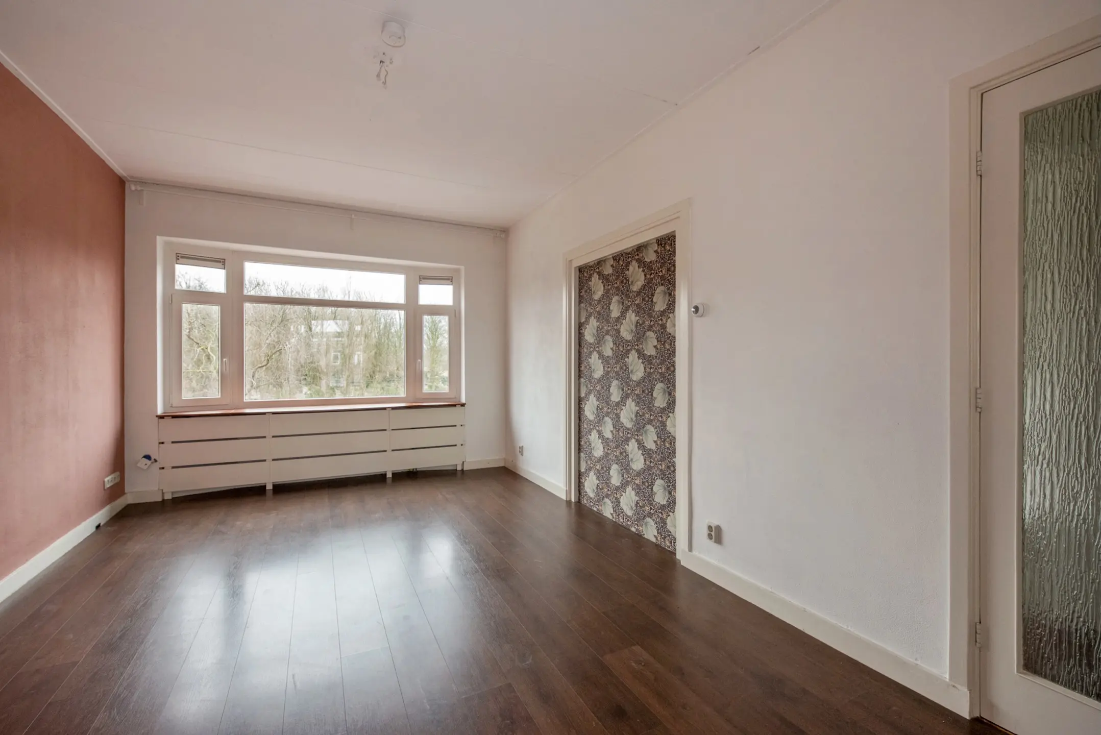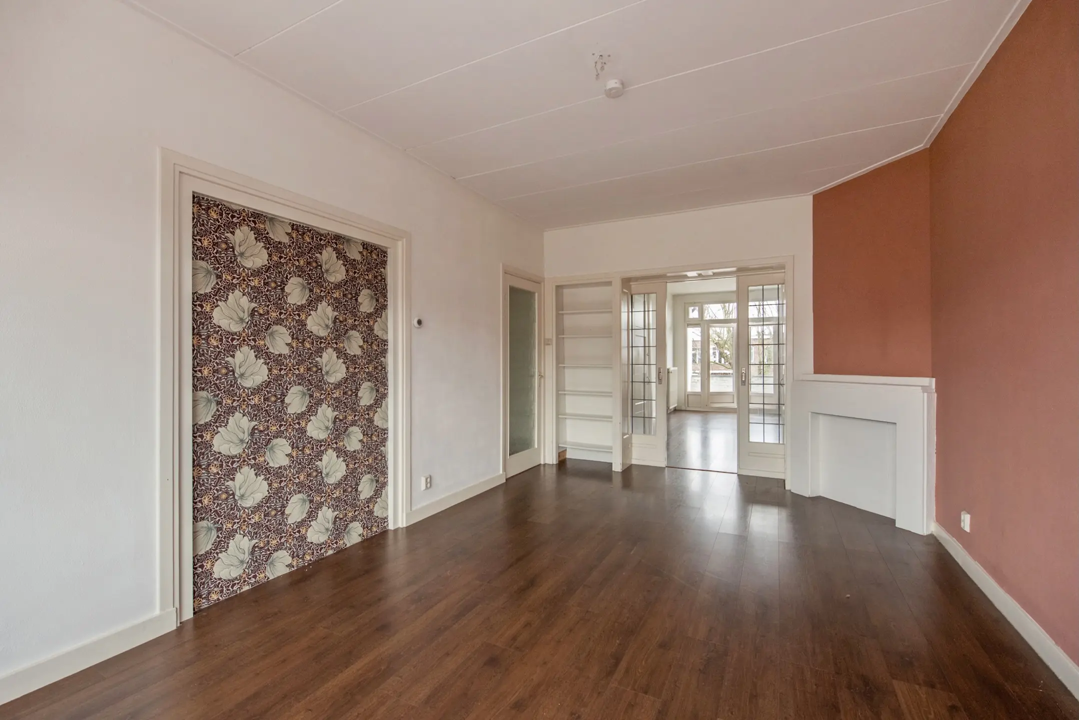 Ruime doorzon woonkamer met schuifseparatie en opbergruimte;