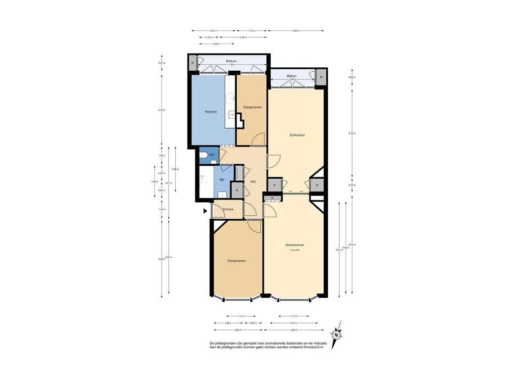 Bovenstaande informatie is door ons met de hoogst nodige zorgvuldigheid samengesteld. Door ons wordt echter geen enkele aansprakelijkheid aanvaard voor enige onvolledigheid, onjuistheid of anderszins, dan wel de gevolgen daarvan. Alle opgegeven maten en oppervlakten zijn indicatief. De woning is gemeten met gebruikmaking van de Meetinstructie, die is gebaseerd op de normen zoals vastgelegd in NEN 2580. De Meetinstructie is bedoeld om een meer eenduidige manier van meten toe te passen voor het geven van een indicatie van gebruiksoppervlakte. De Meetinstructie sluit verschillen in meetuitkomsten niet volledig uit, door bijvoorbeeld interpretatieverschillen, afrondingen of beperkingen bij het uitvoeren van de meting. Hoewel wij de woning zorgvuldig hebben opgemeten, wordt noch door ons kantoor, noch door de verkoper enige aansprakelijkheid aanvaard voor afwijkingen in de opgegeven maten. Koper wordt in de gelegenheid gesteld om de opgegeven maten te (laten) controleren.