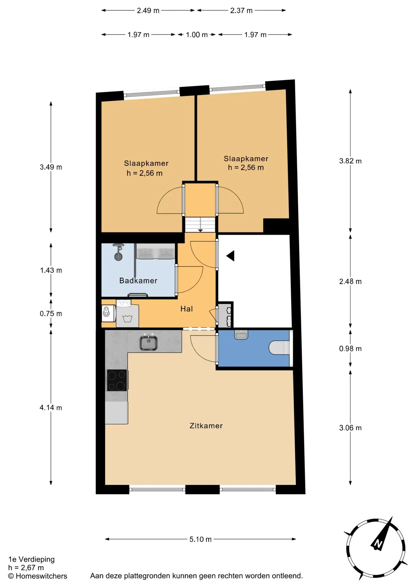 Deze informatie is met de grootst mogelijke zorgvuldigheid samengesteld. Desondanks kunnen er geen rechten aan worden ontleend. Alle opgegeven maten en oppervlakten zijn indicatief en gemeten conform de NEN 2580 meetinstructie. Afwijkingen als gevolg van interpretatieverschillen of afrondingen zijn mogelijk. Koper wordt in de gelegenheid gesteld de maten te (laten) controleren.
