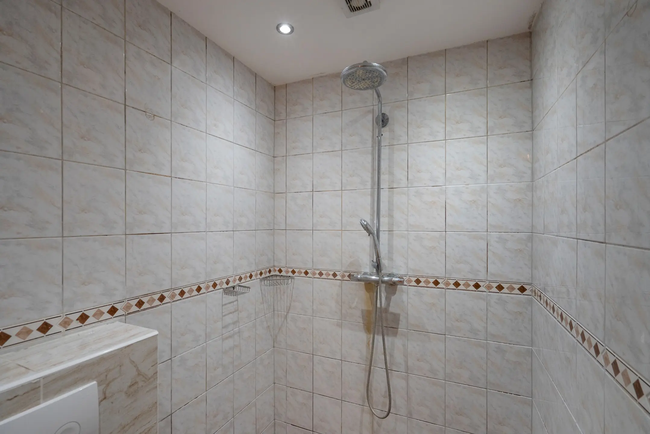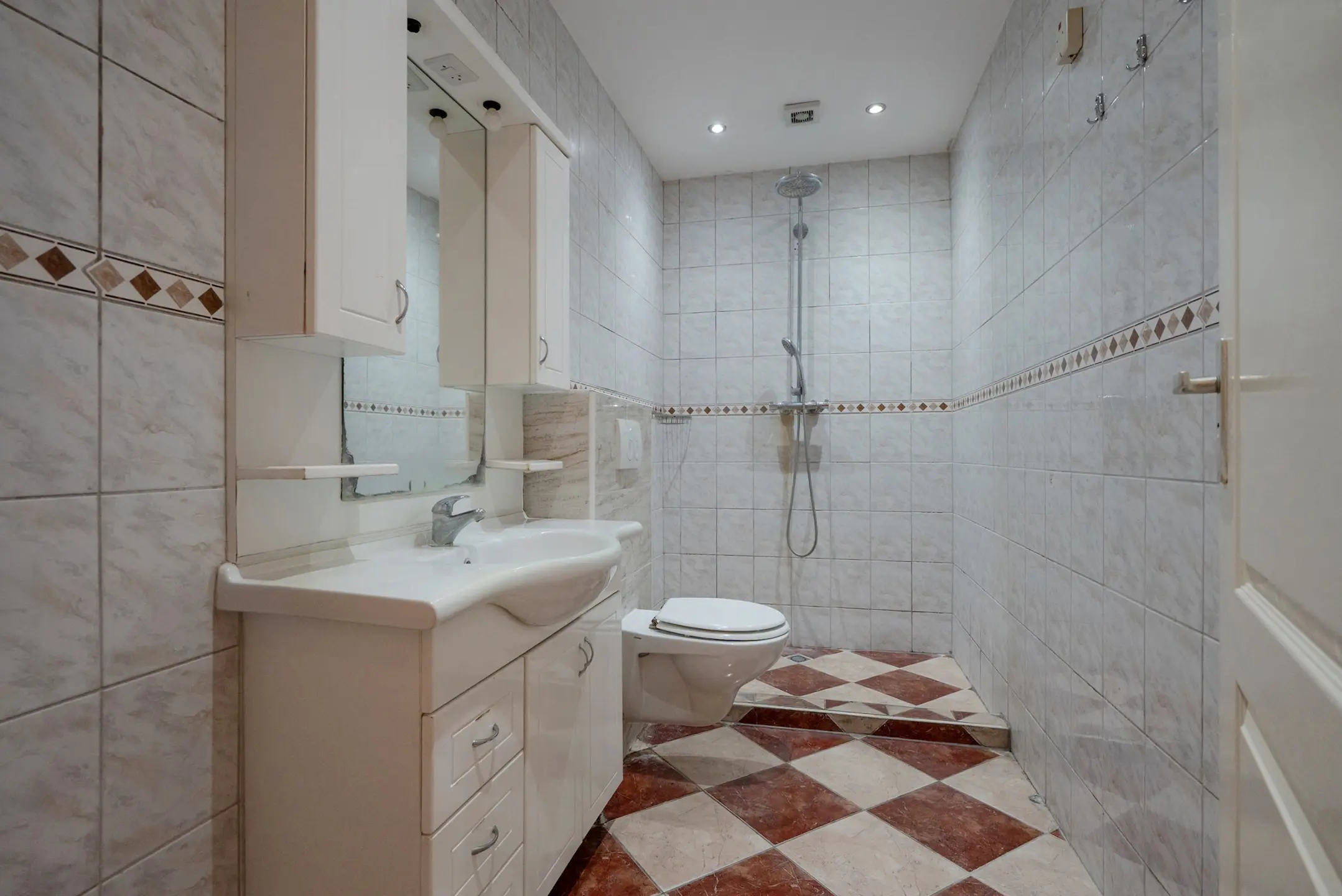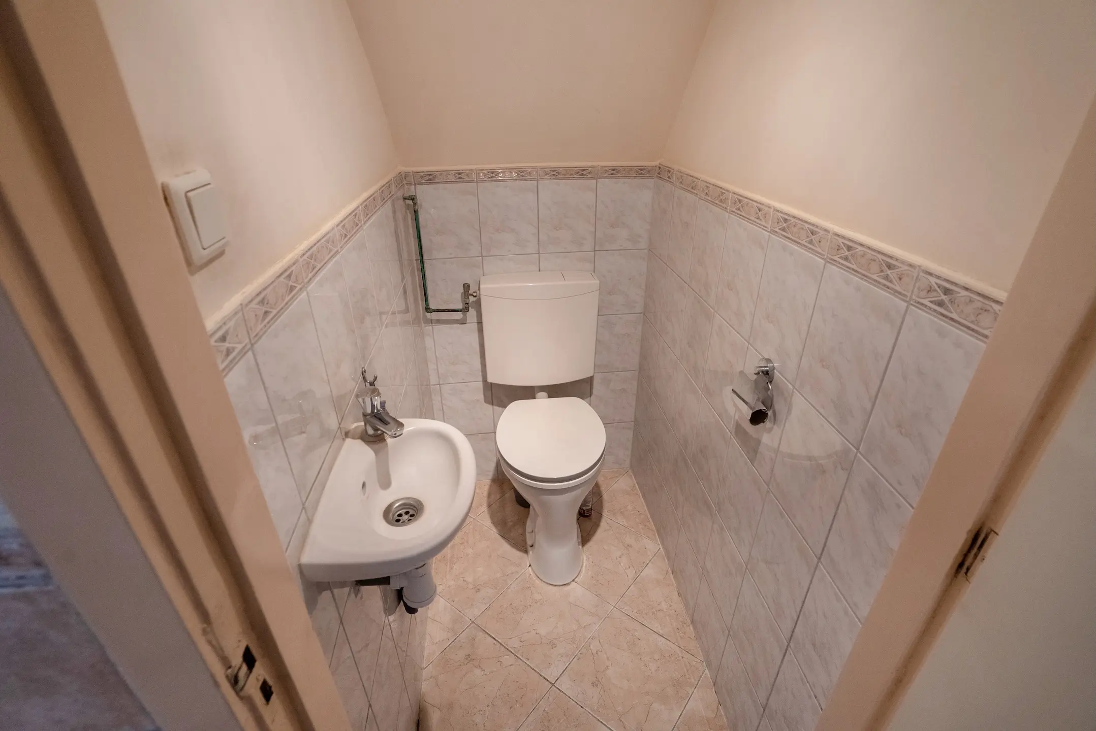 De woning beschikt over drie slaapkamers: twee aan de achterzijde en één aan de voorzijde. De ruime badkamer is geheel betegeld en voorzien van een wastafelmeubel, tweede toilet en douche. Daarnaast is er een separaat toilet met fontein in de hal aanwezig.