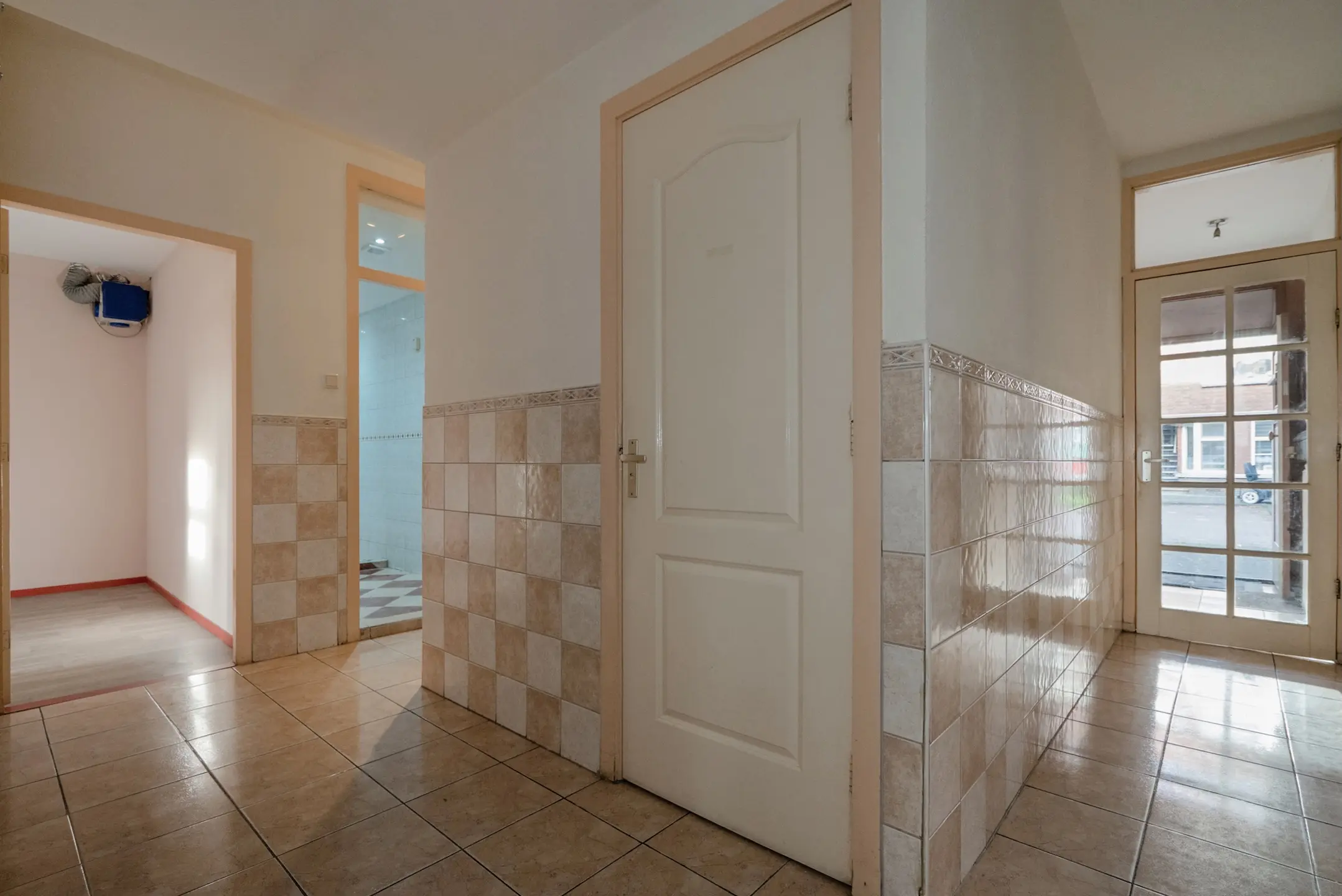 Bij binnenkomst via de entree op straatniveau word je ontvangen in een vestibule en hal die toegang bieden tot de verschillende vertrekken. De lichte woonkamer staat in open verbinding met de achterslaapkamer en beschikt over openslaande deuren naar de achtertuin – perfect om binnen en buiten met elkaar te verbinden.