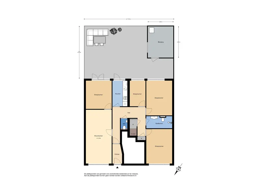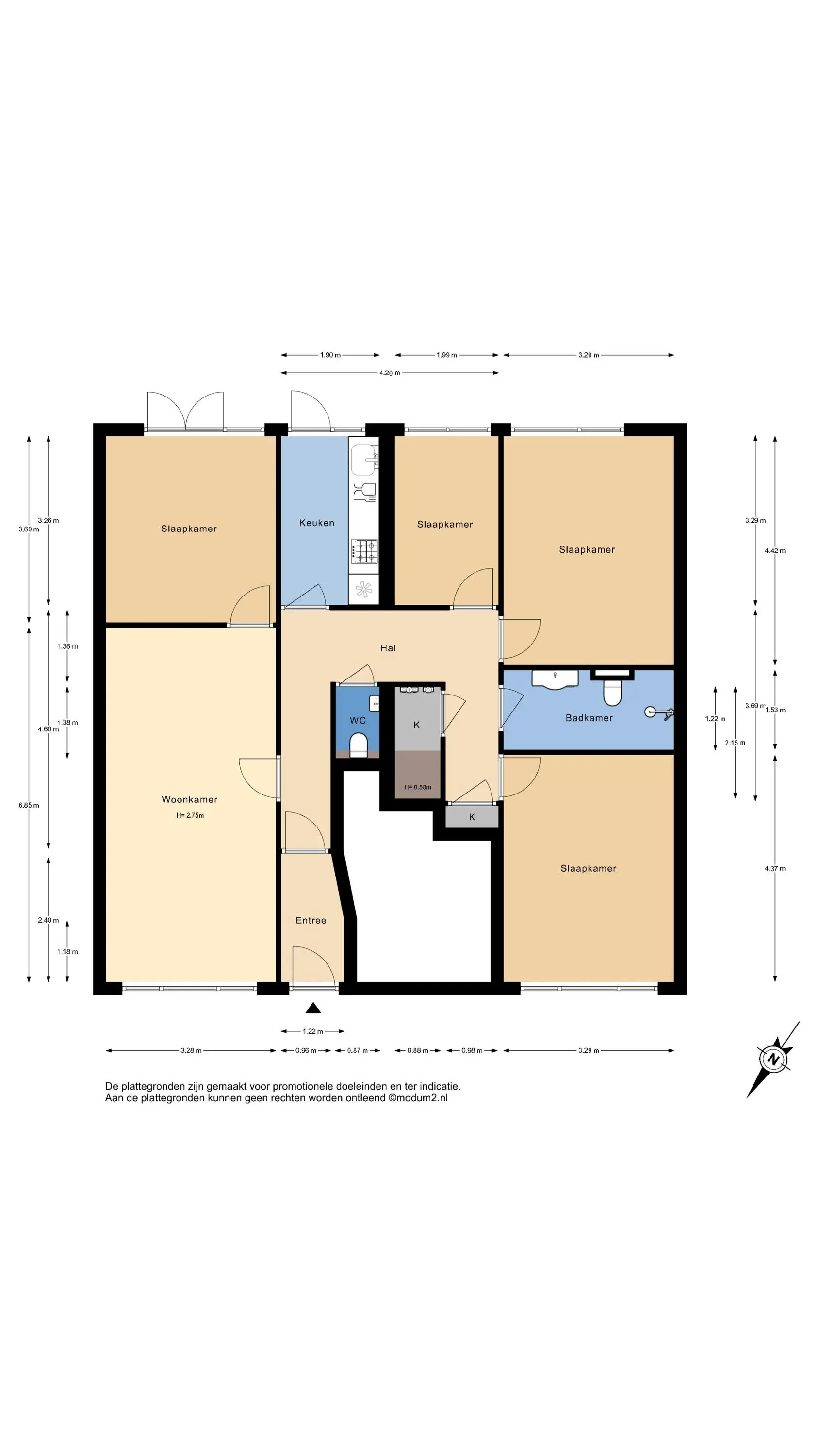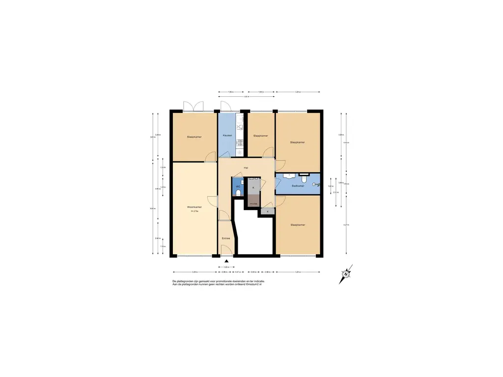"Bovenstaande informatie is door ons met de hoogstnodige zorgvuldigheid samengesteld. Door ons wordt echter geen enkele aansprakelijkheid aanvaard voor enige onvolledigheid, onjuistheid of anderszins, dan wel de gevolgen daarvan. Alle opgegeven maten en oppervlakten zijn indicatief. De woning is gemeten met gebruikmaking van de Meetinstructie, die is gebaseerd op de normen zoals vastgelegd in NEN 2580. De Meetinstructie is bedoeld om een meer eenduidige manier van meten toe te passen voor het geven van een indicatie van gebruiksoppervlakte. De Meetinstructie sluit verschillen in meetuitkomsten niet volledig uit, door bijvoorbeeld interpretatieverschillen, afrondingen of beperkingen bij het uitvoeren van de meting. Hoewel wij de woning zorgvuldig hebben opgemeten, wordt noch door ons kantoor, noch door de verkoper enige aansprakelijkheid aanvaard voor afwijkingen in de opgegeven maten. Koper wordt in de gelegenheid gesteld om de opgegeven maten te (laten) controleren”.
